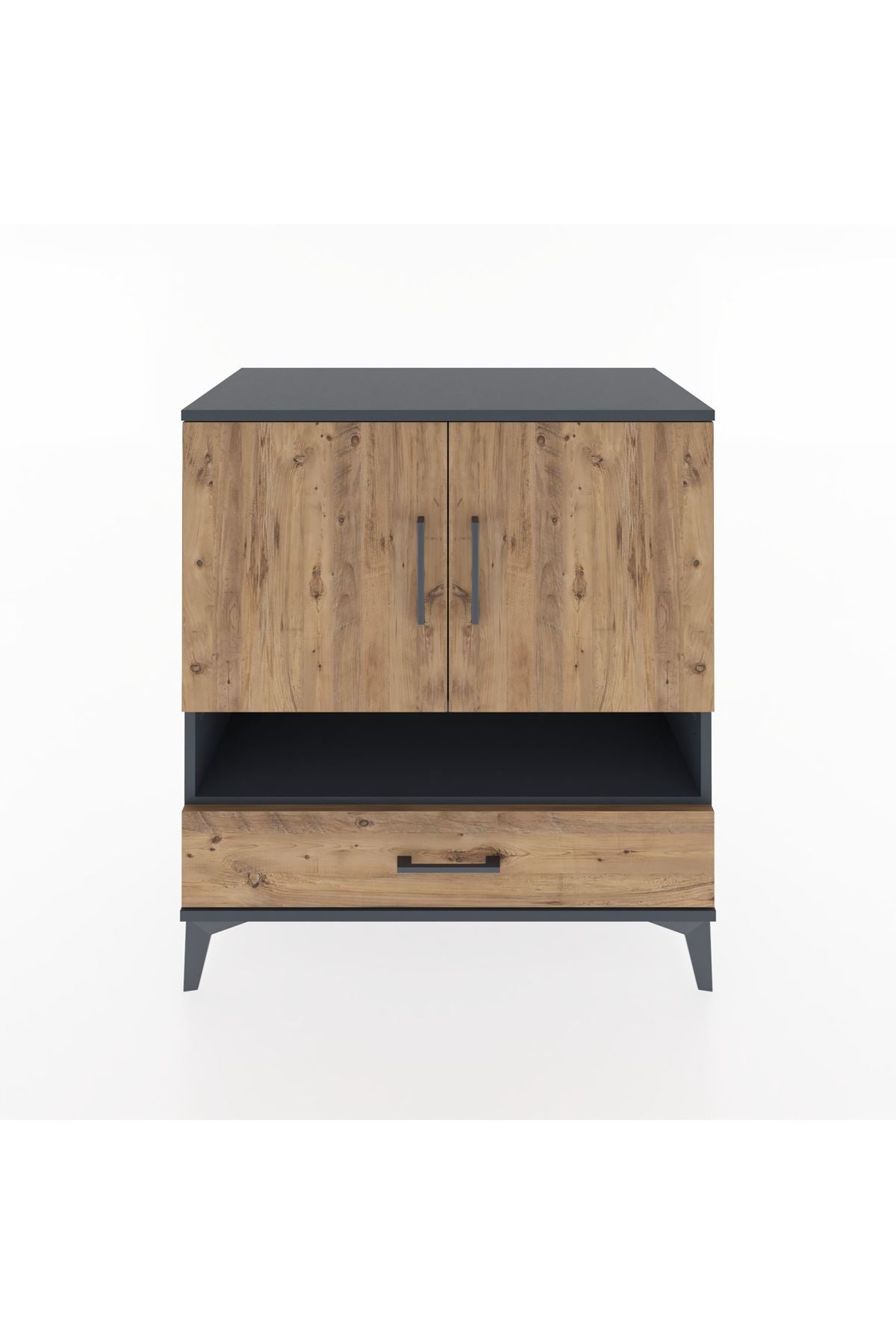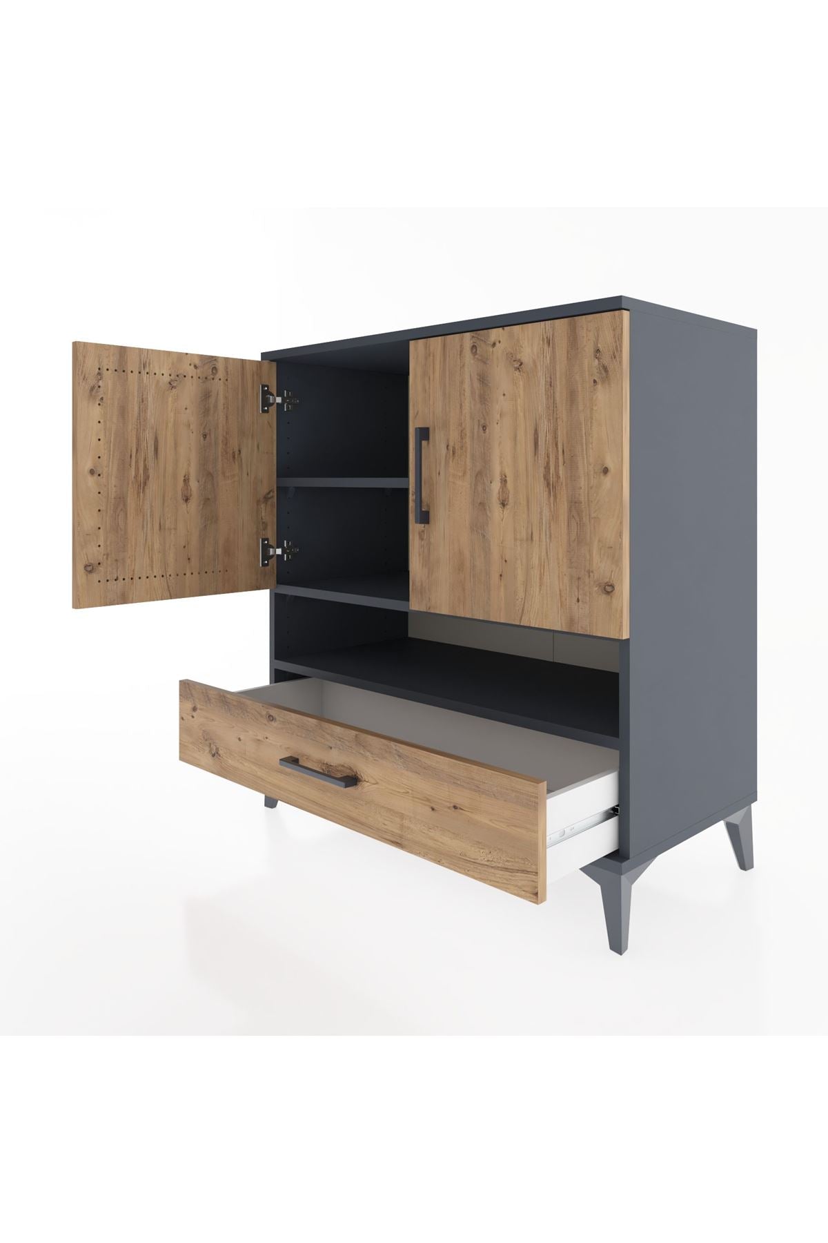 Hyperion Şifonyer 3 Raflı Tek Çekmeceli 2 Kapaklı 88x44x96 Antrasit-Çam