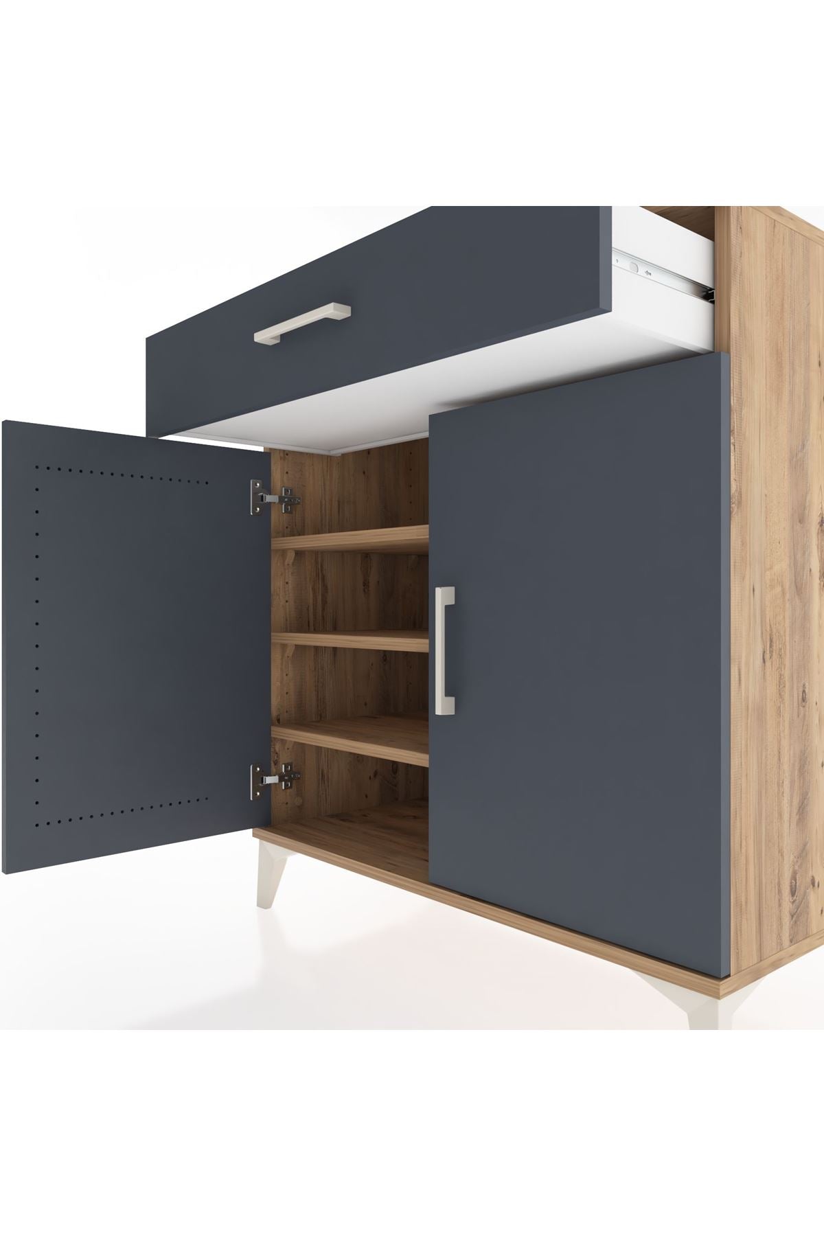 Hyperion Şifonyer 3 Raflı Tek Çekmeceli 2 Kapaklı 88x44x96 Çam-Antrasit