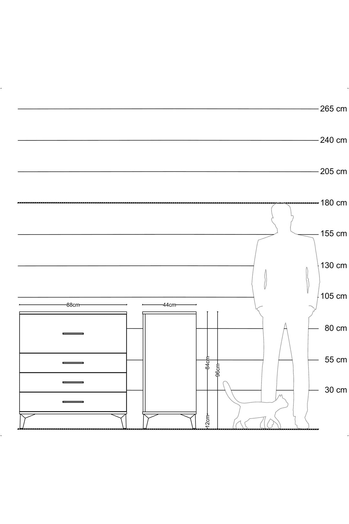 Hyperion Şifonyer 4 Çekmeceli 88x44x96 Çam-Antrasit