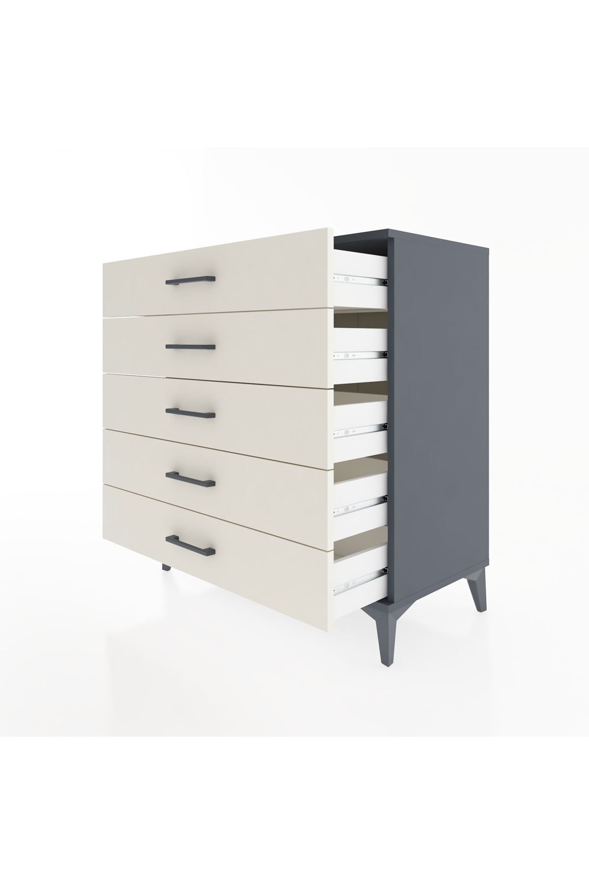 Hyperion Şifonyer 5 Çekmeceli 88x44x96 Antrasit-Aytaşı