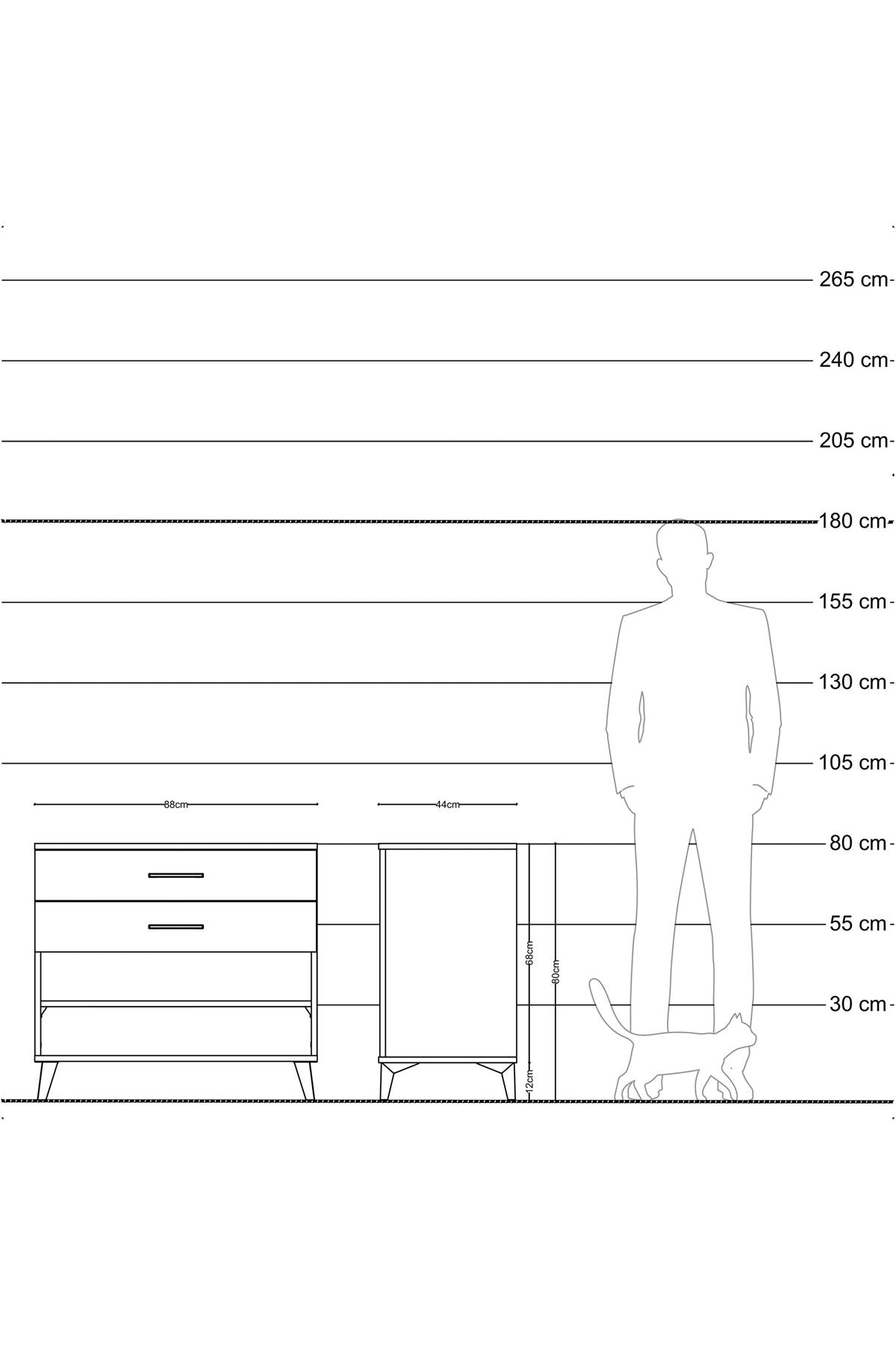 Bu sifonyer, evinizde düzen ve estetik sağlar. Aytaşı ve antrasit kontrastı modern bir dil sunar; üst yüzey geniş kullanım alanı sağlayacak şekilde tasarlanmıştır. Metal ayaklar sağlam ve dayanıklı, metal kulplar uzun ömürlü kullanım sunar. Üründe birinci sınıf suntalam yüzey kaplaması, darbelere ve çizilmelere karşı koruyucu özellik gösterir. Tek raflı düzeni ve iki çekmeceli temel konfigürasyonu sayesinde hem açık hem kapalı depolamayı dengeler.