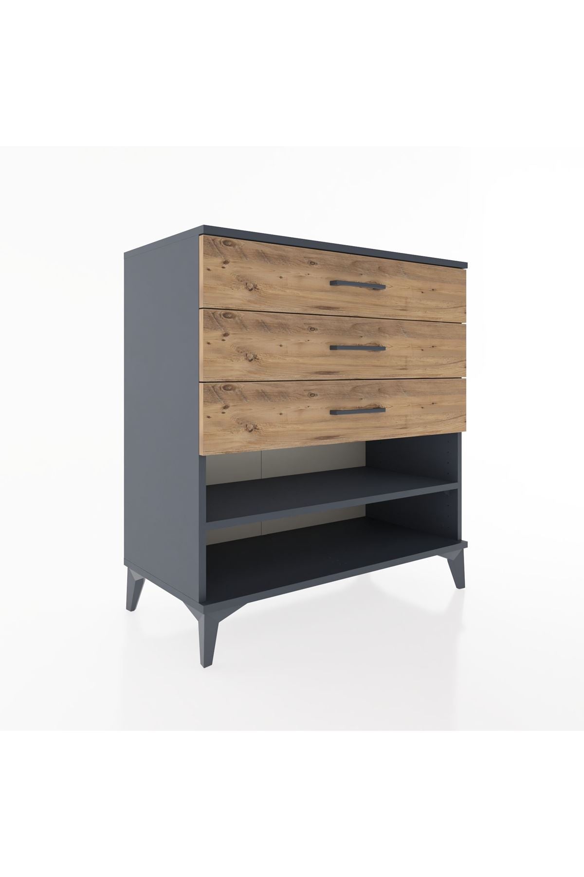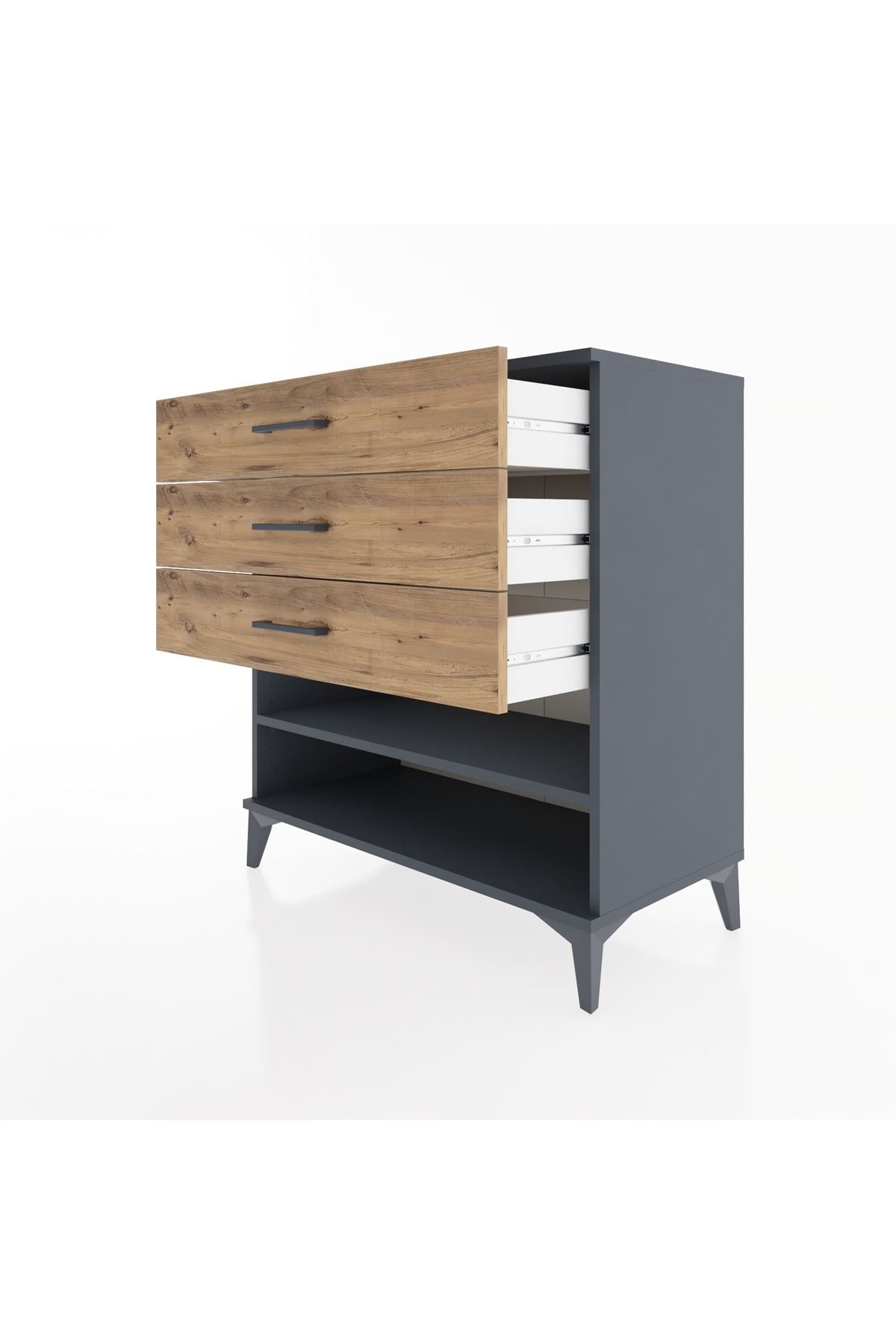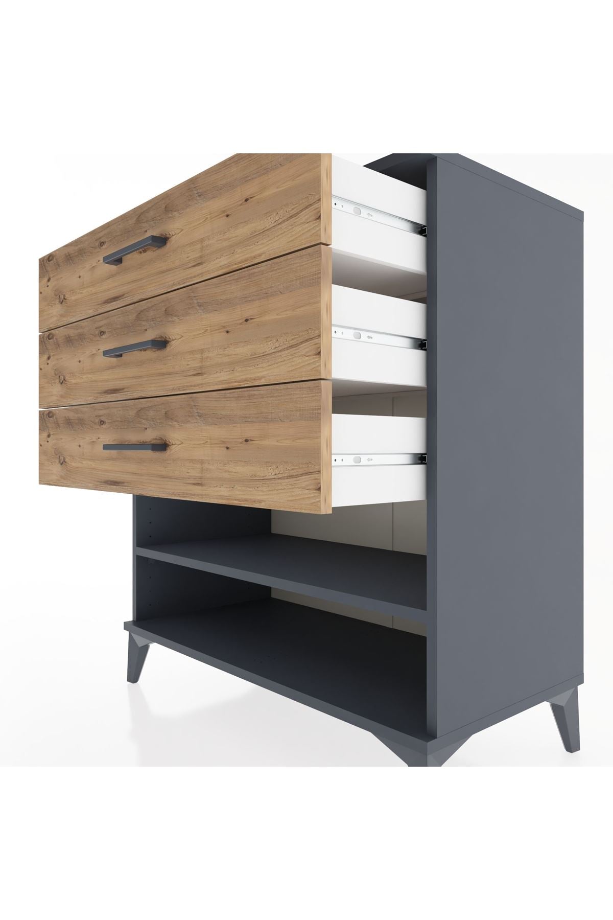 Hyperion Şifonyer Tek Raflı 3 Çekmeceli 88x44x96 Antrasit-Çam