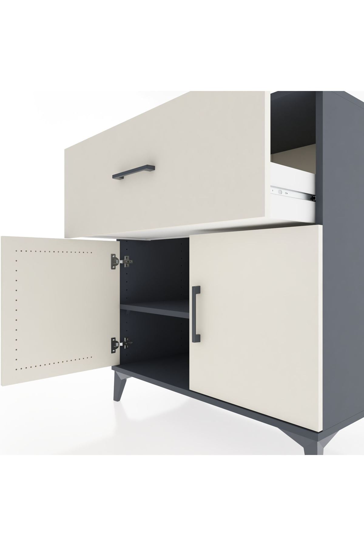 Hyperion Şifonyer Tek Raflı Tek Çekmeceli 2 Kapaklı 88x44x96 Antrasit-Aytaşı