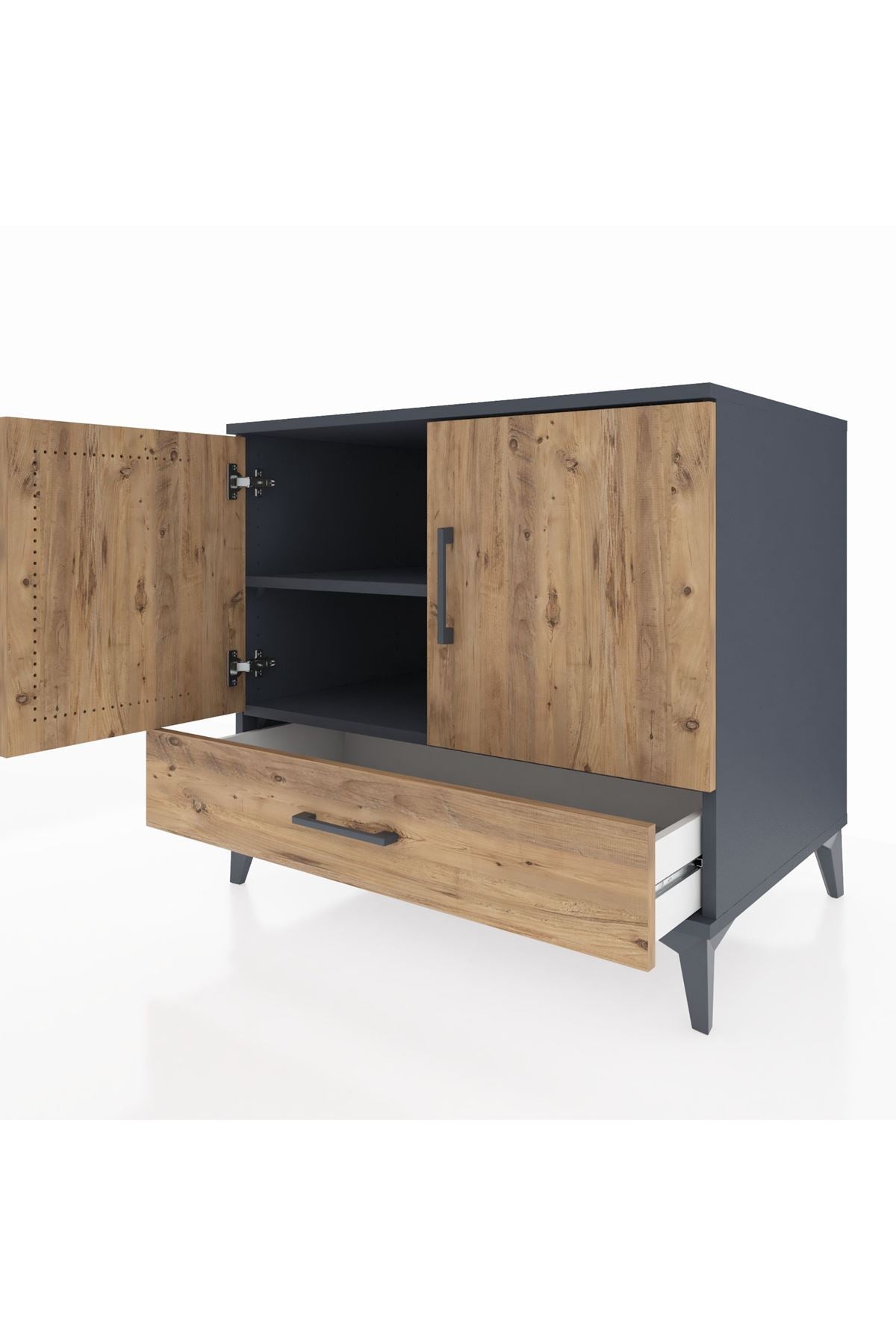 Kronos Şifonyer 2 Raflı Tek Çekmeceli 2 Kapaklı 88x59x80 Antrasit-Çam