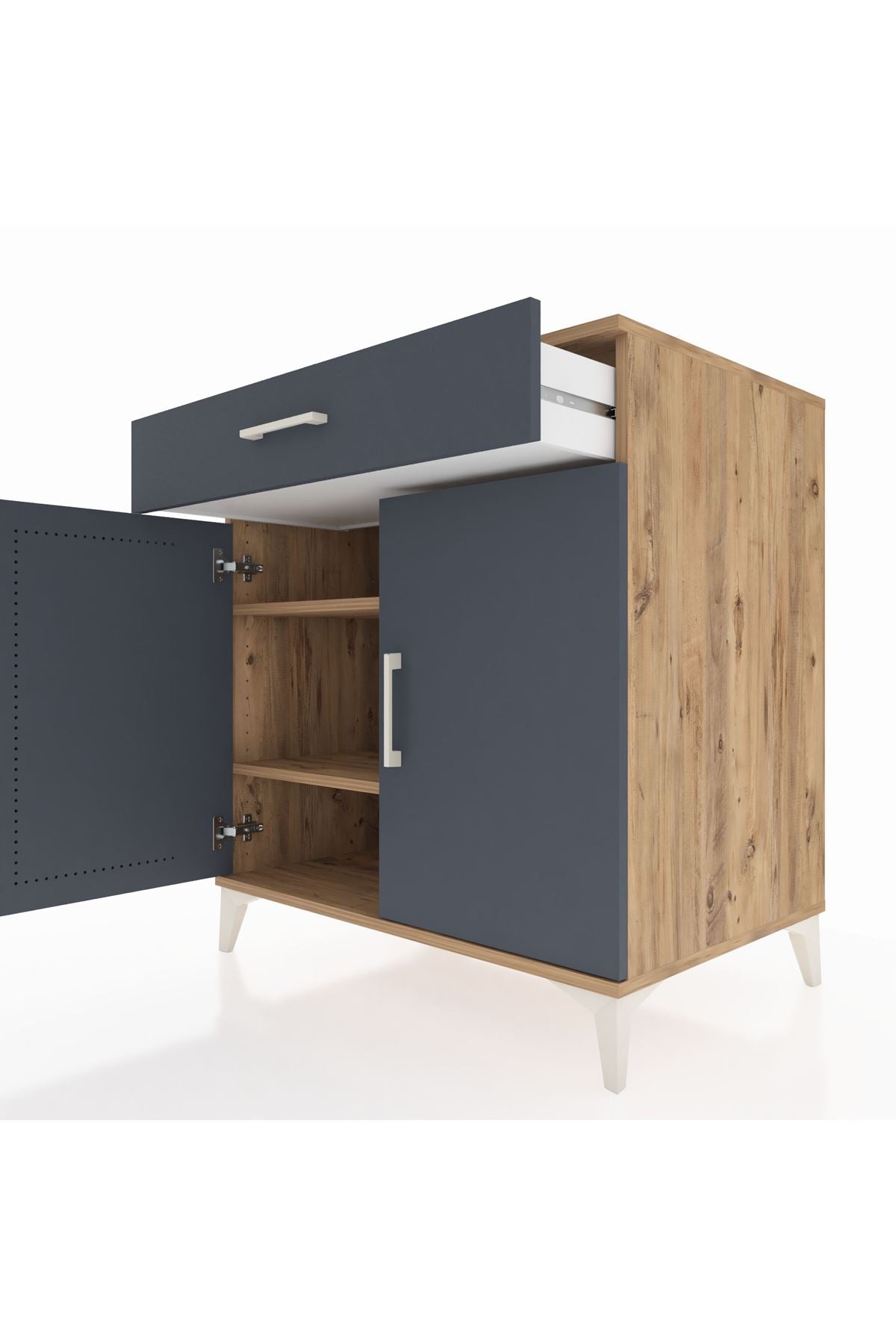 📌 Kronos Şifonyer 2 Raflı Tek Çekmeceli 2 Kapaklı 88x59x96