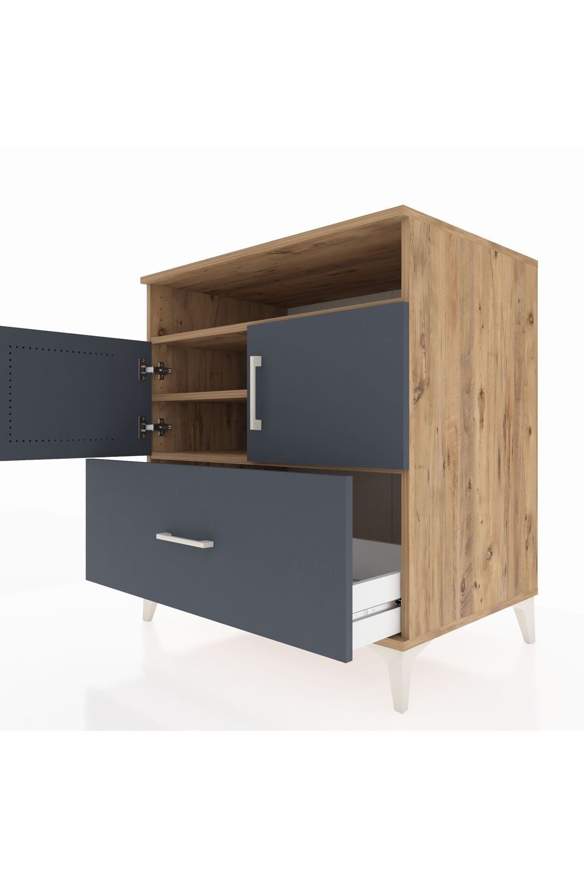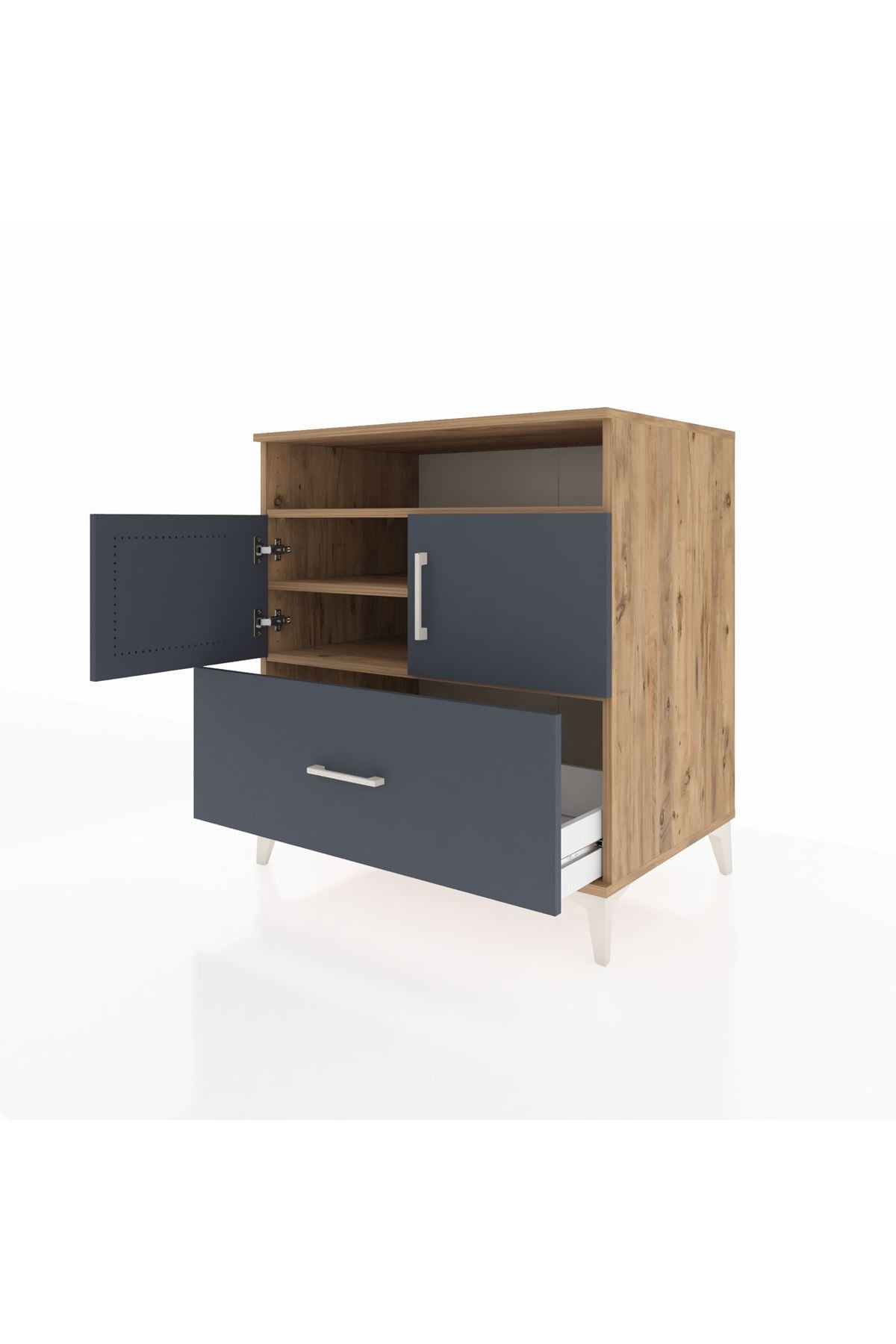 Kronos Şifonyer 3 Raflı Tek Çekmeceli 2 Kapaklı 88x59x96 Çam-Antrasit