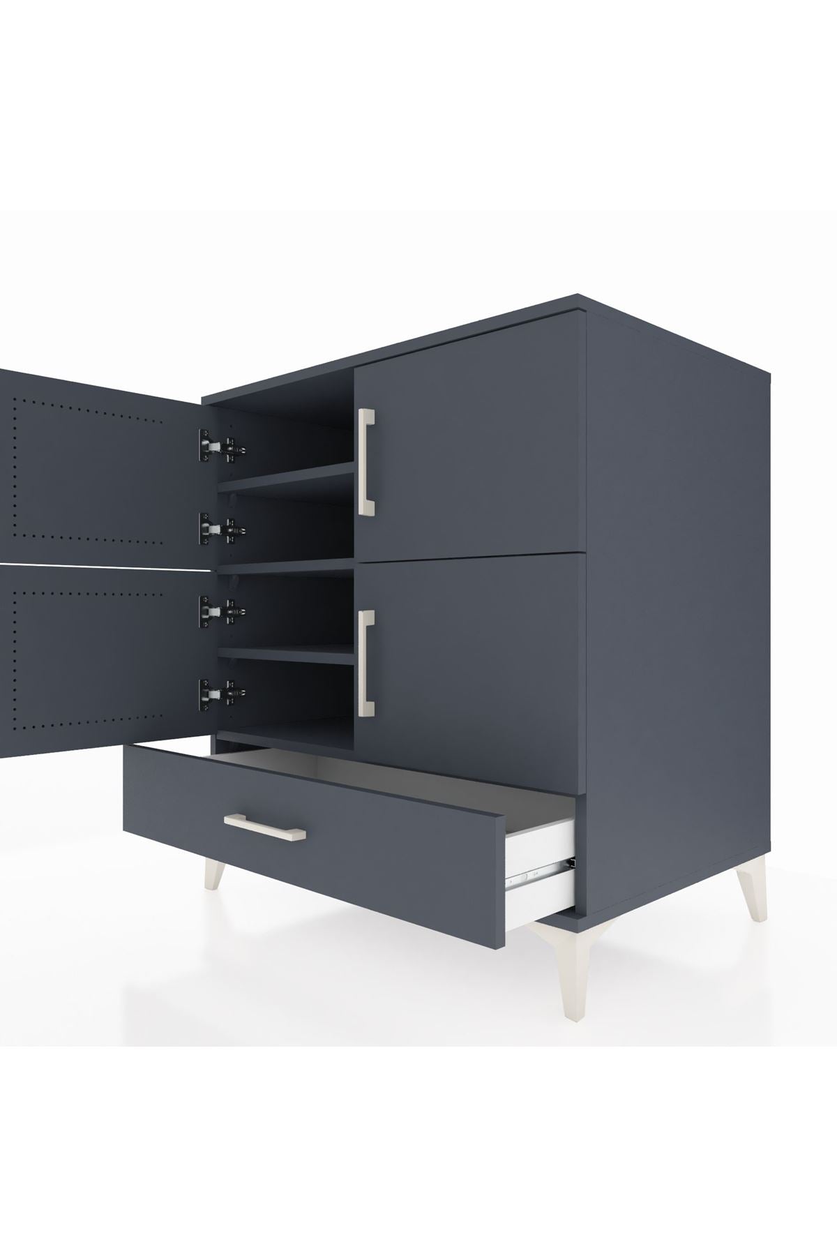 Kronos Şifonyer 4 Raflı Tek Çekmeceli 4 Kapaklı 88x59x96 Antrasit-Antrasit