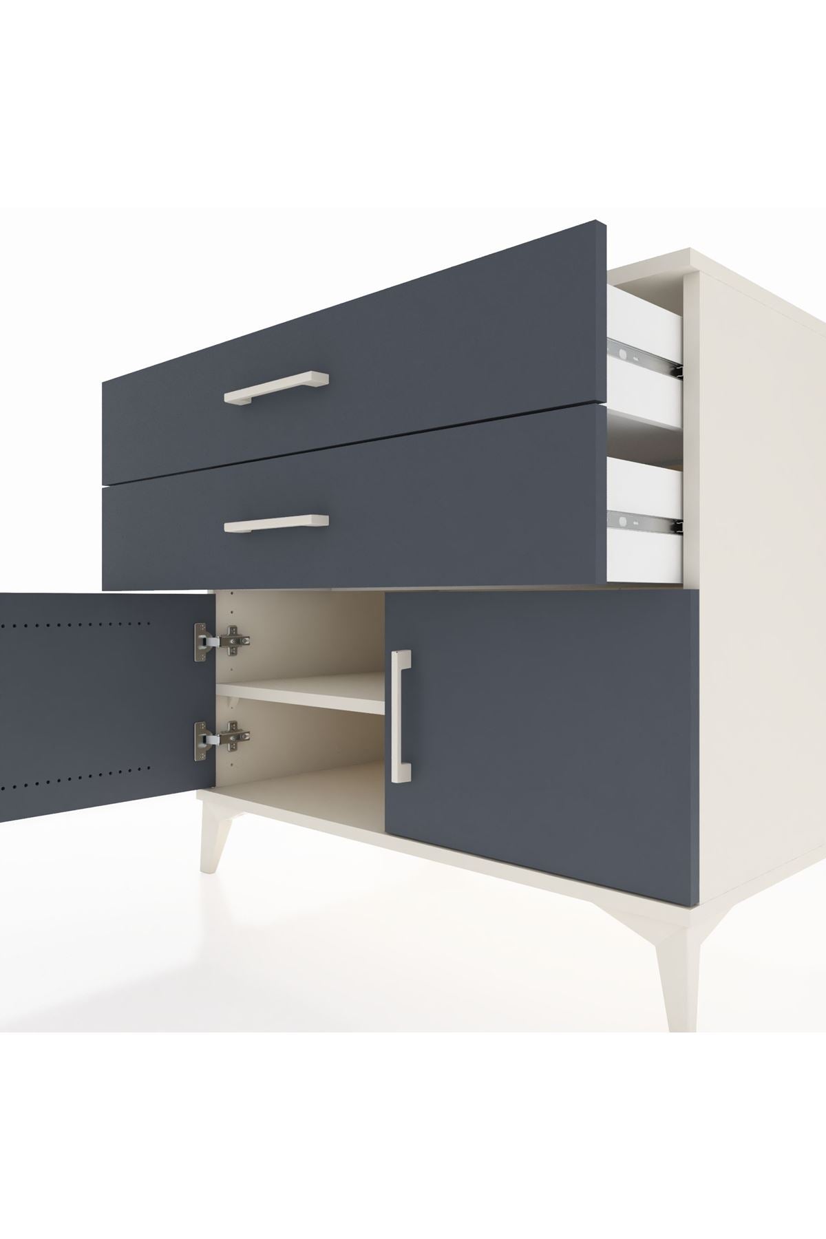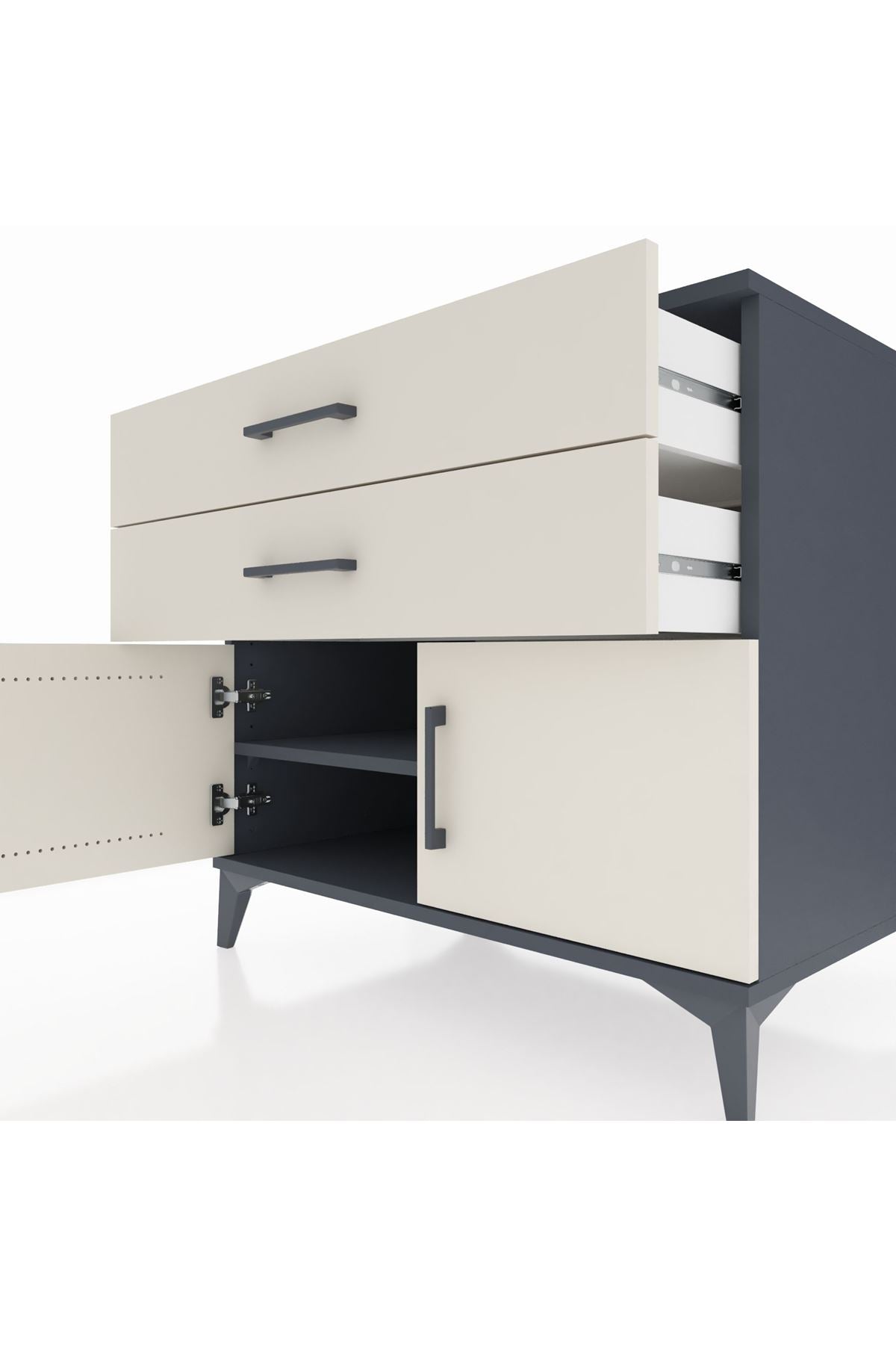 📌 Kronos Şifonyer Tek Raflı 2 Çekmeceli 2 Kapaklı 88x59x80