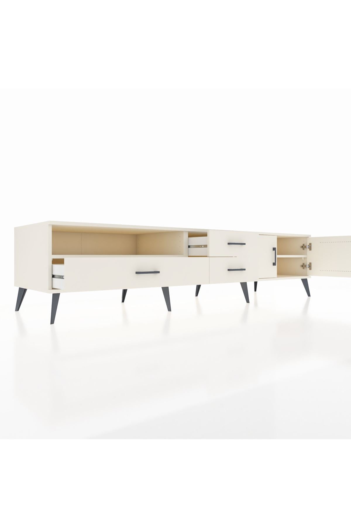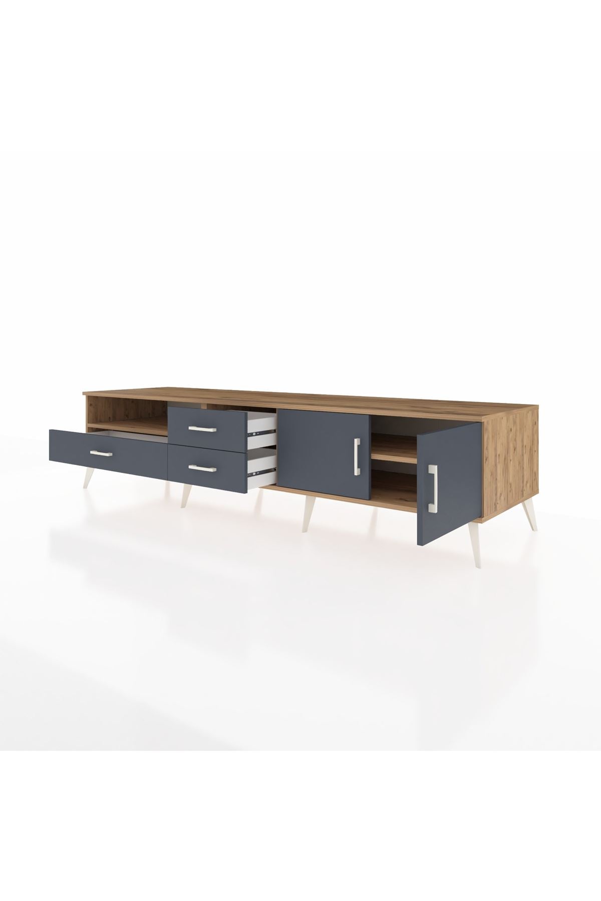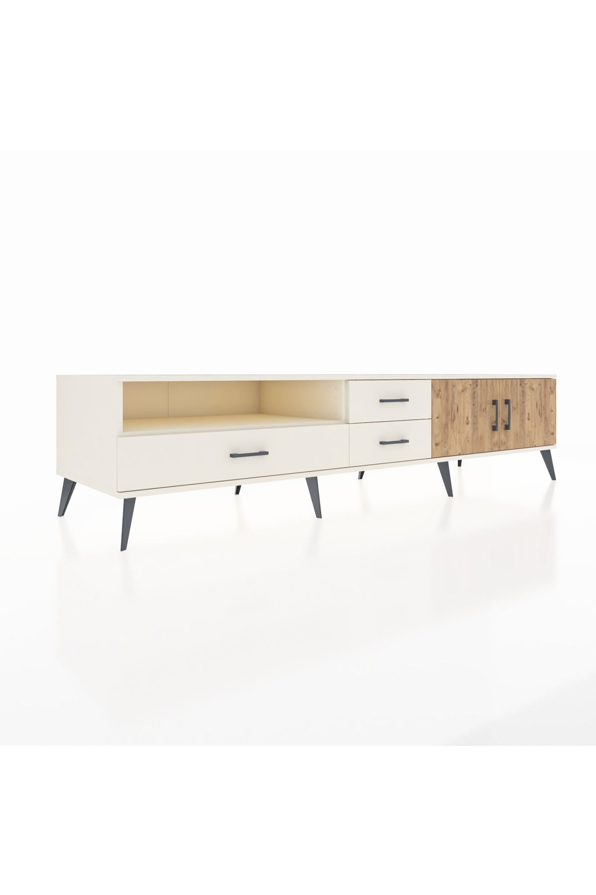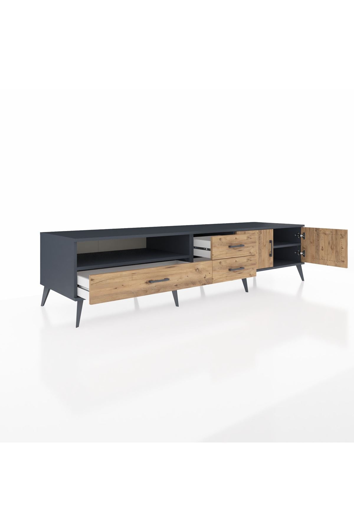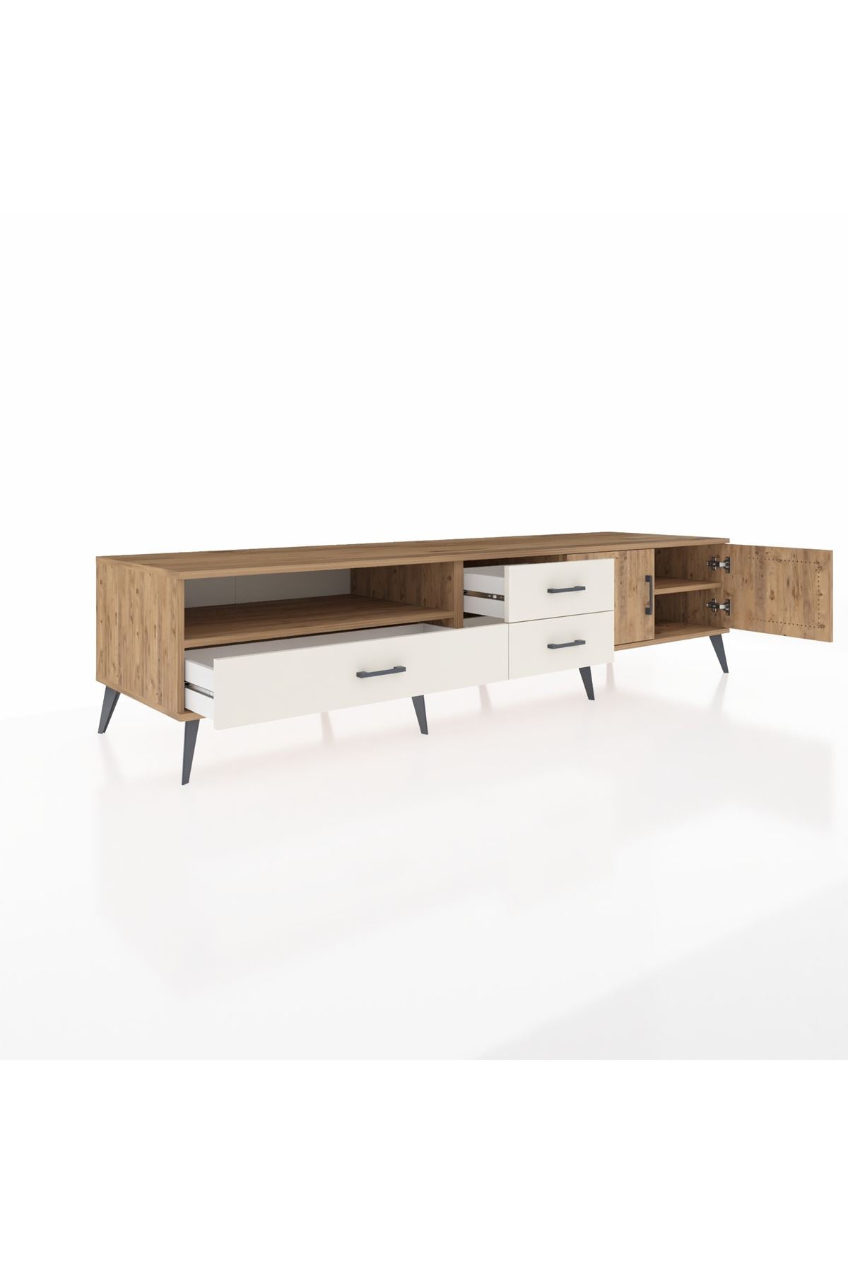 🦾 Metal ayaklar, TV ünitesine modern bir hava katarken, sağlam yapısıyla güvenli bir kullanım sunar. Metal kulplar ise çekmecelerin ve kapakların kolayca açılıp kapanmasını sağlar.