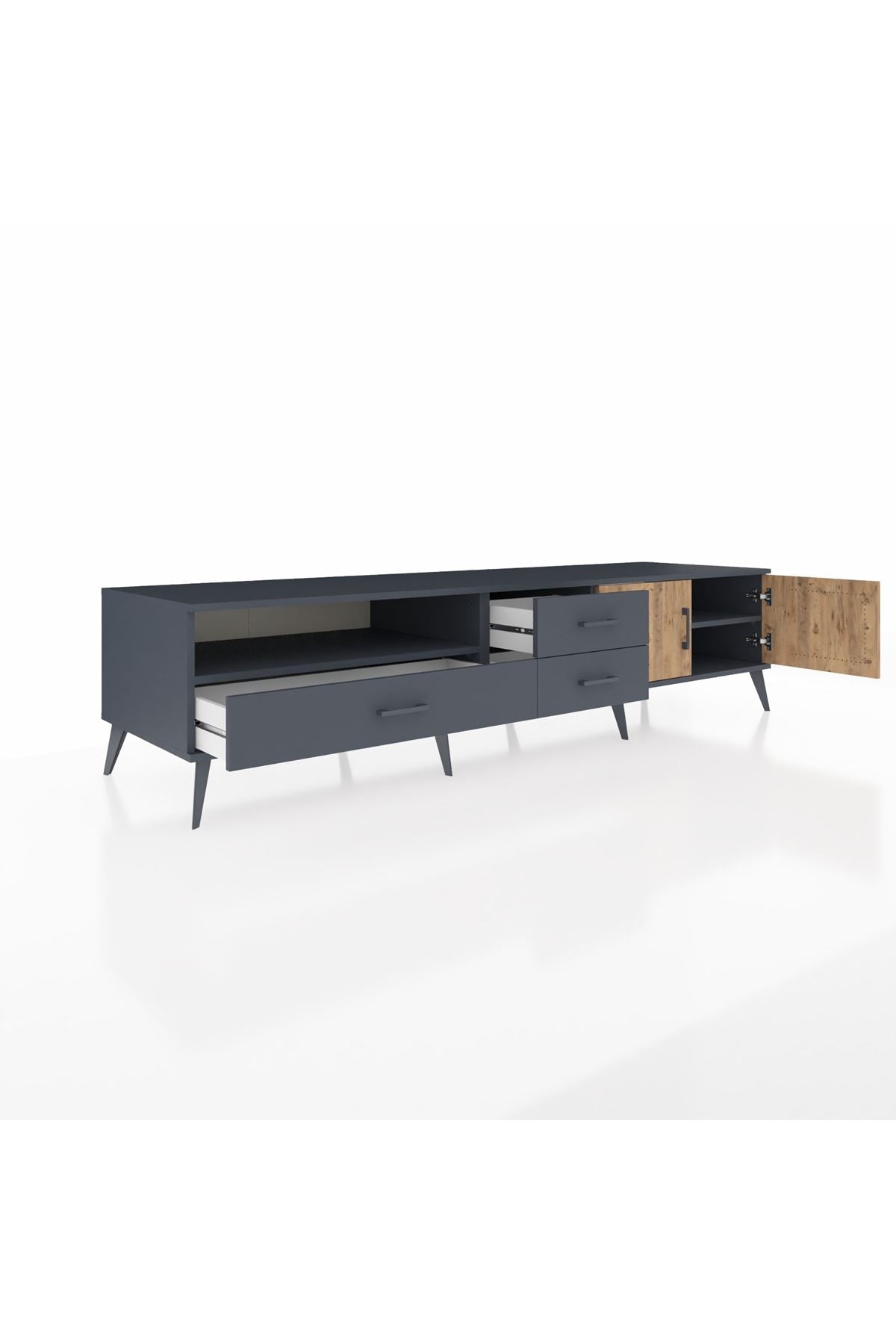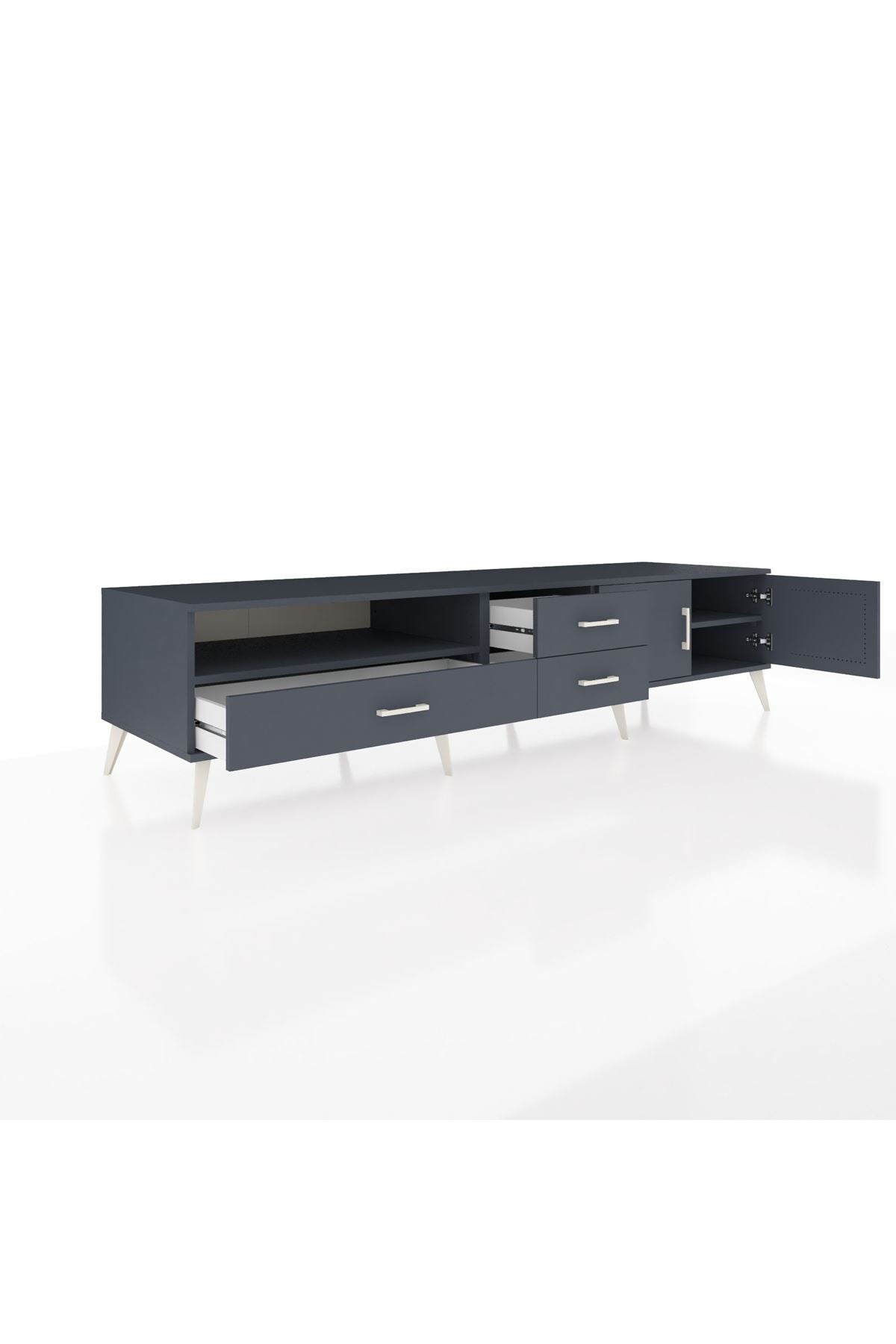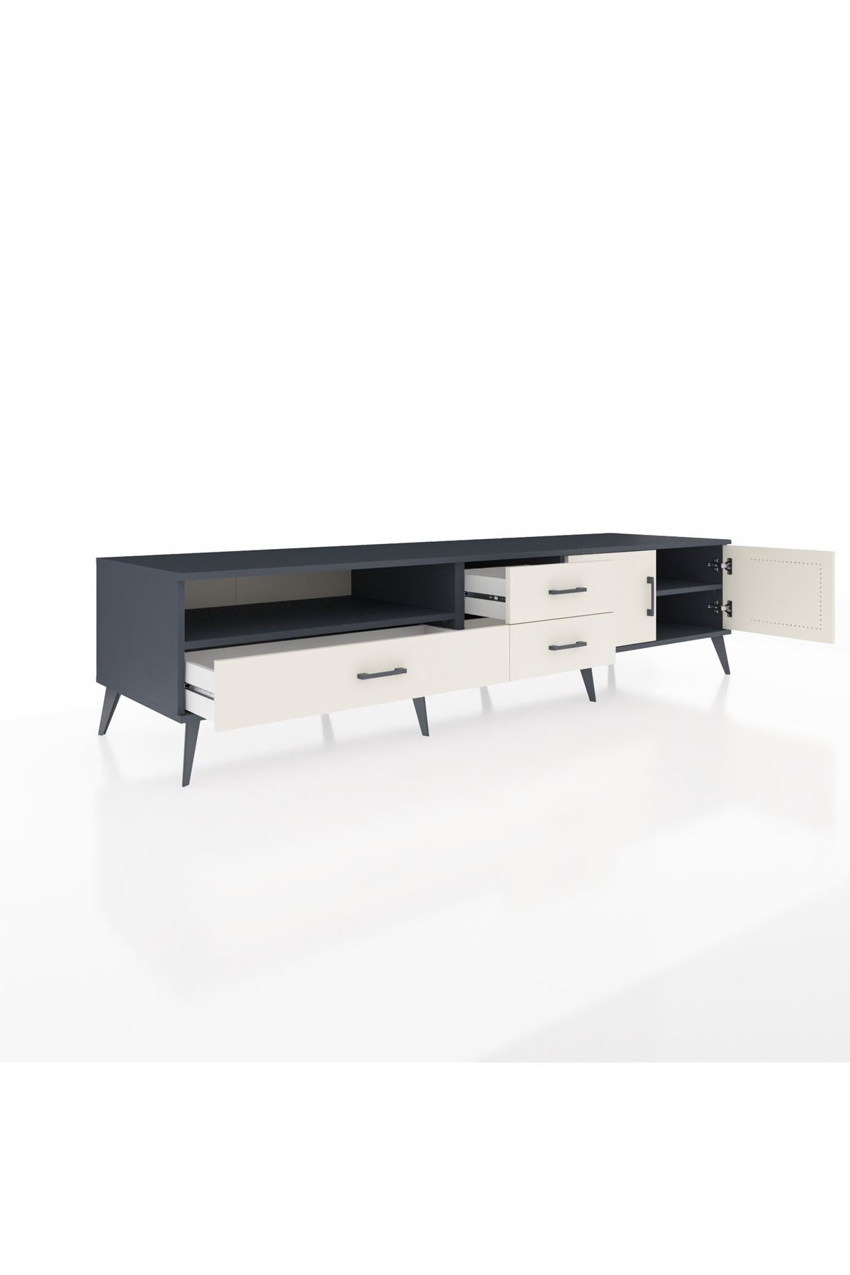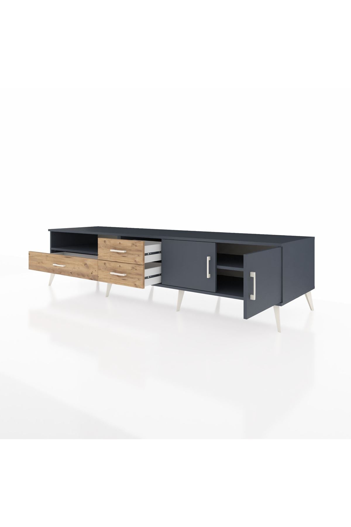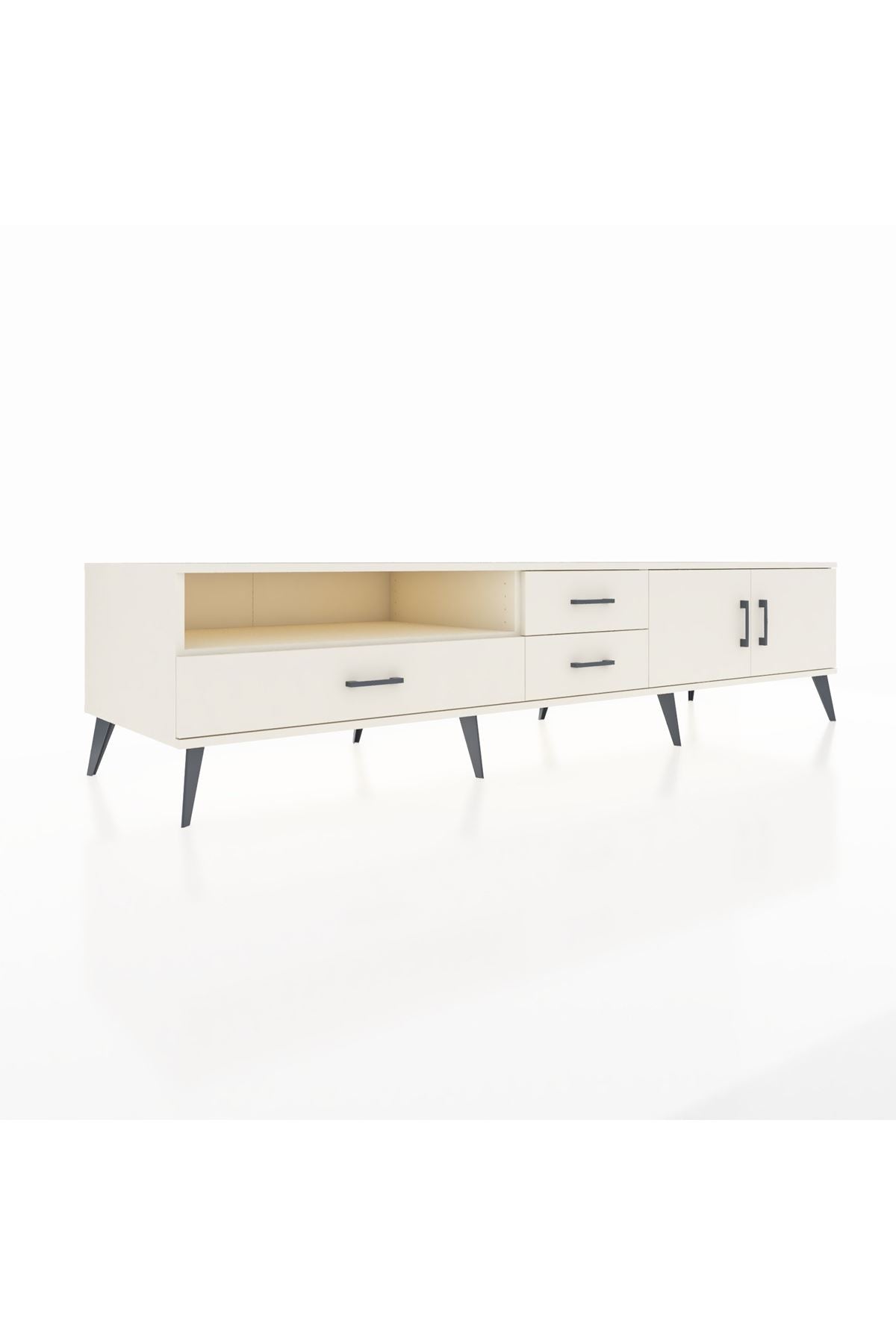 🦾 Metal ayaklar, TV ünitesine modern bir hava katarken, sağlam yapısıyla güvenli bir kullanım sunar. Metal kulplar ise çekmecelerin ve kapakların kolayca açılıp kapanmasını sağlar.