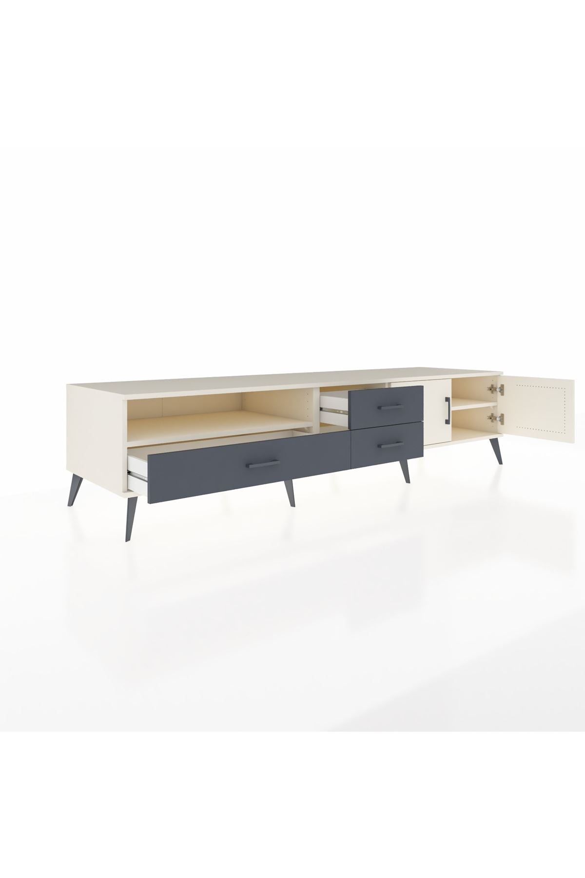 Kronos TV Ünitesi, modern tasarımı ve fonksiyonel özellikleriyle yatak odası, çocuk odası ve ofis gibi farklı yaşam alanlarında kullanılabilir. Evinizin dekorasyonuna uyum sağlayacak şık bir seçenektir.