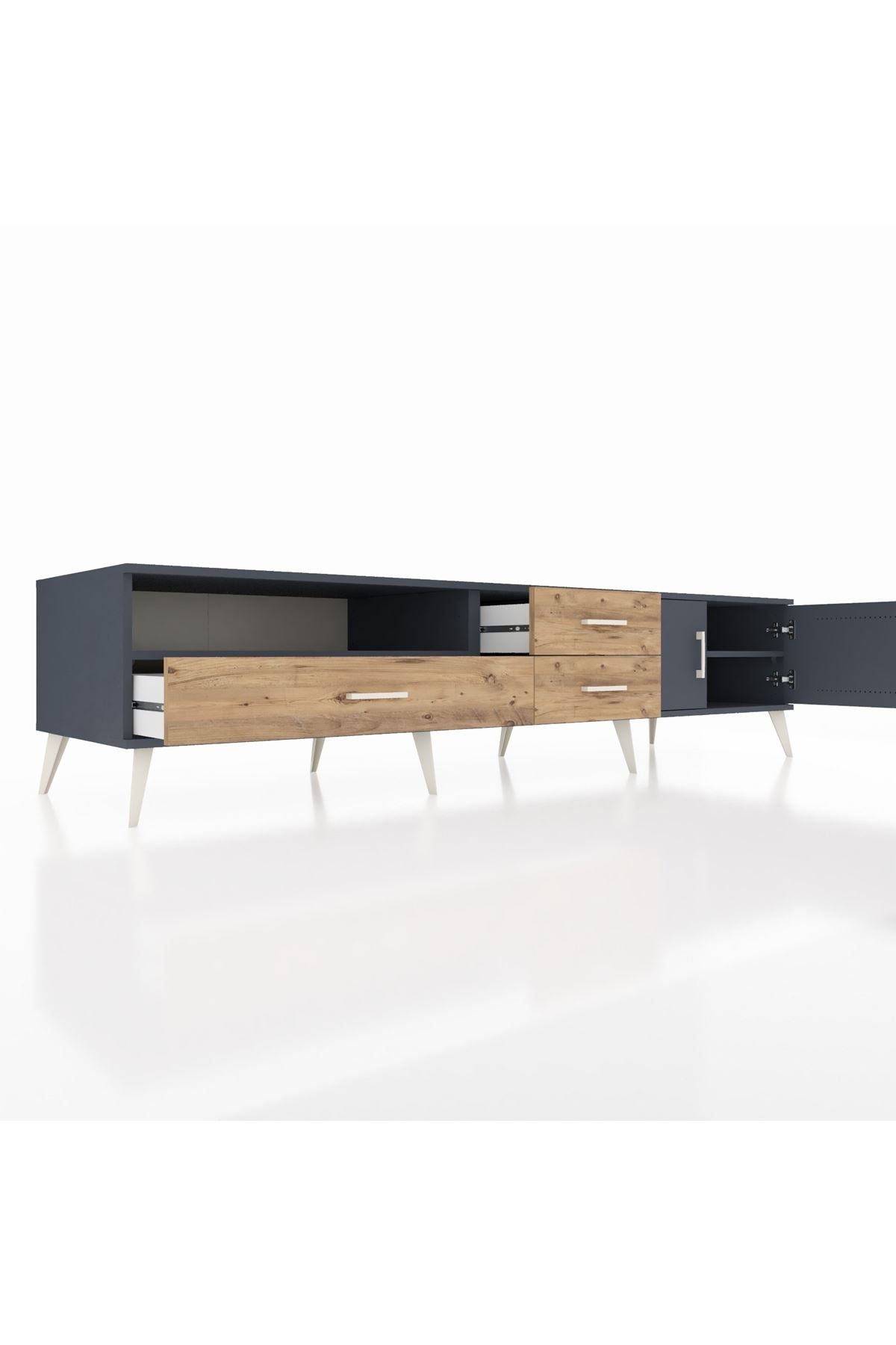 Kronos TV Ünitesi 2 Raflı 3 Çekmeceli 2 Kapaklı 220x59x51