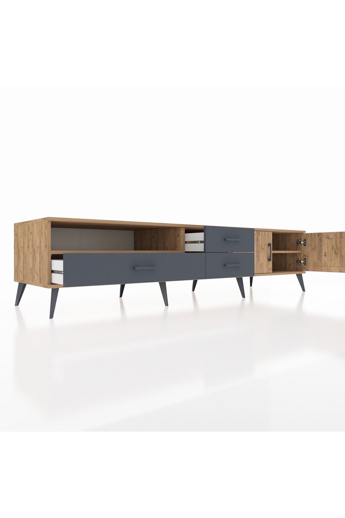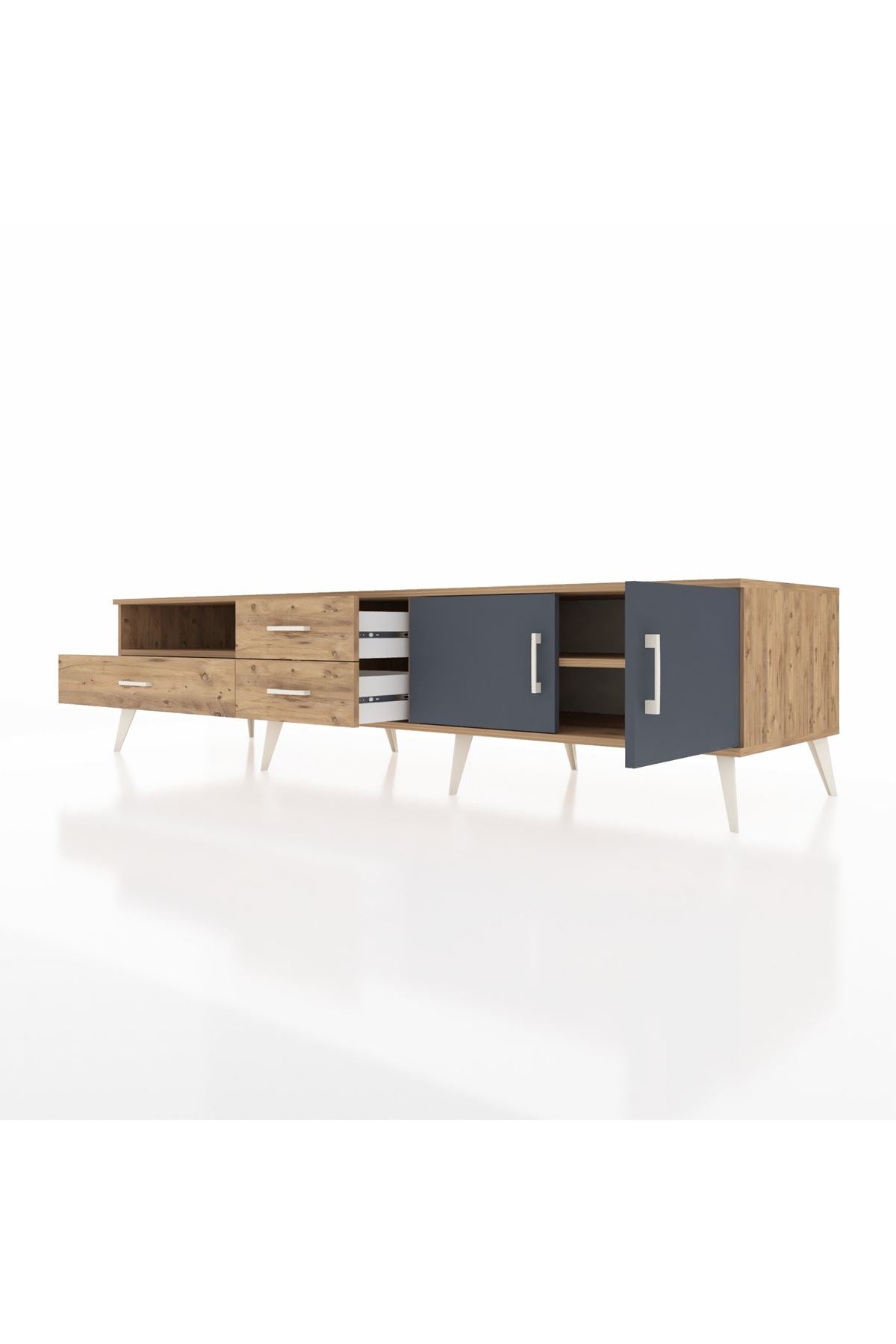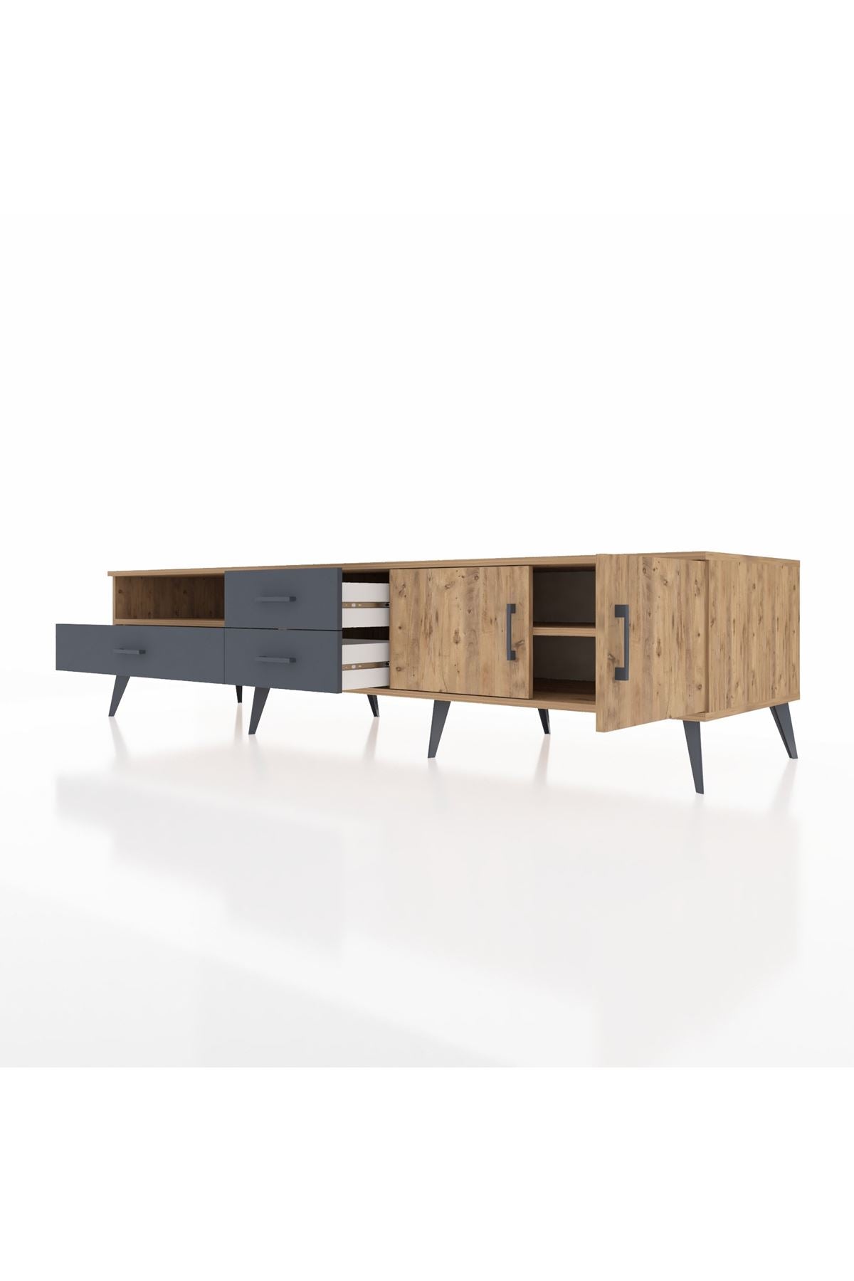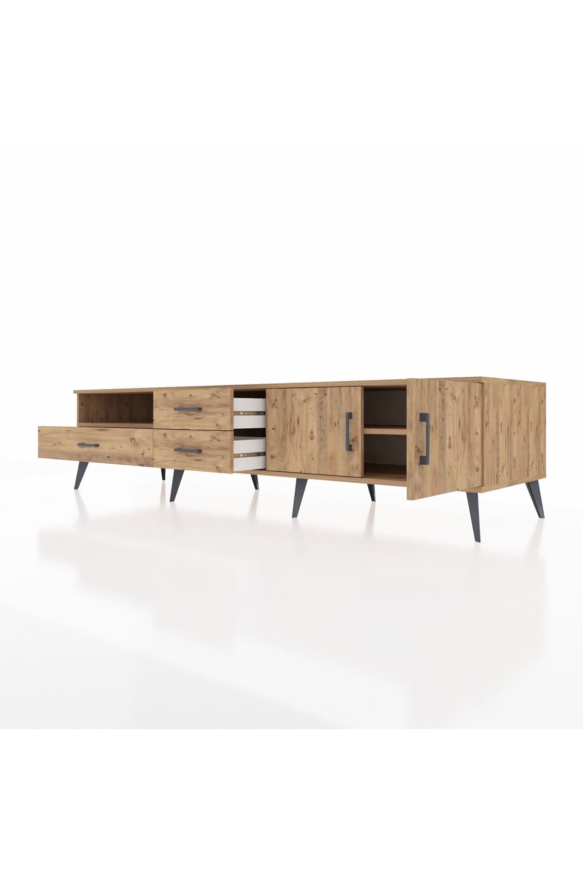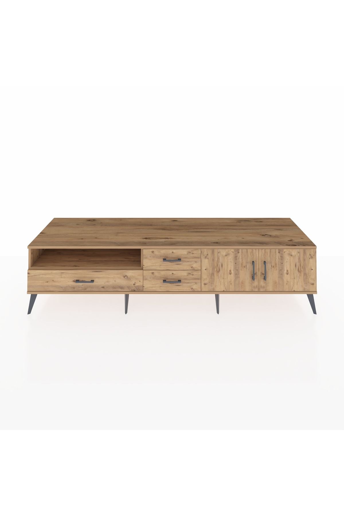 🕰️ Artemis Koleksiyonu'nun Kronos – Zaman serisinden ilham alan bu TV ünitesi, zamanın ötesinde bir tasarıma sahip. Mekânınızda hem modern hem de sıcak bir atmosfer yaratmanızı sağlar.
