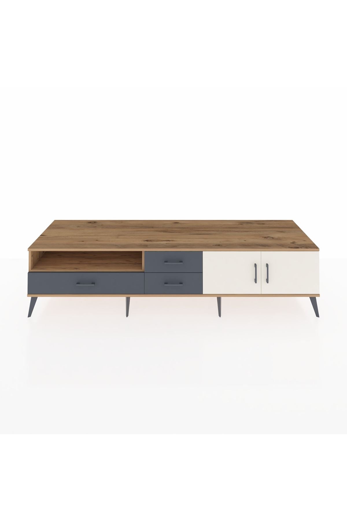 📌 Kronos TV Ünitesi 2 Raflı 3 Çekmeceli 2 Kapaklı 220x59x51