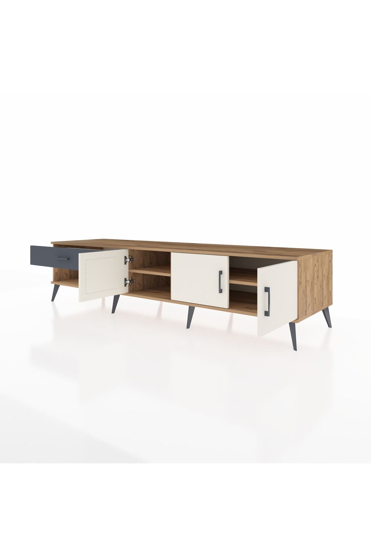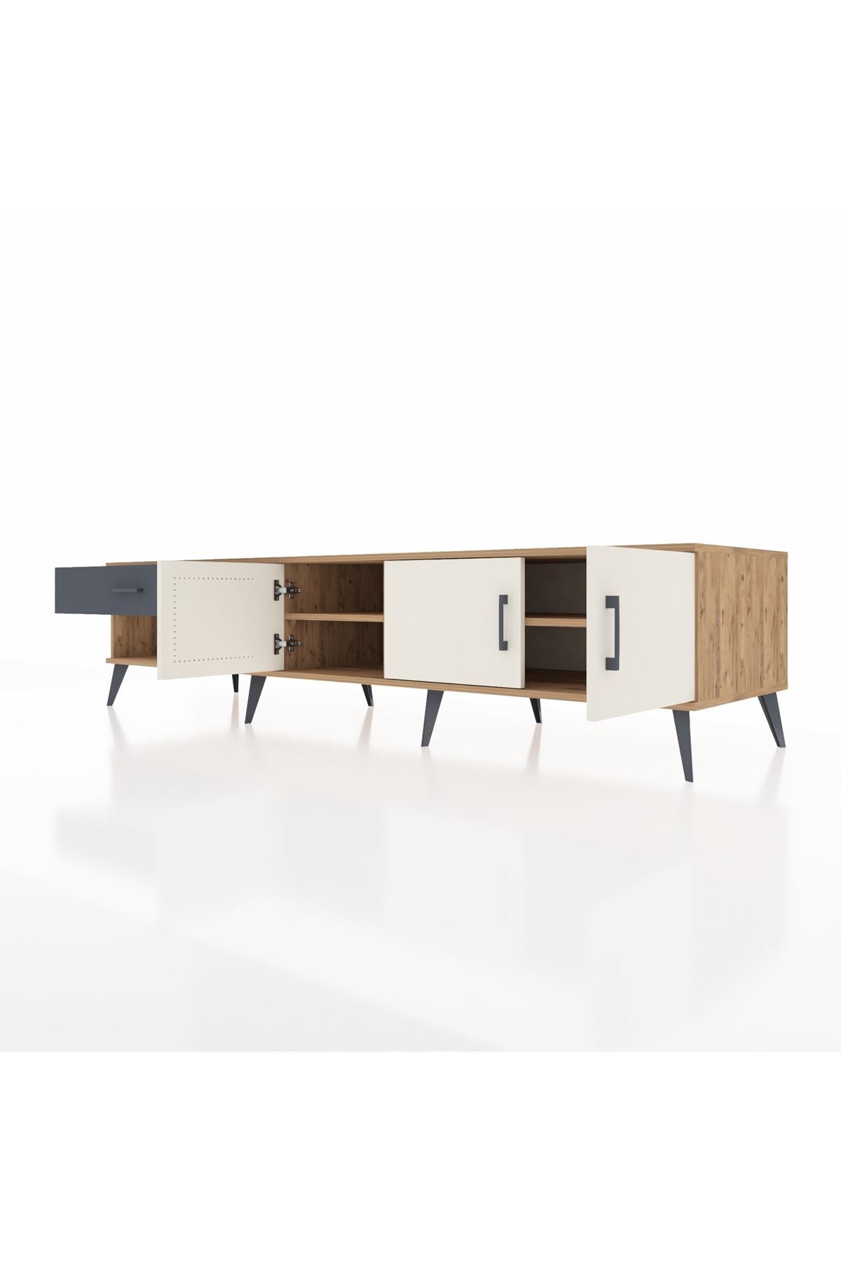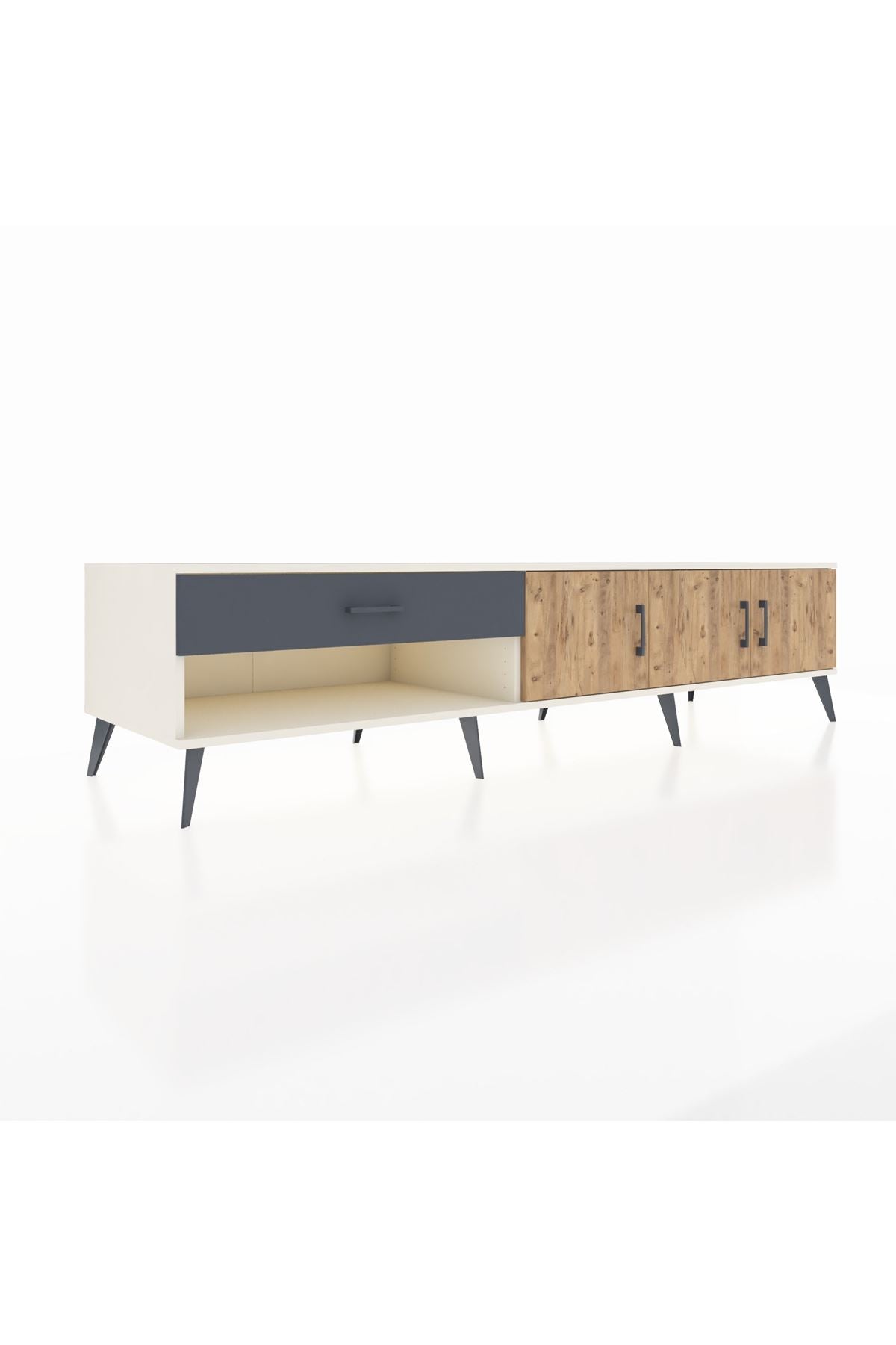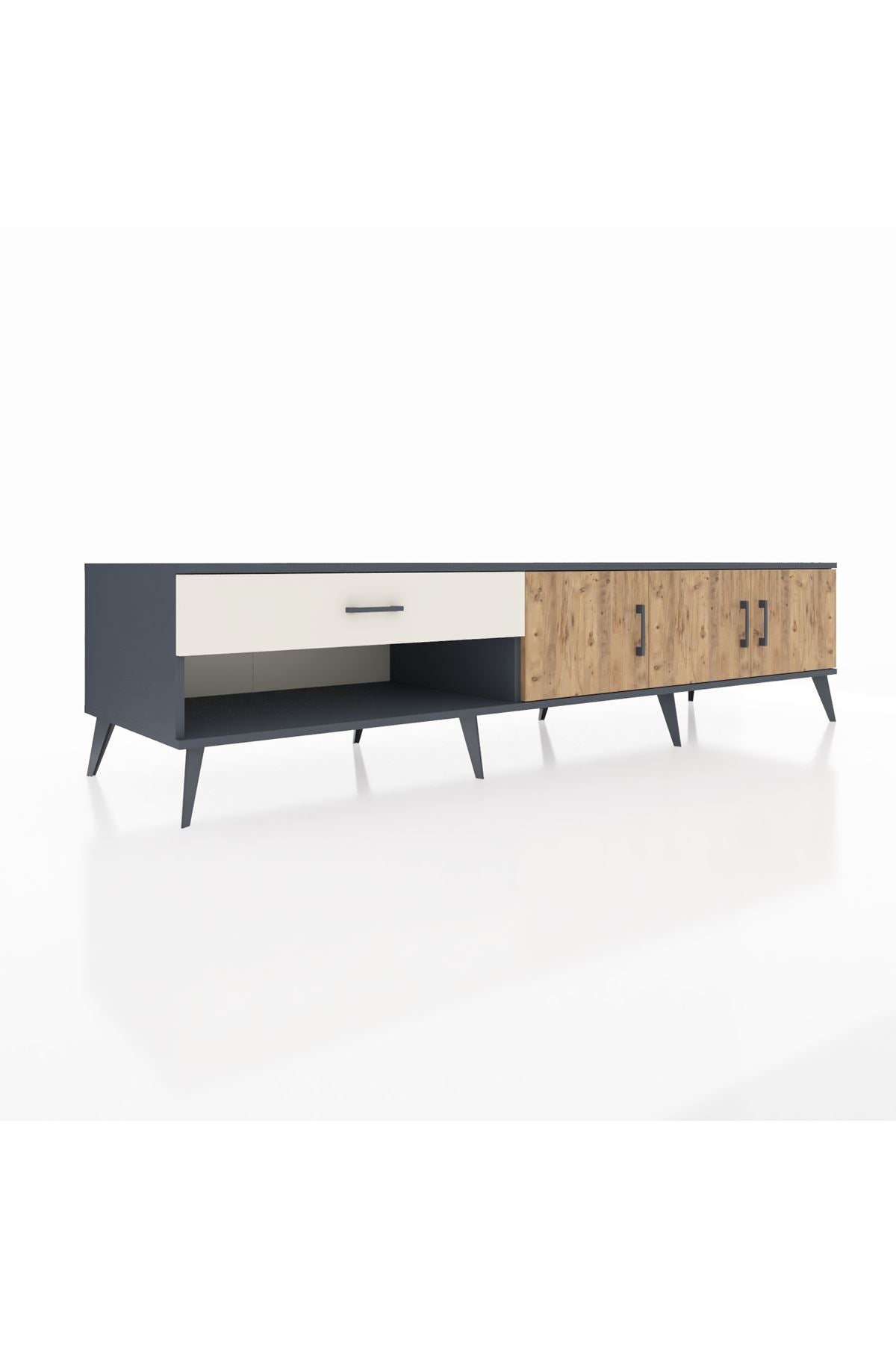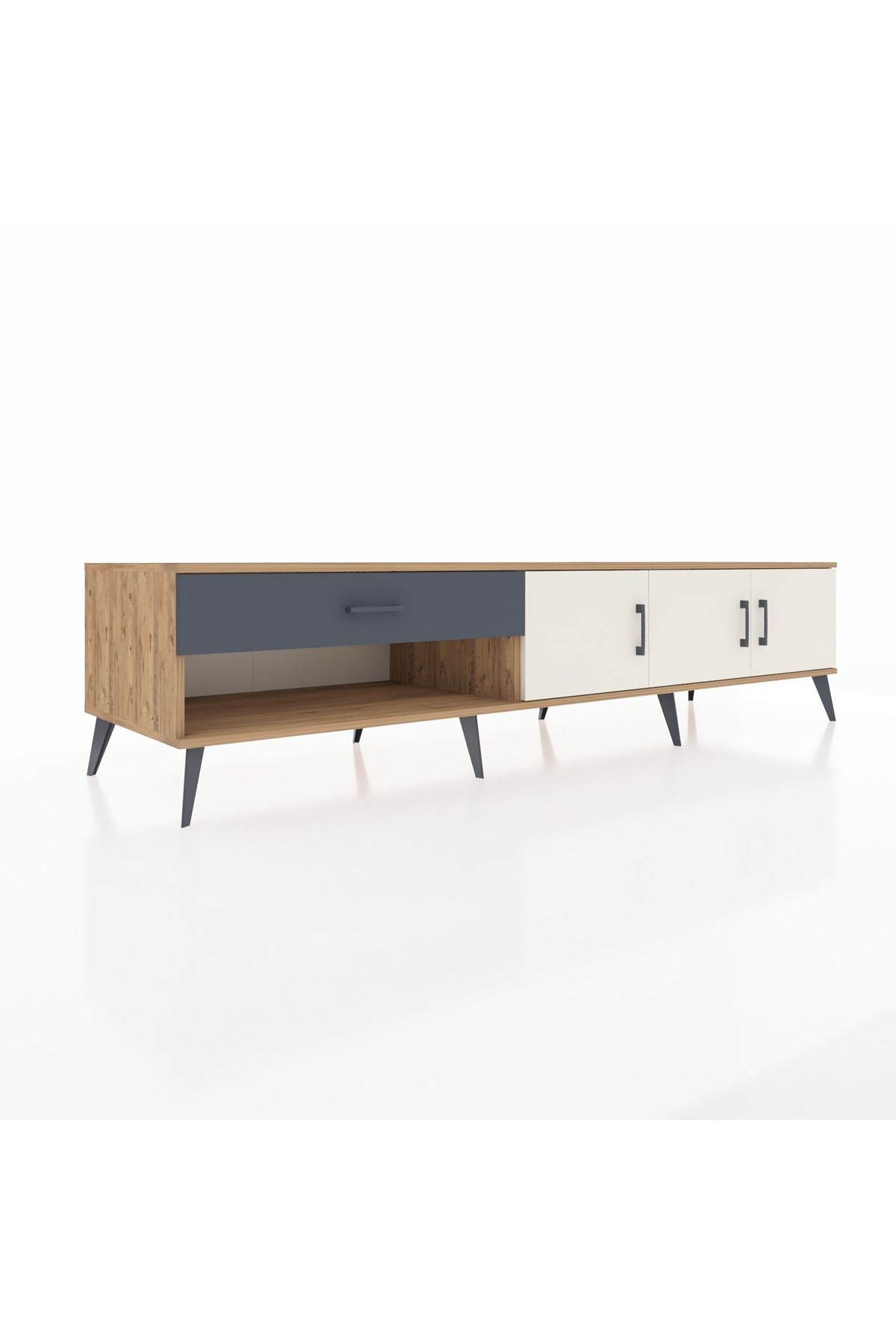 Kronos TV Ünitesi 2 Raflı Tek Çekmeceli 3 Kapaklı 220x59x51