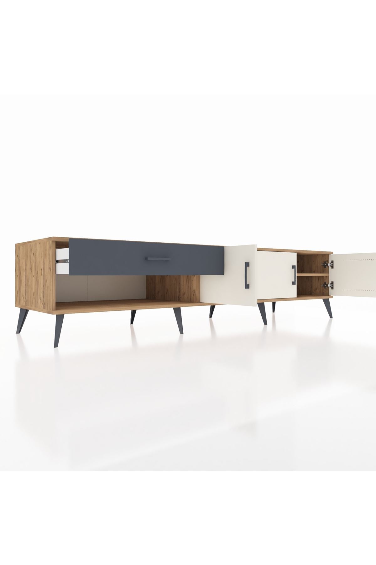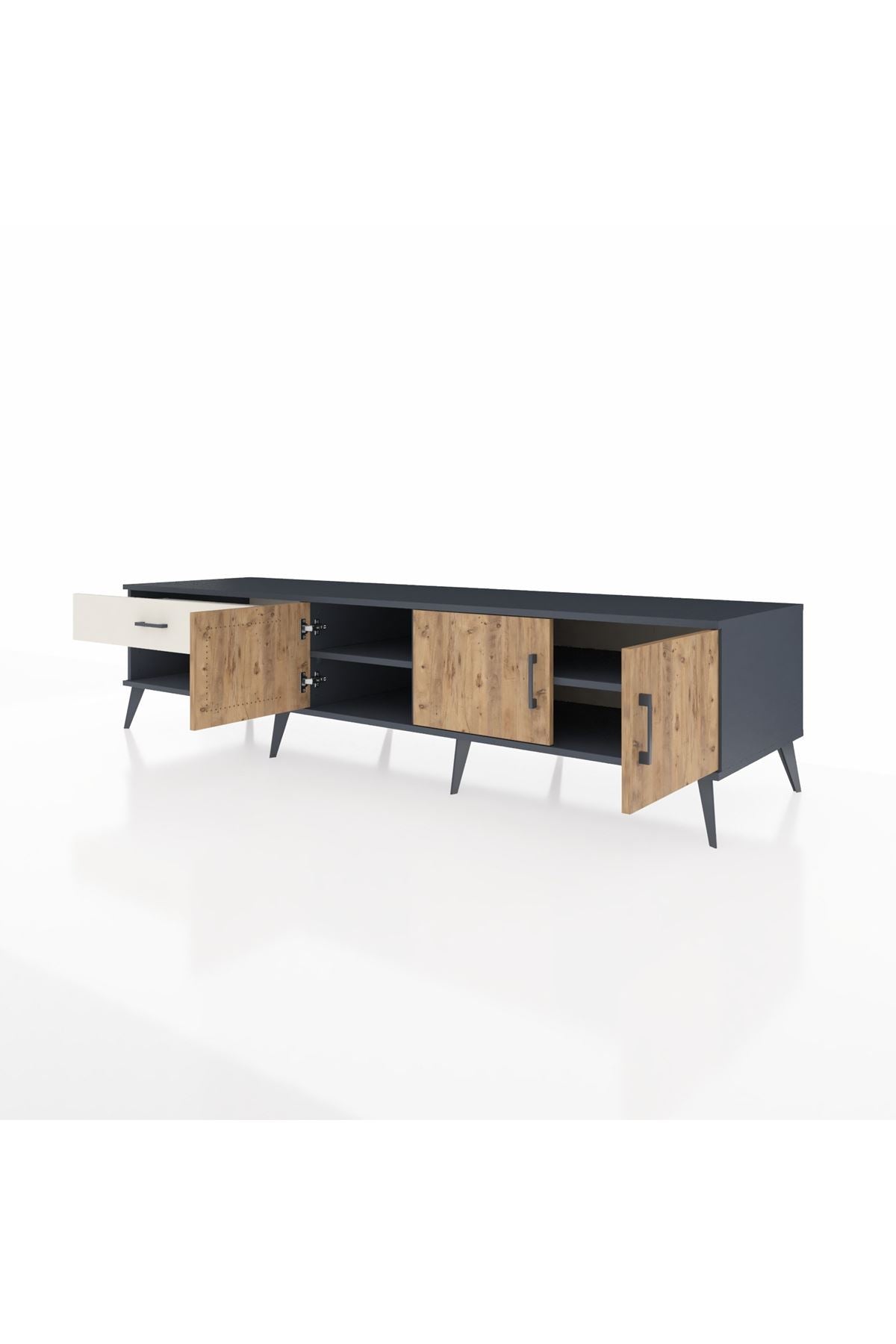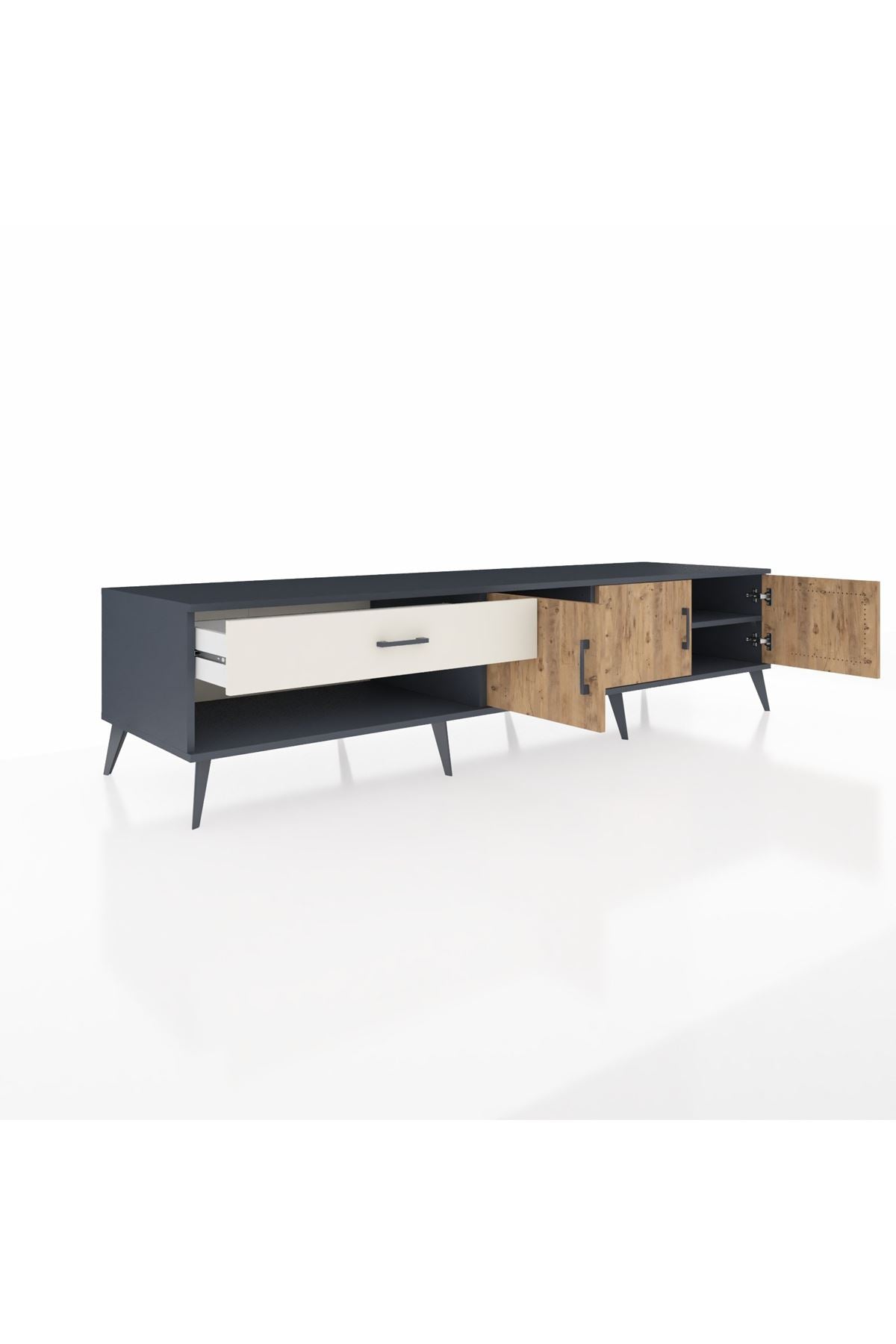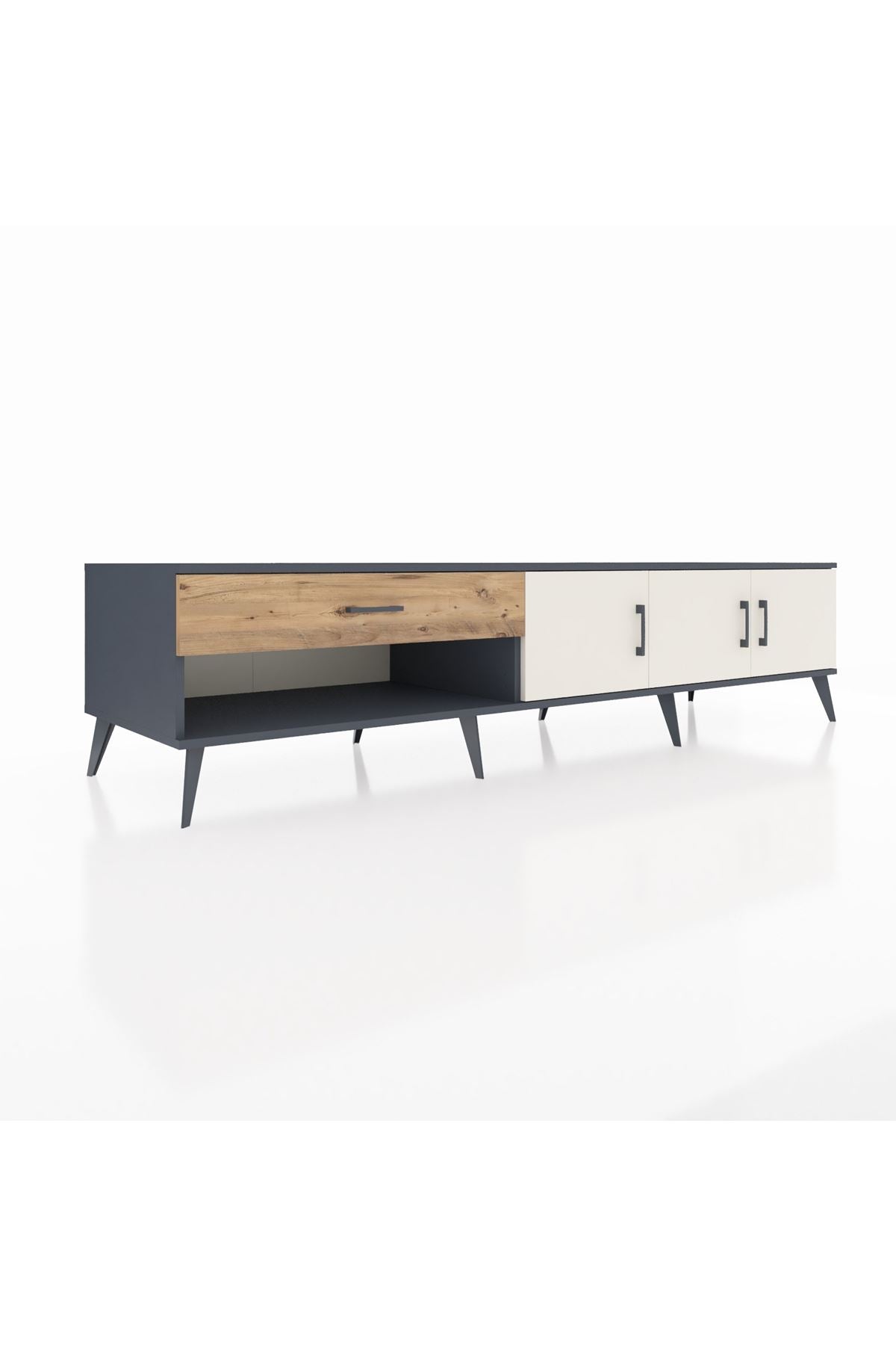 Kronos TV Ünitesi 2 Raflı Tek Çekmeceli 3 Kapaklı 220x59x51