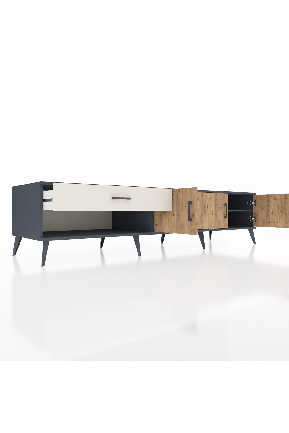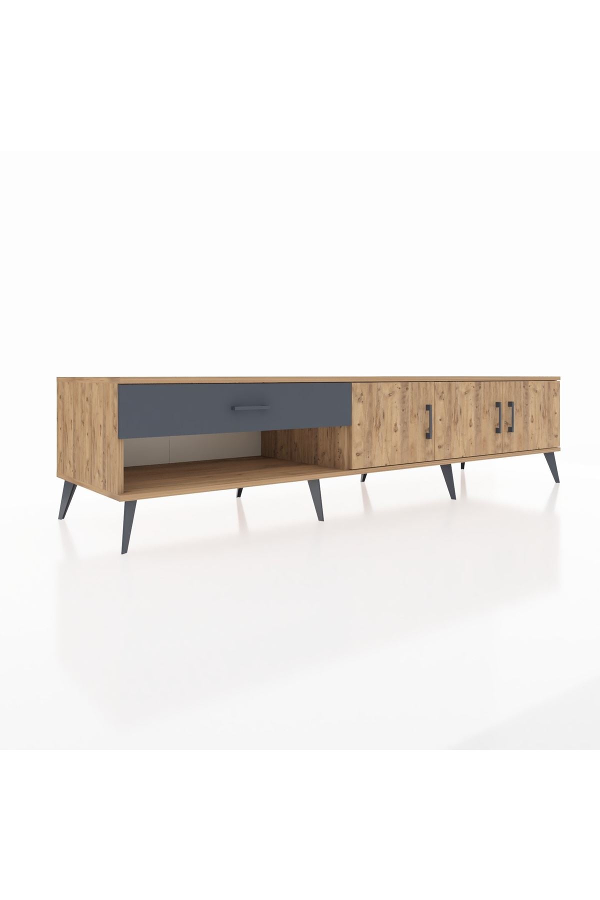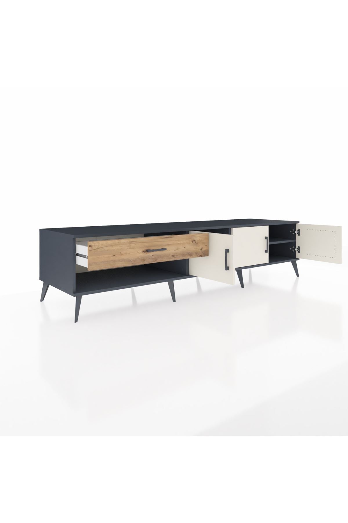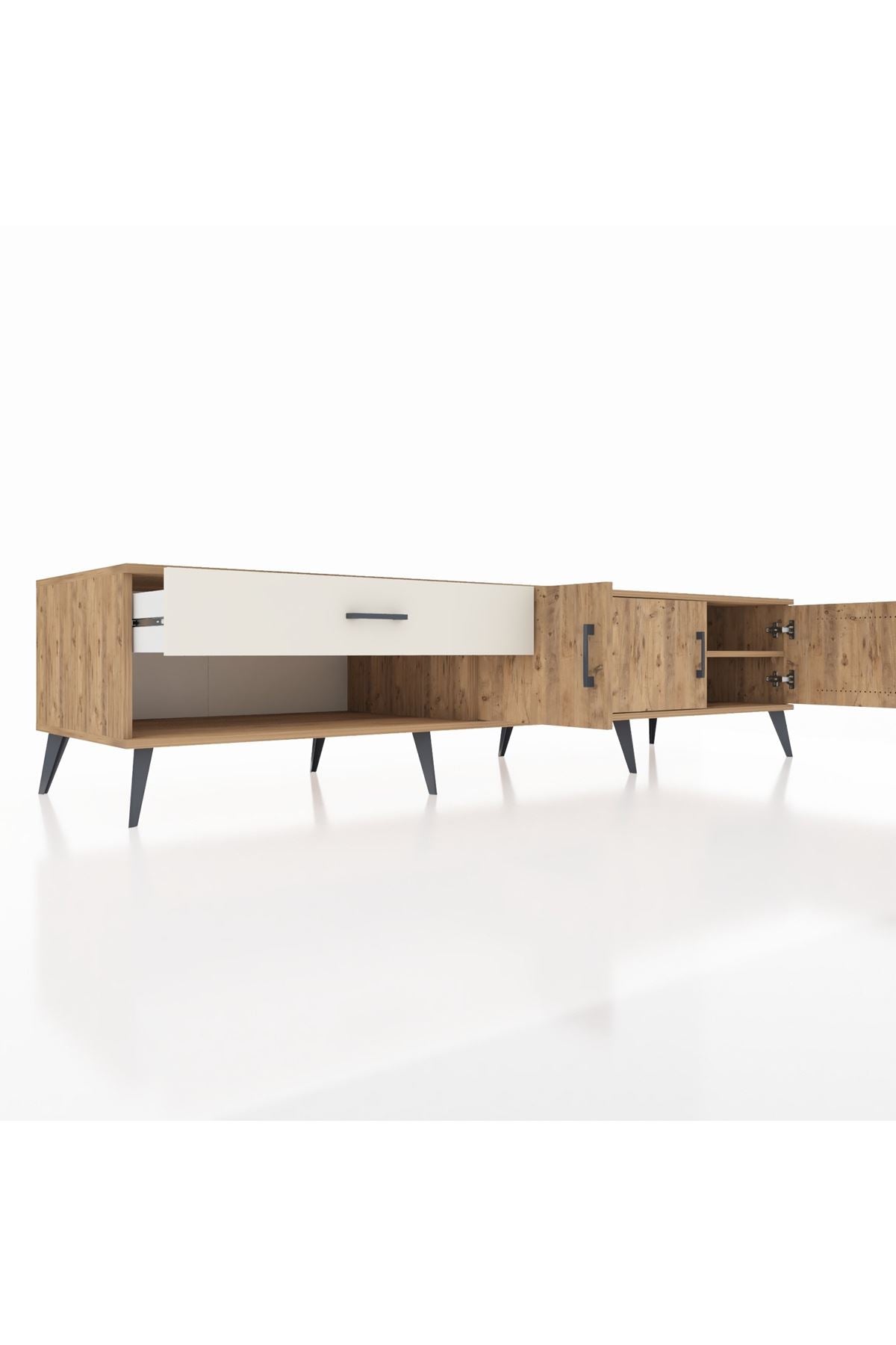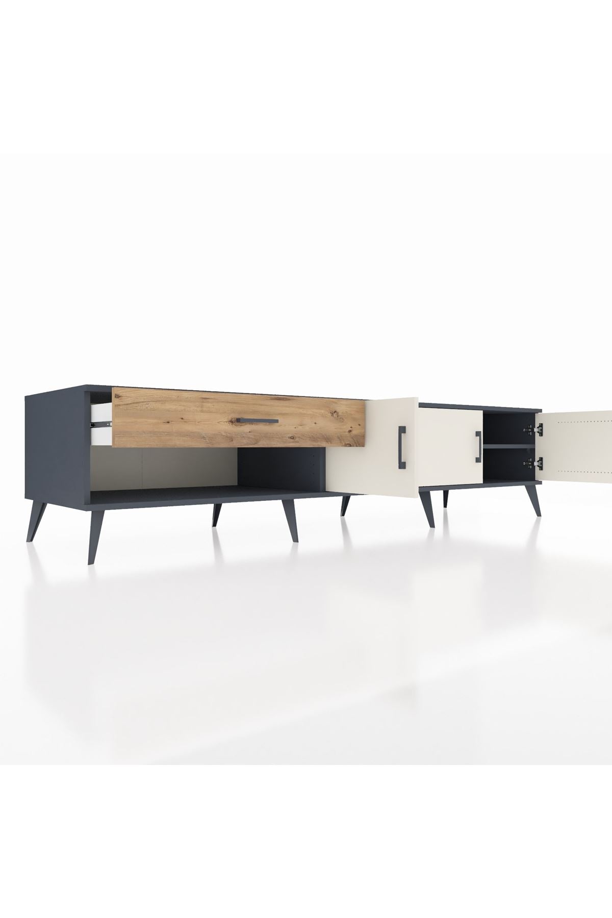 Kronos TV Ünitesi 2 Raflı Tek Çekmeceli 3 Kapaklı 220x59x51