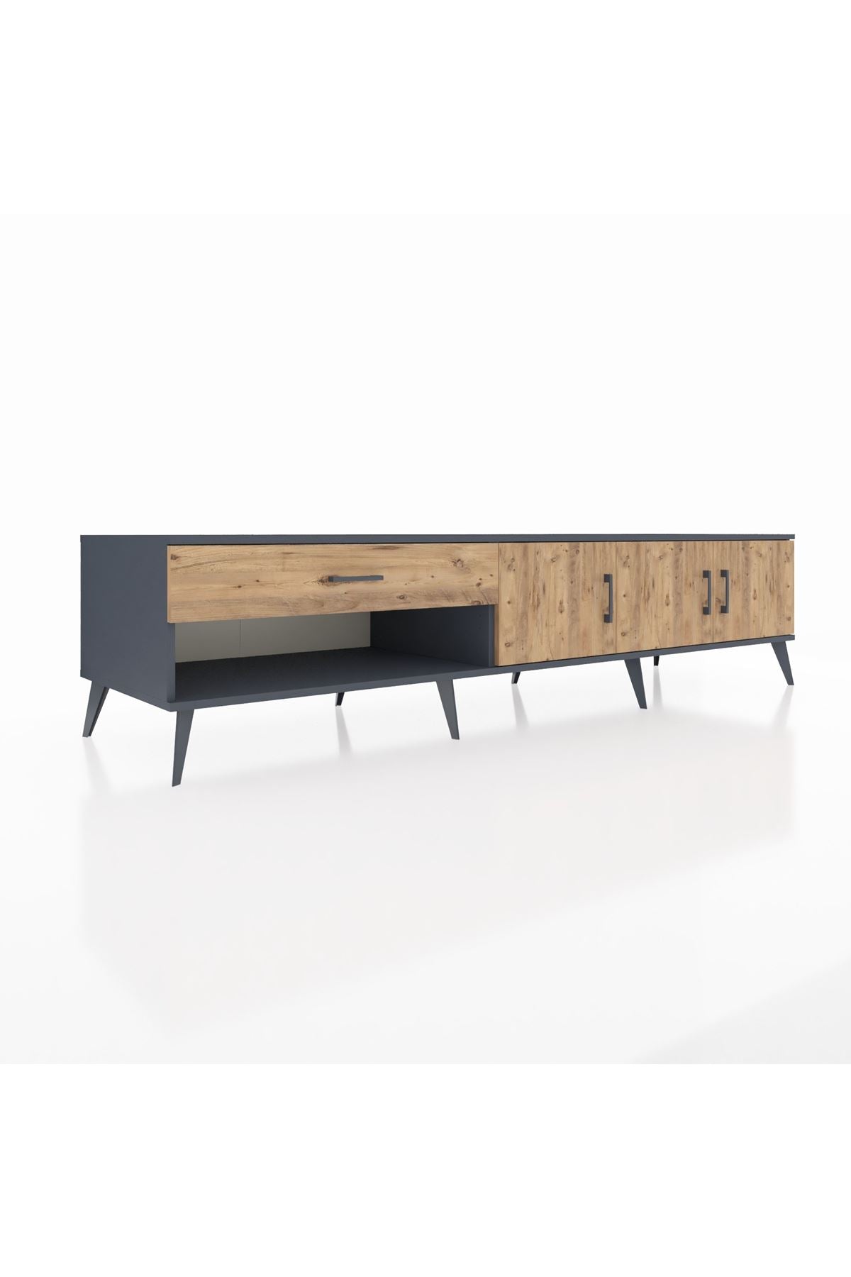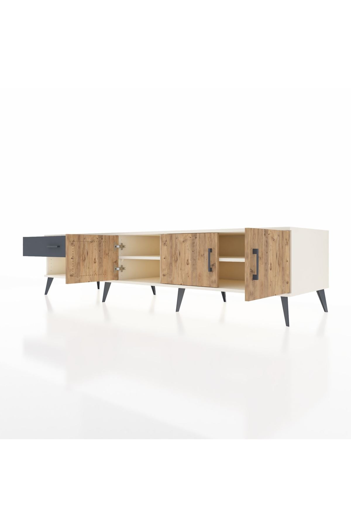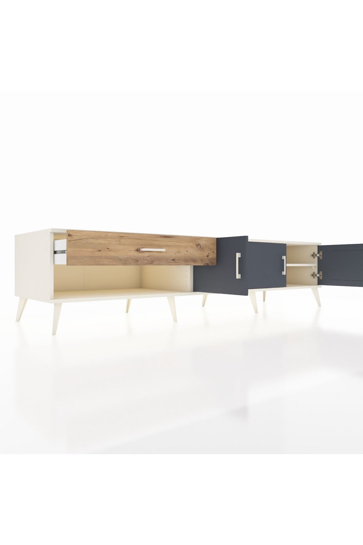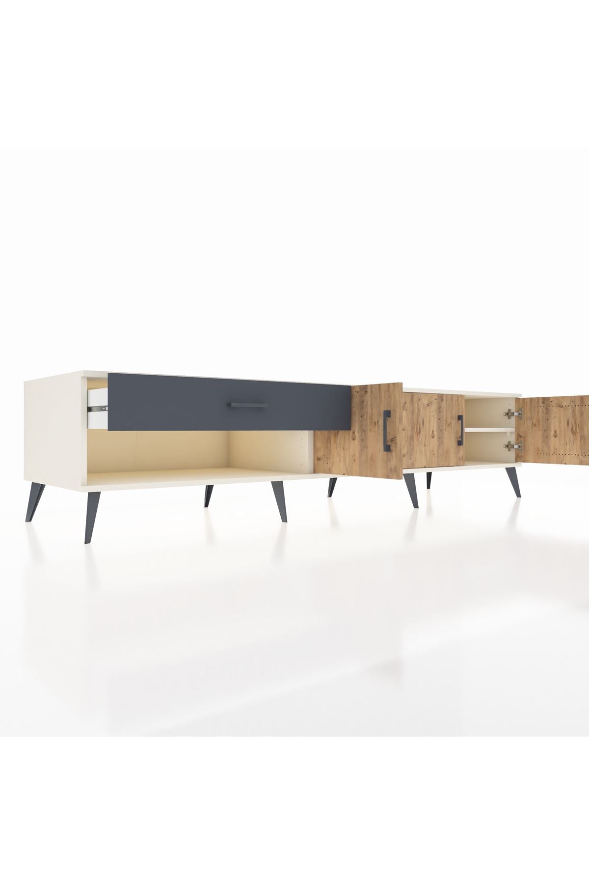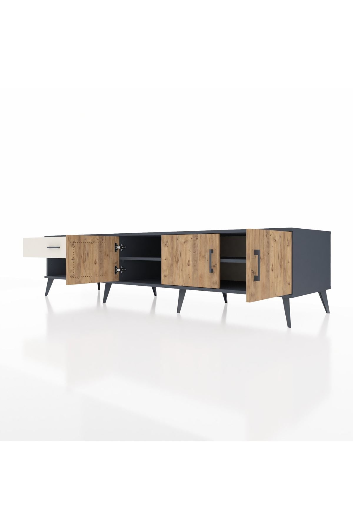Kronos TV Ünitesi 2 Raflı Tek Çekmeceli 3 Kapaklı 220x59x51