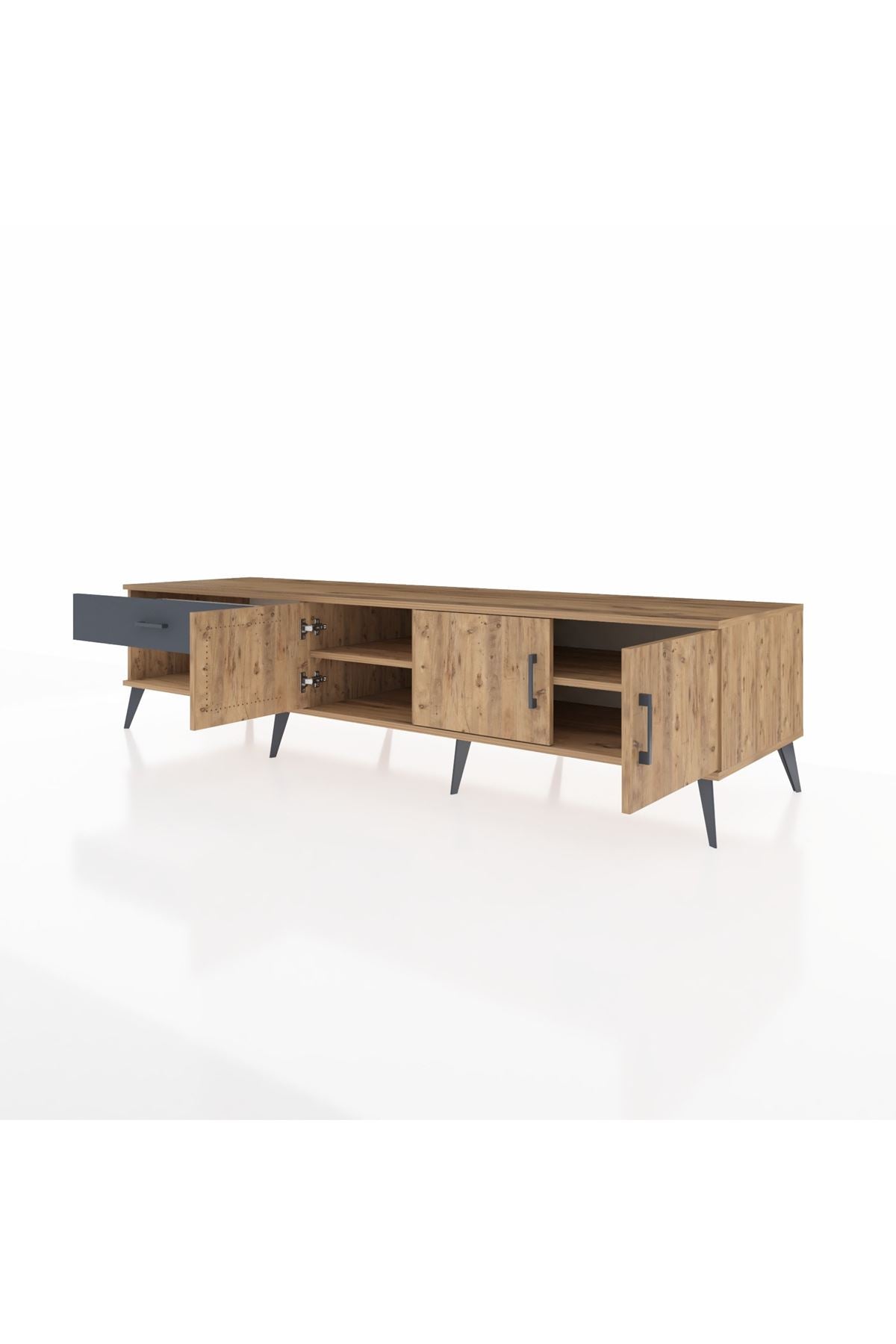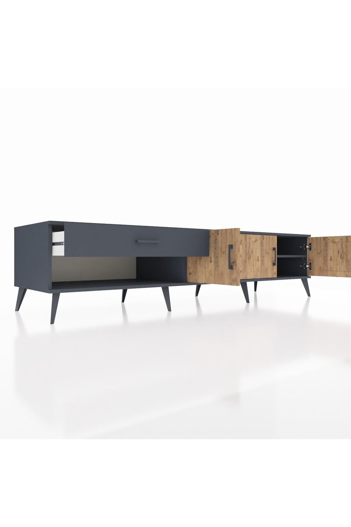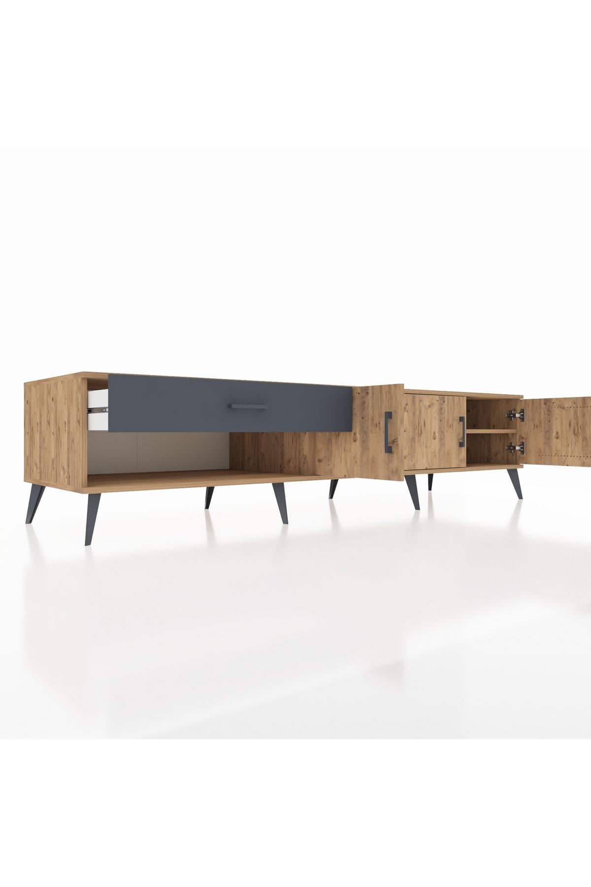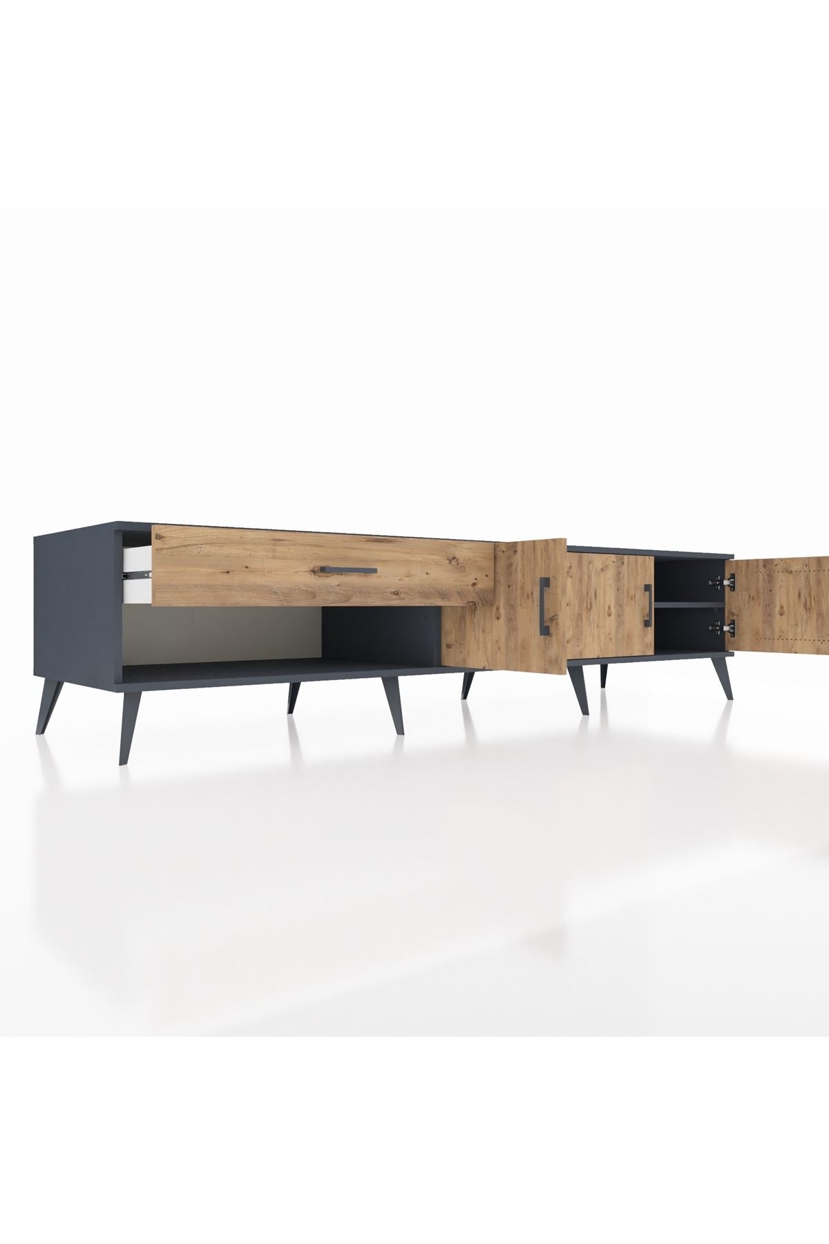 Kronos TV Ünitesi 2 Raflı Tek Çekmeceli 3 Kapaklı 220x59x51