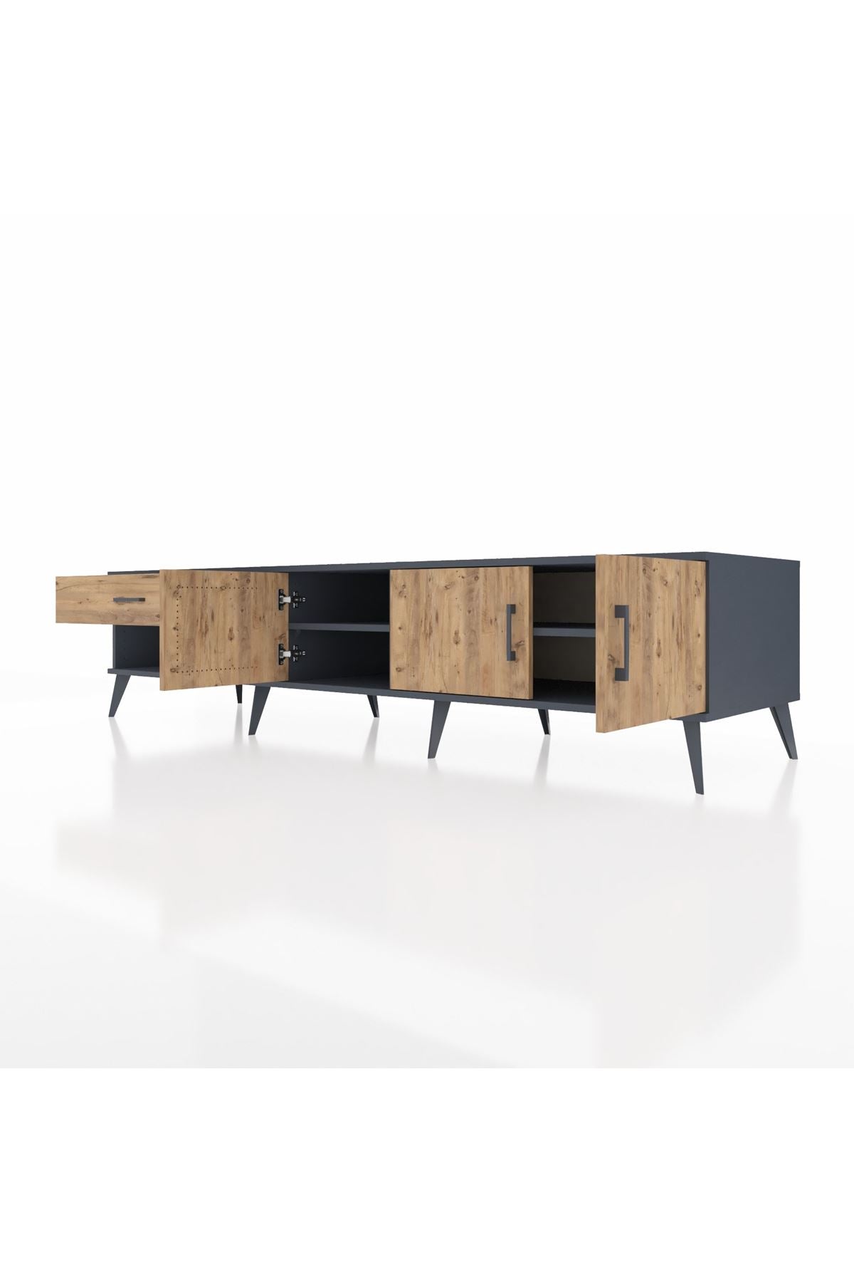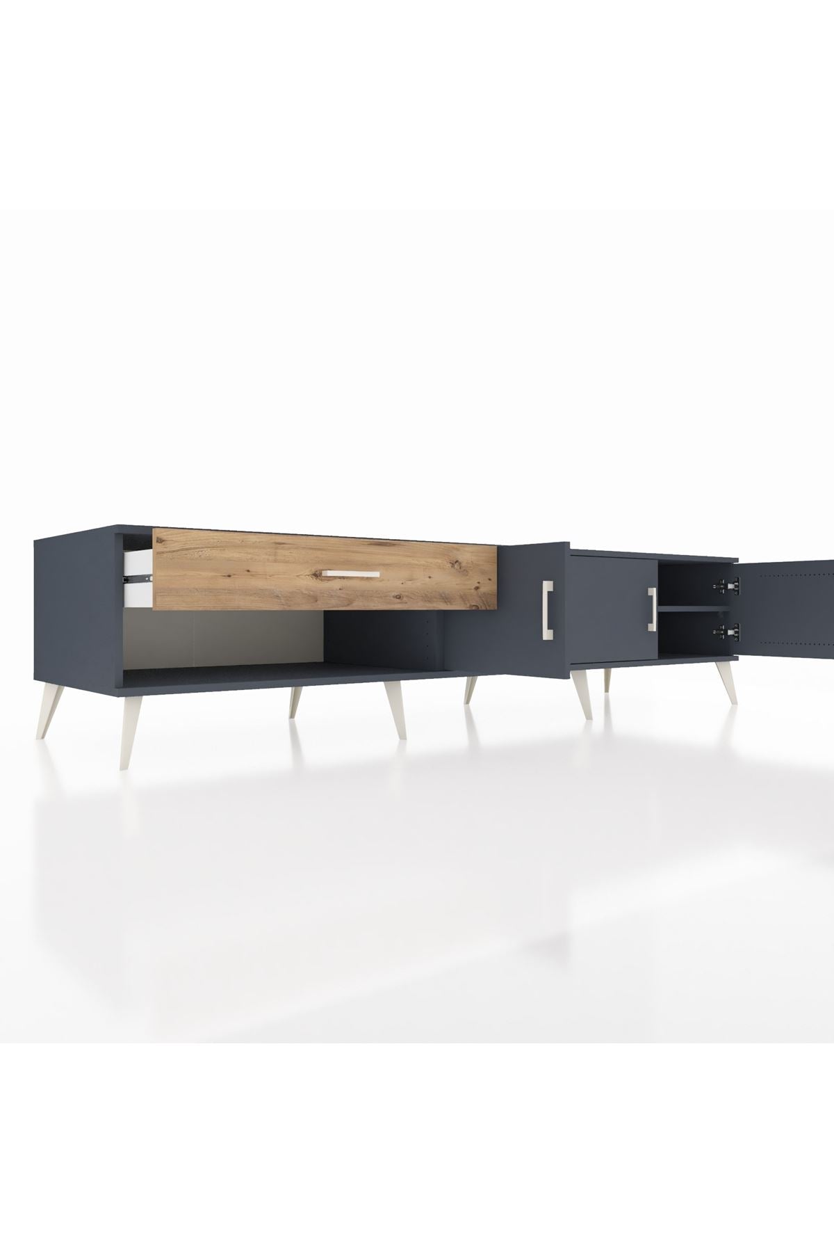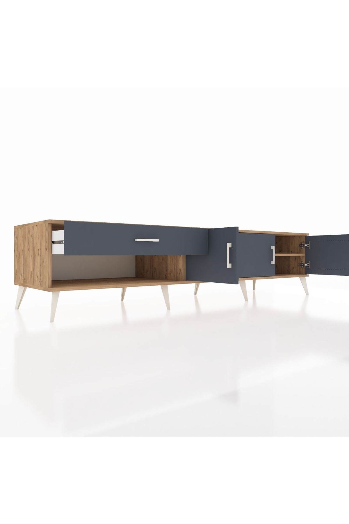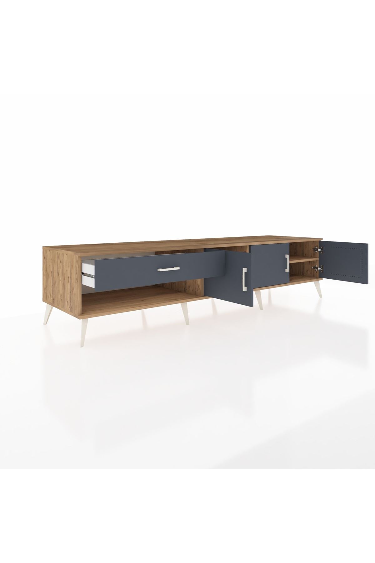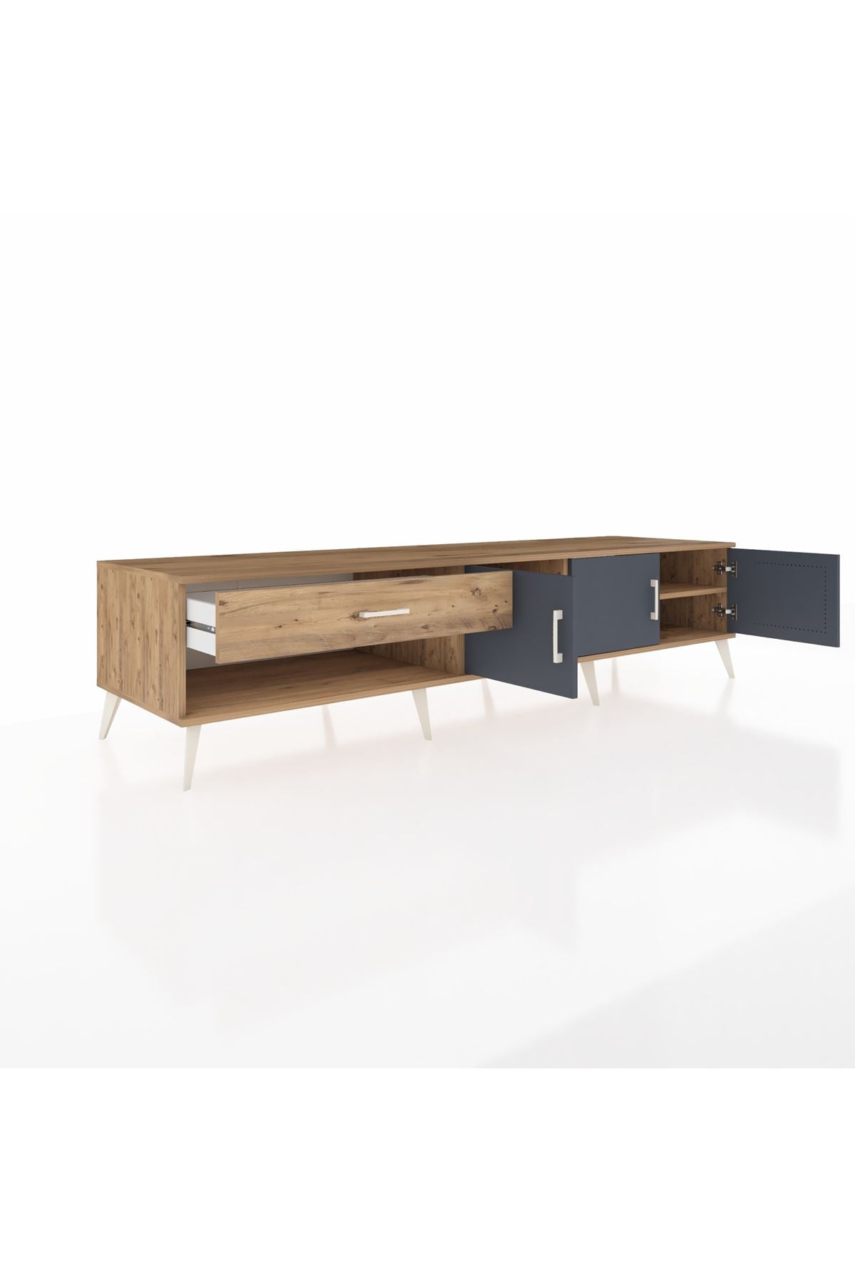 Kronos TV Ünitesi 2 Raflı Tek Çekmeceli 3 Kapaklı 220x59x51