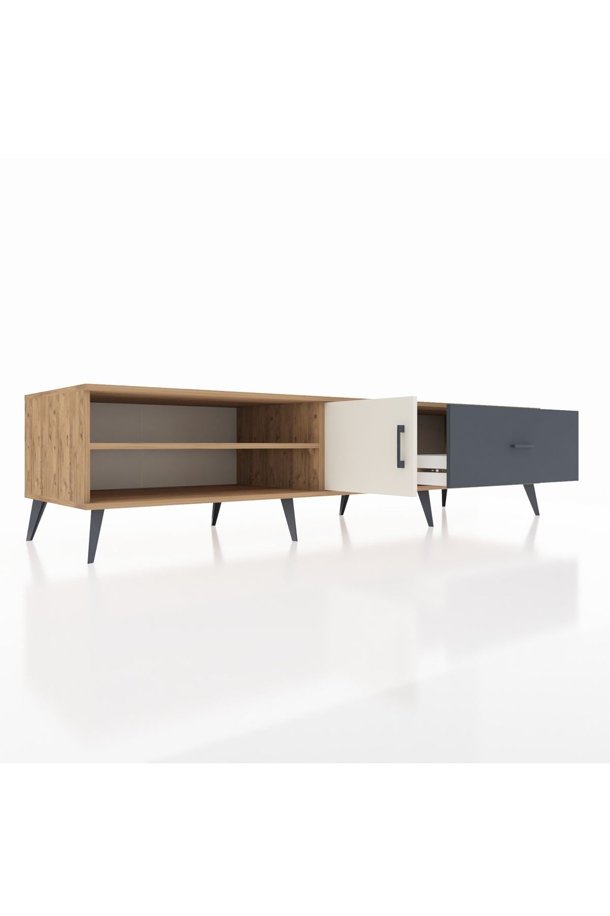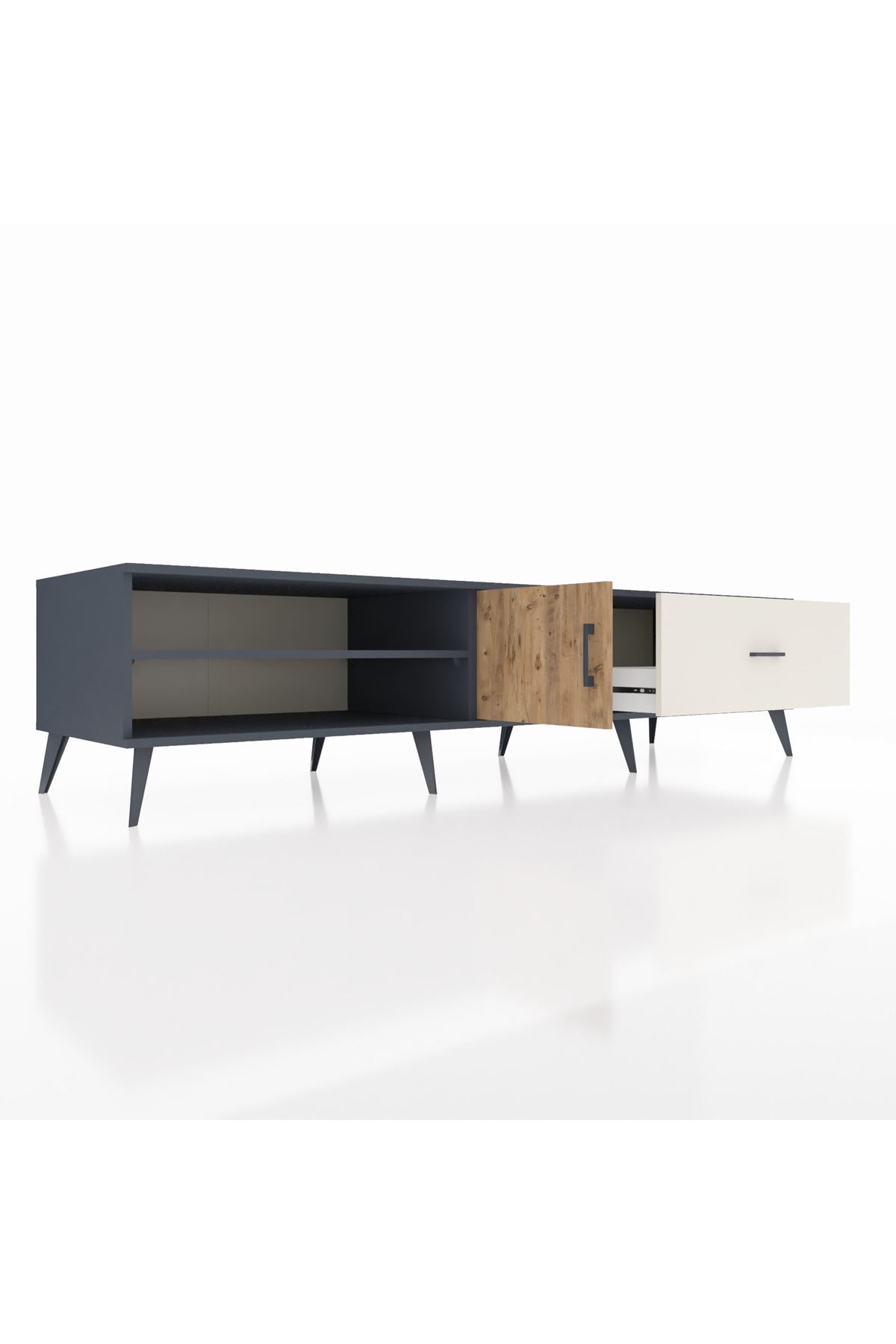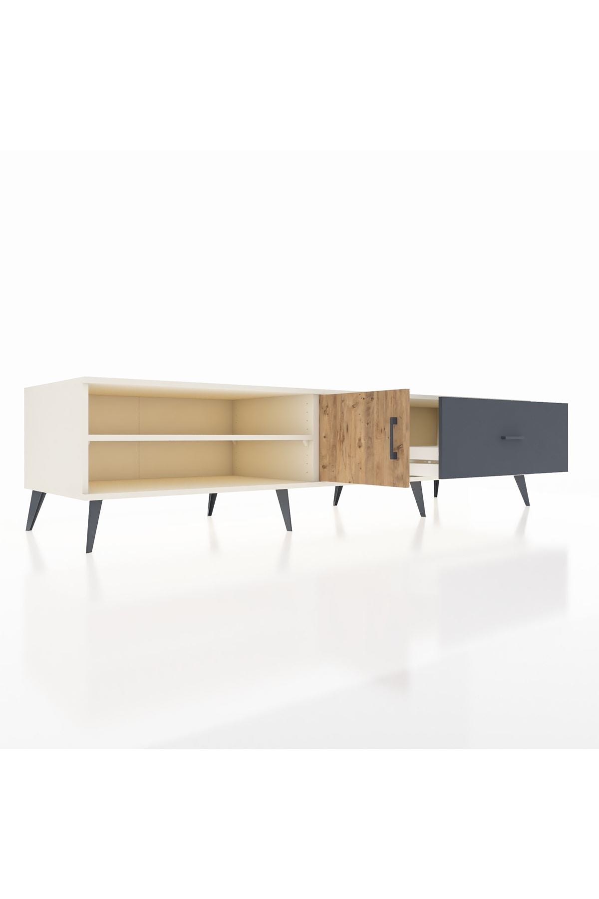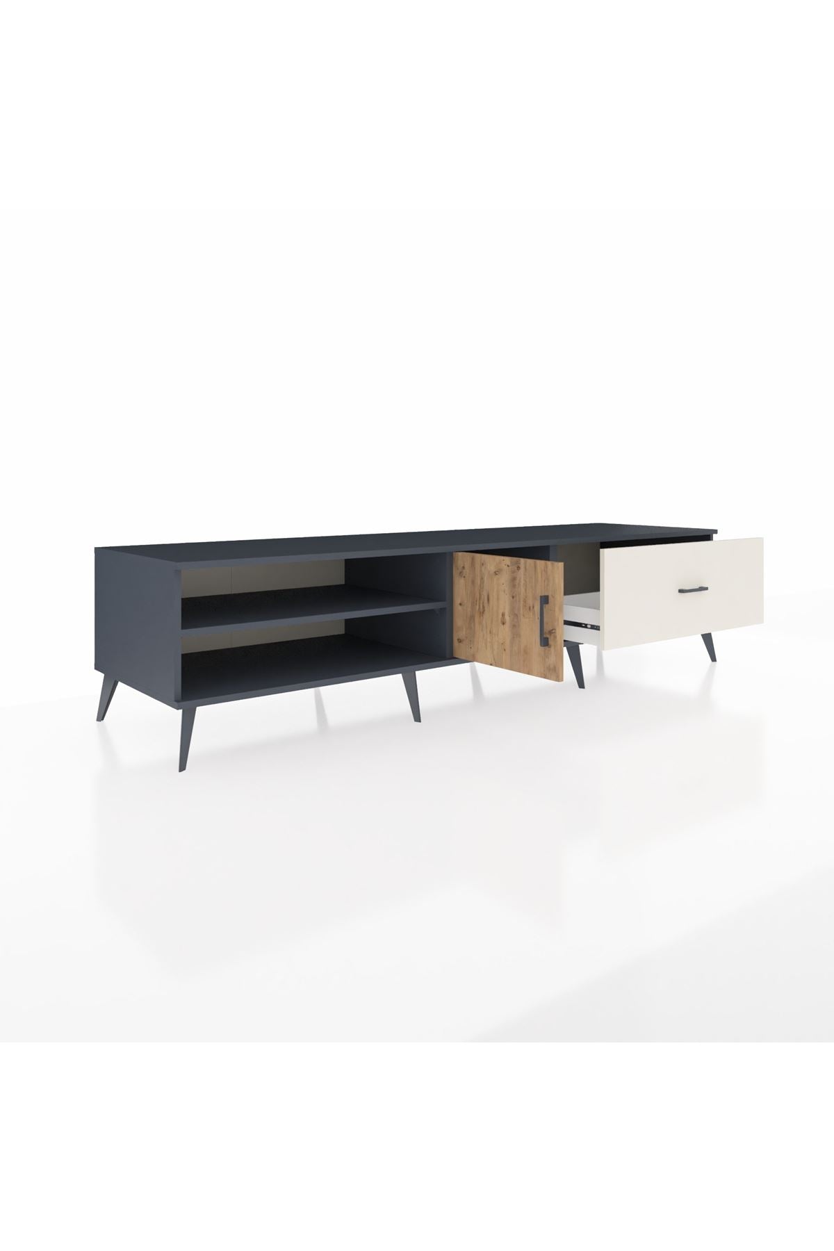 Kronos TV Ünitesi 2 Raflı Tek Çekmeceli Tek Kapaklı 220x59x51
