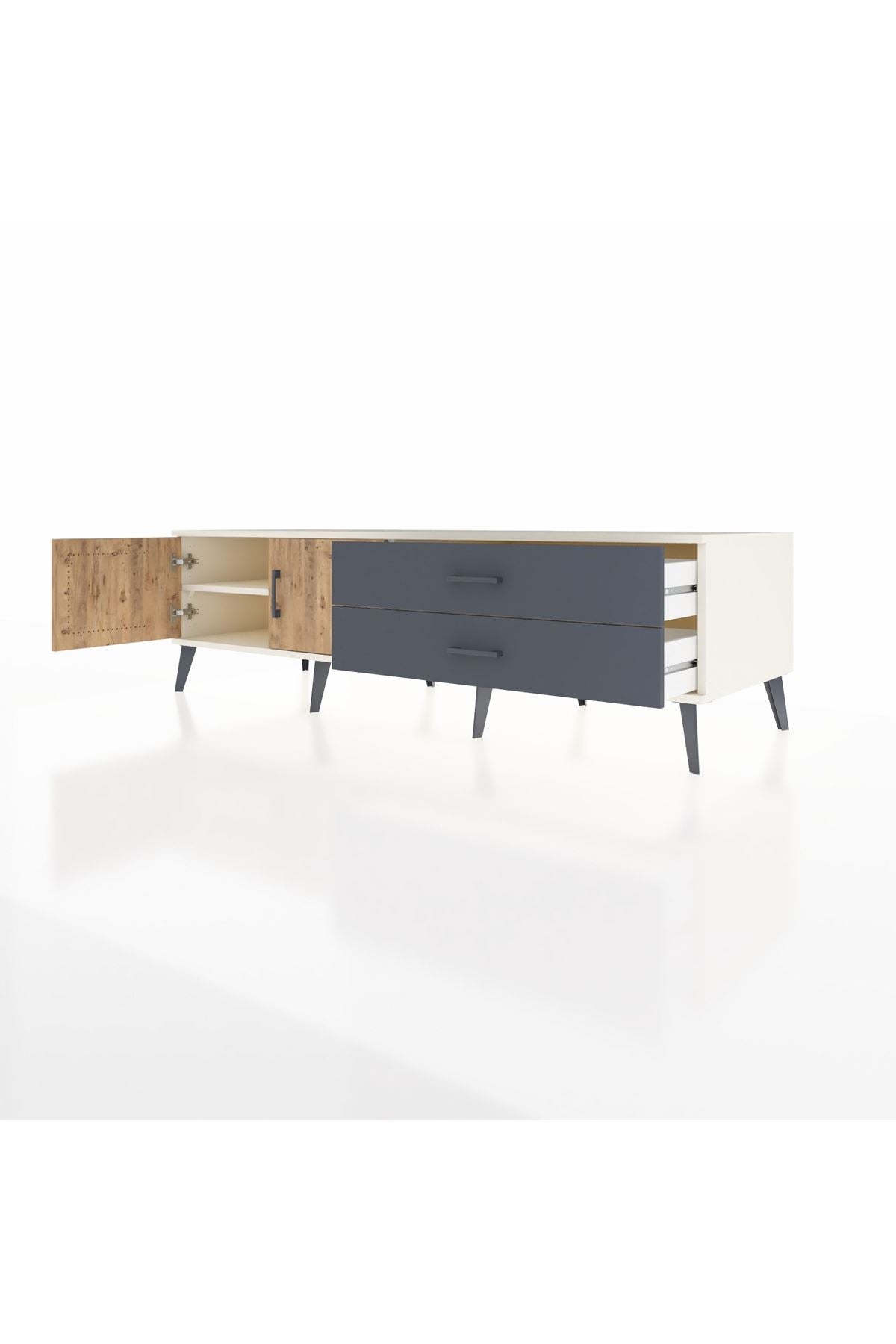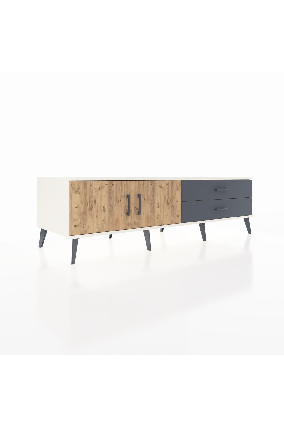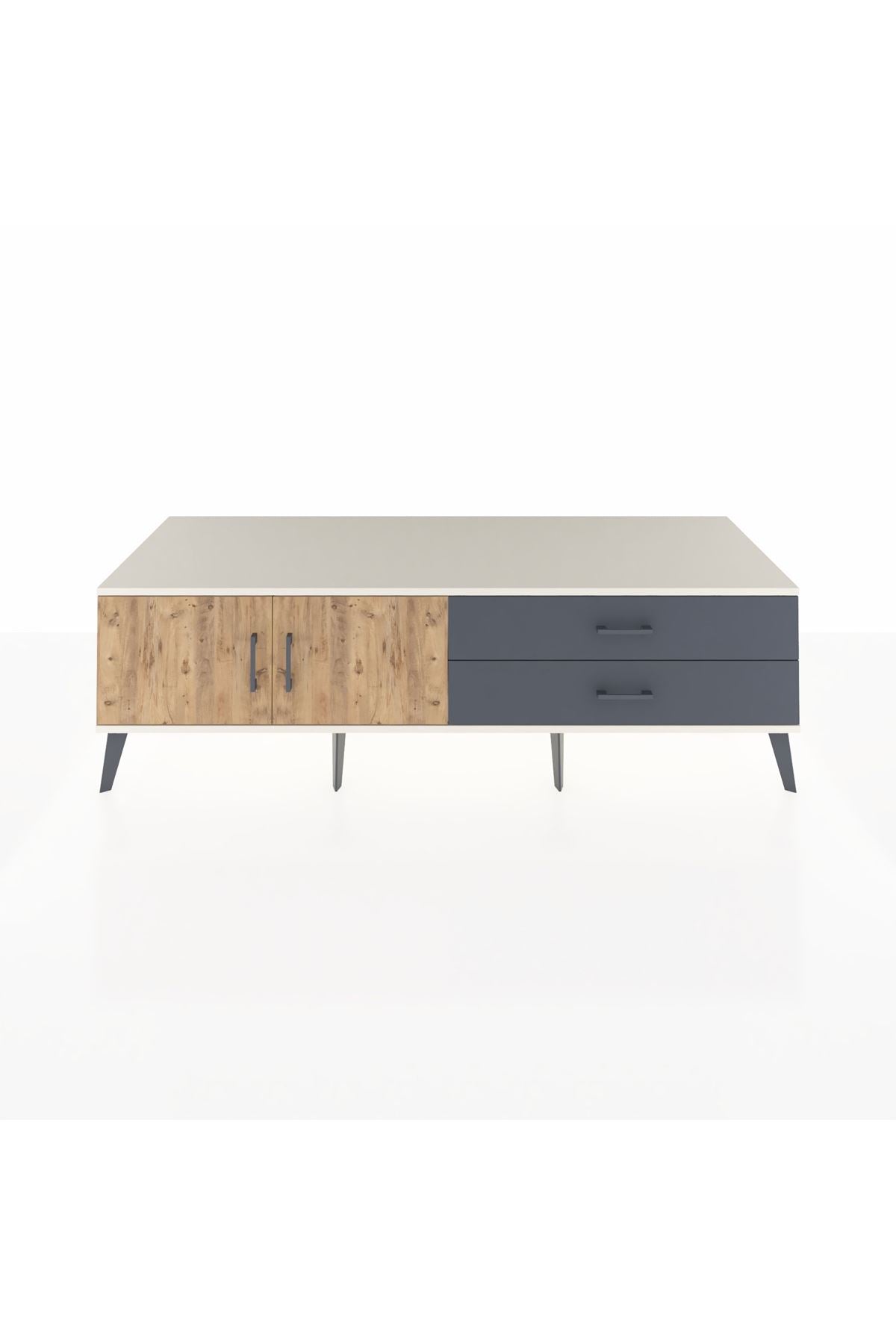 Kronos TV Ünitesi Tek Raflı 2 Çekmeceli 2 Kapaklı 176x59x51 Aytaşı-Çam/Antrasit