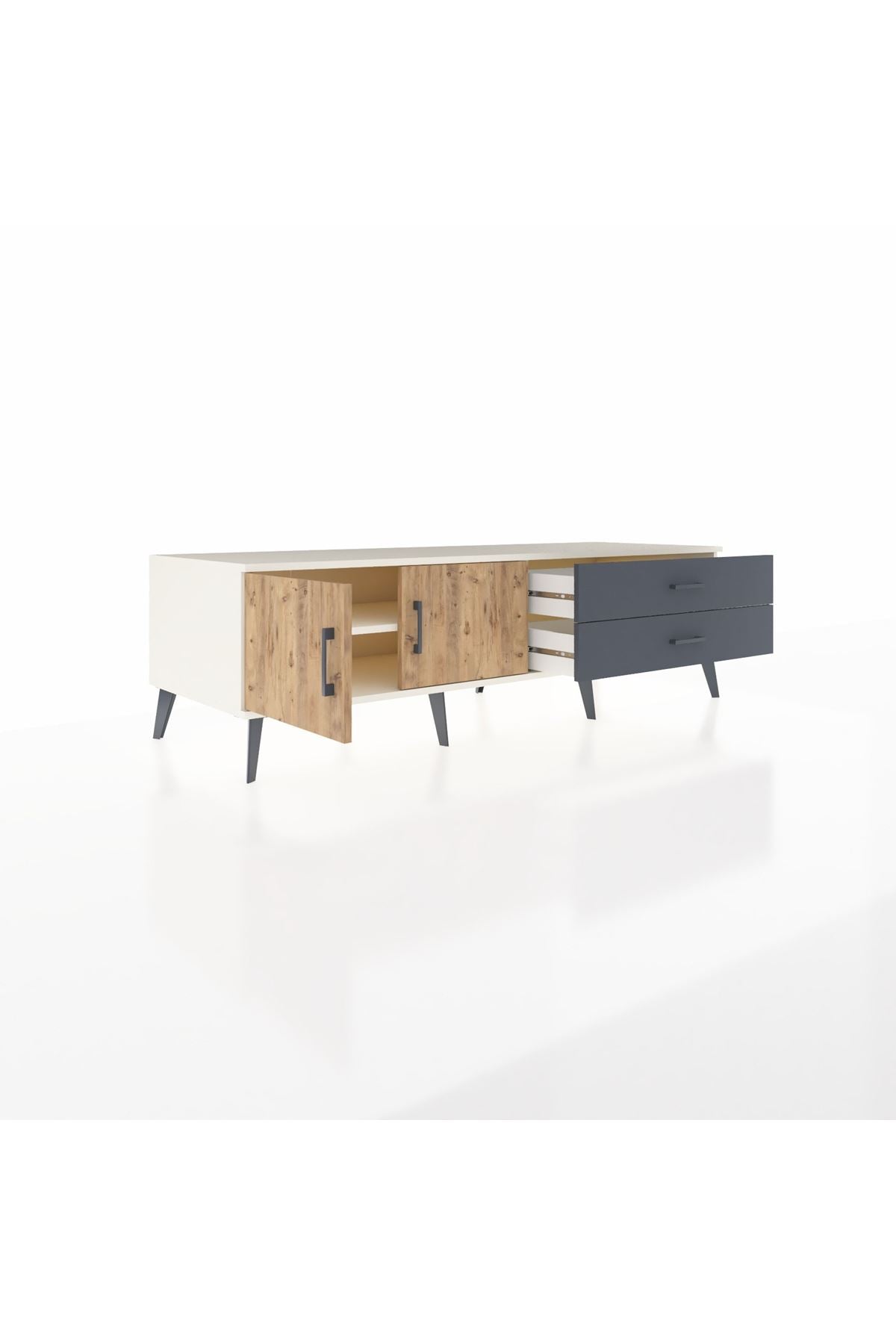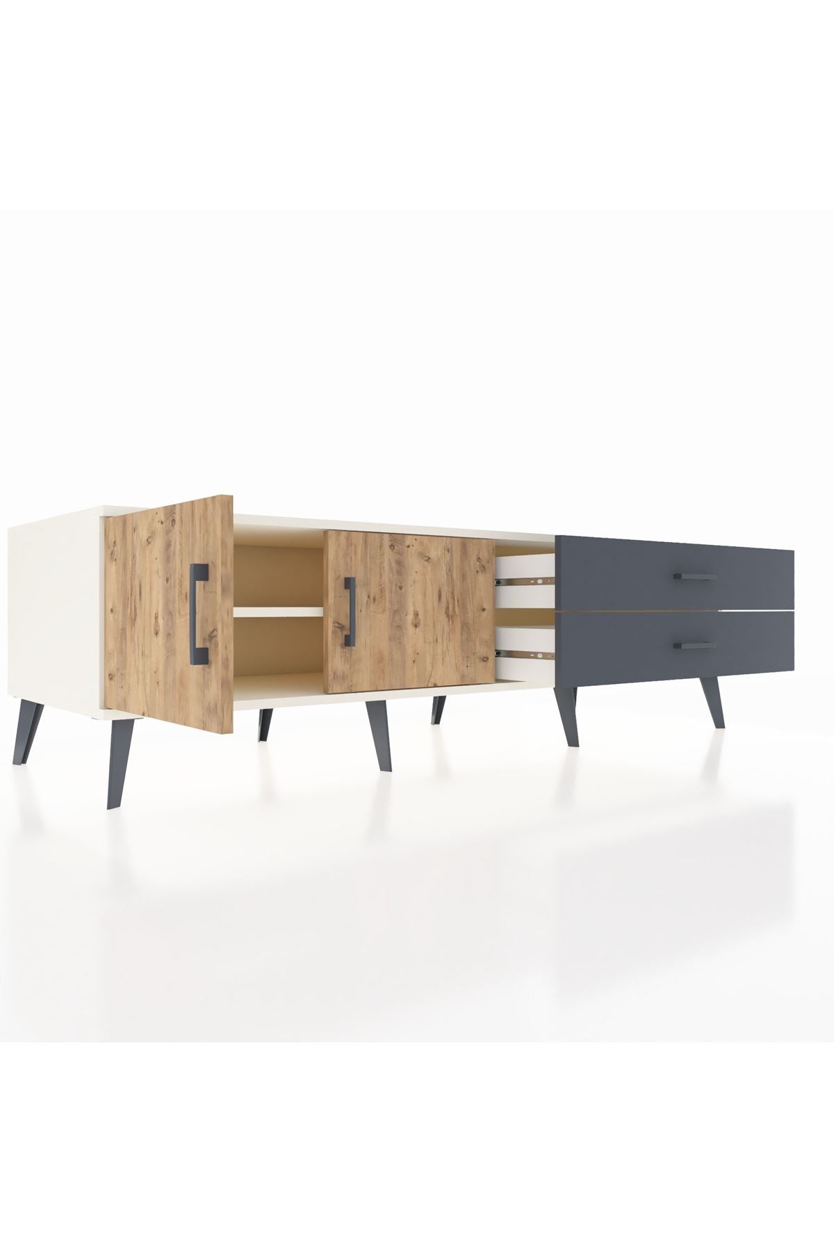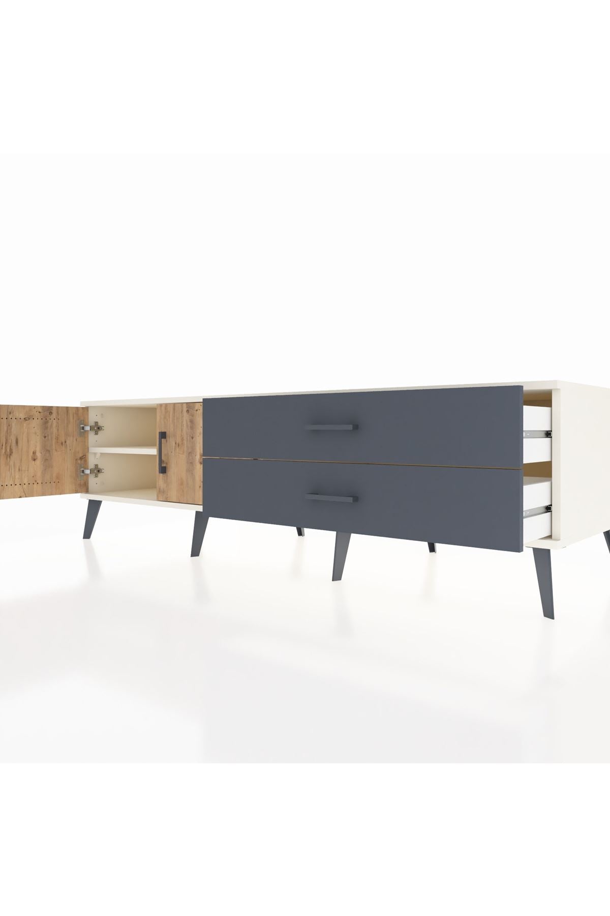 Kronos TV Ünitesi Tek Raflı 2 Çekmeceli 2 Kapaklı 176x59x51 Aytaşı-Çam/Antrasit