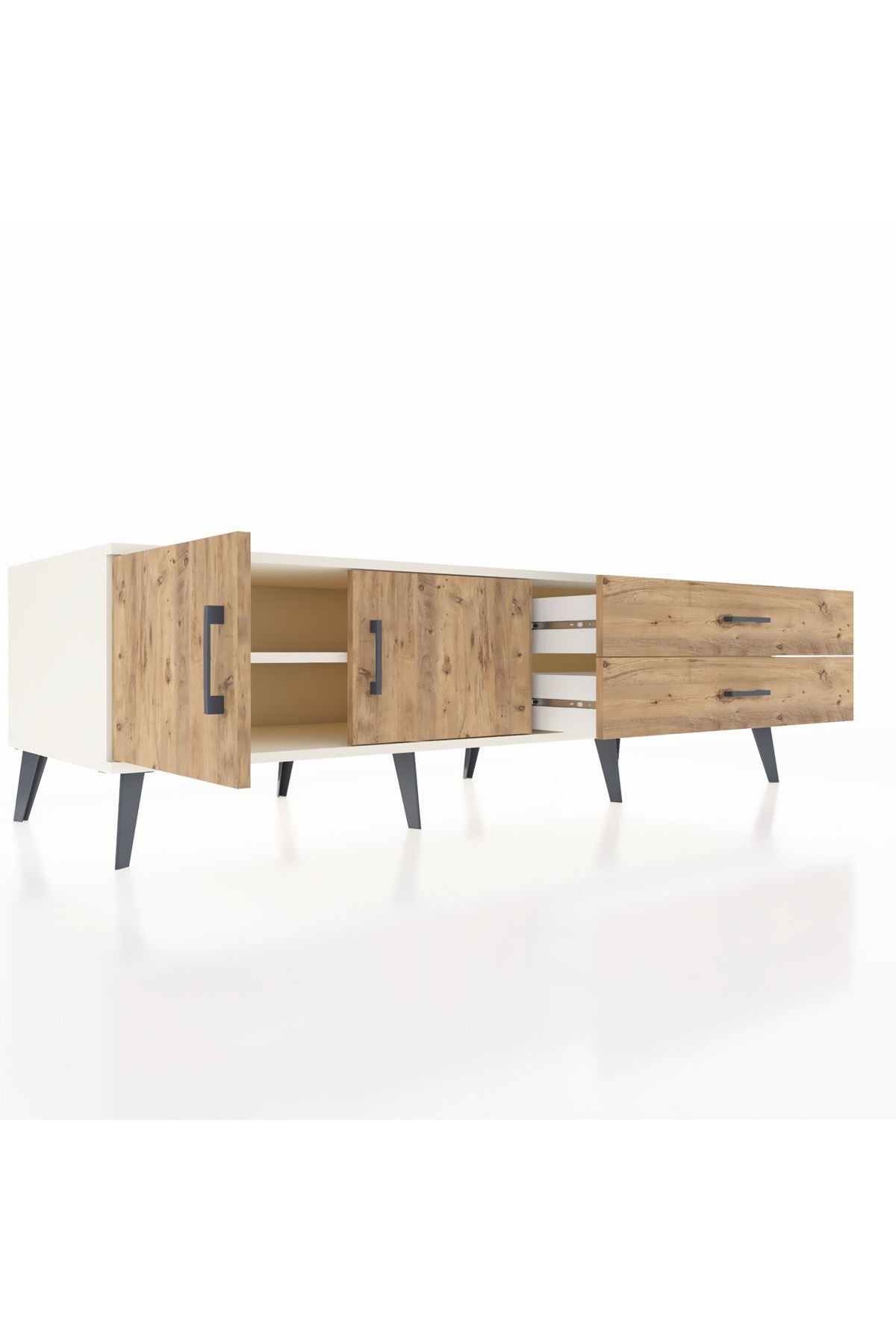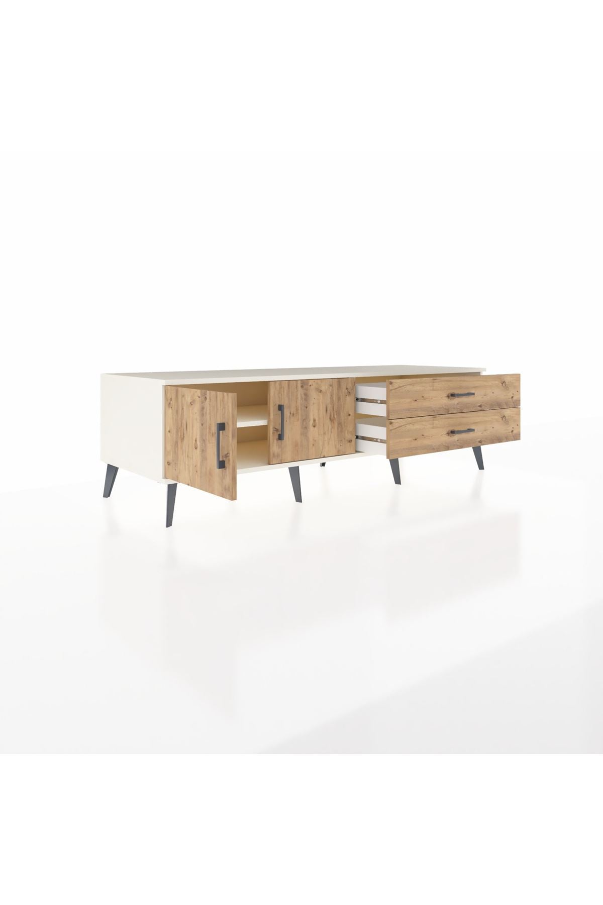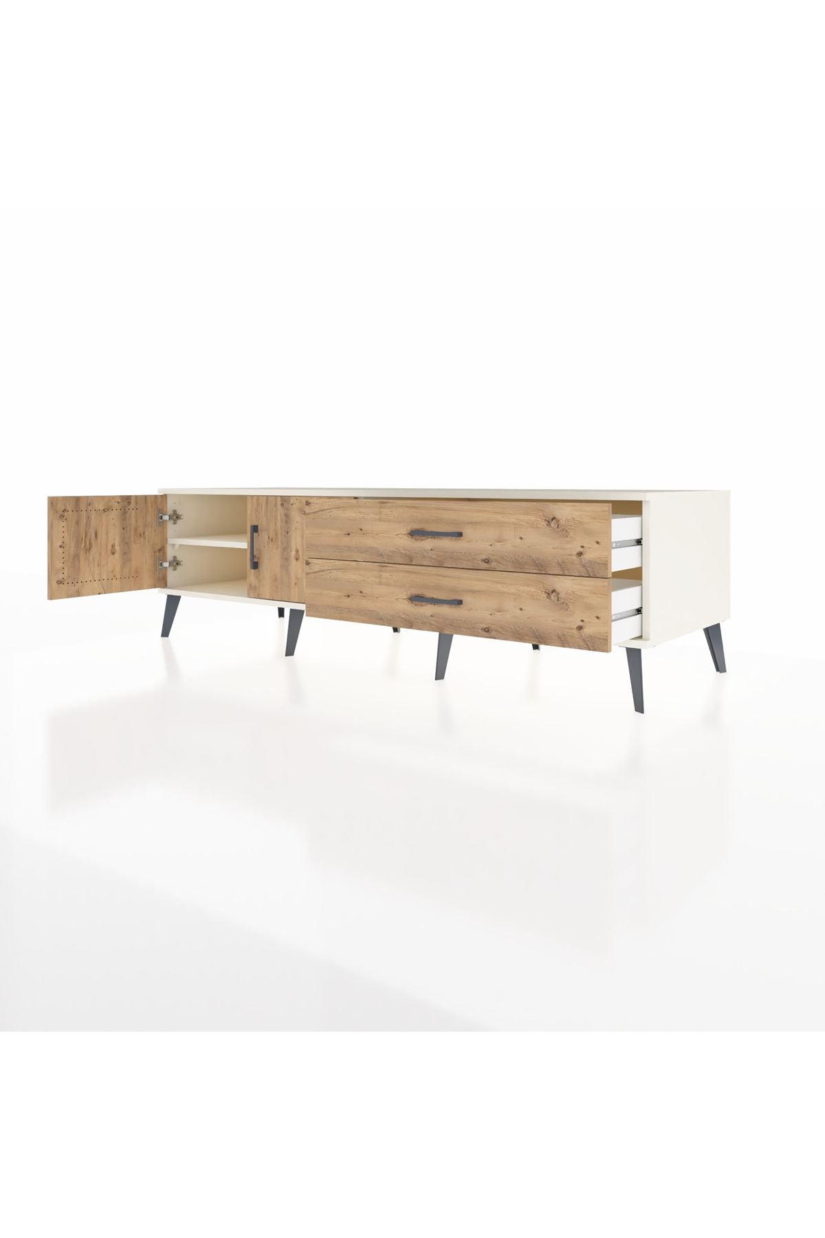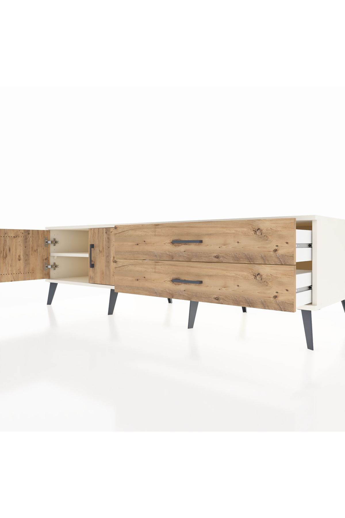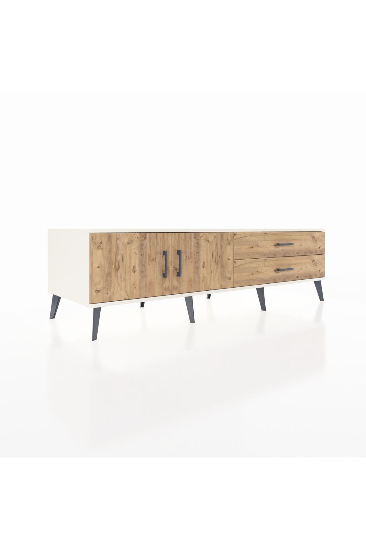 Kronos TV Ünitesi Tek Raflı 2 Çekmeceli 2 Kapaklı 176x59x51 Aytaşı-Çam/Çam