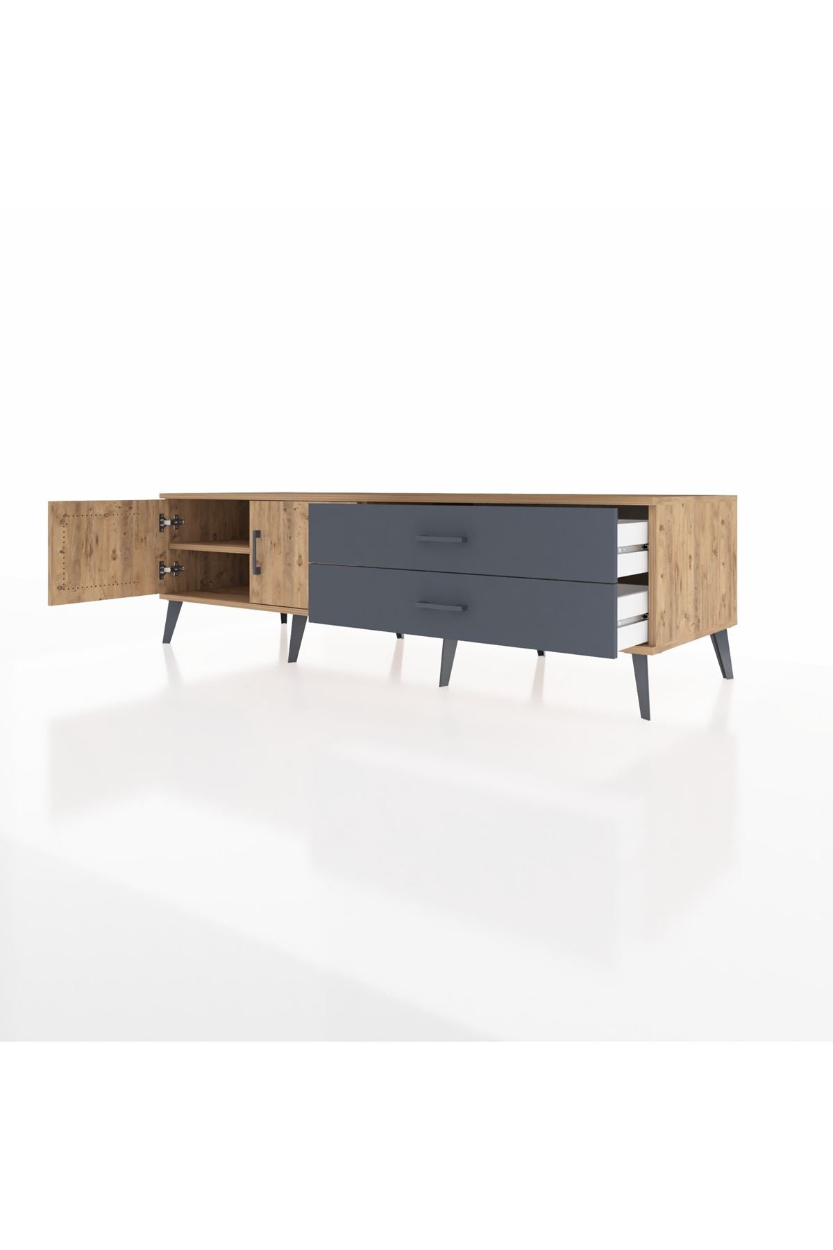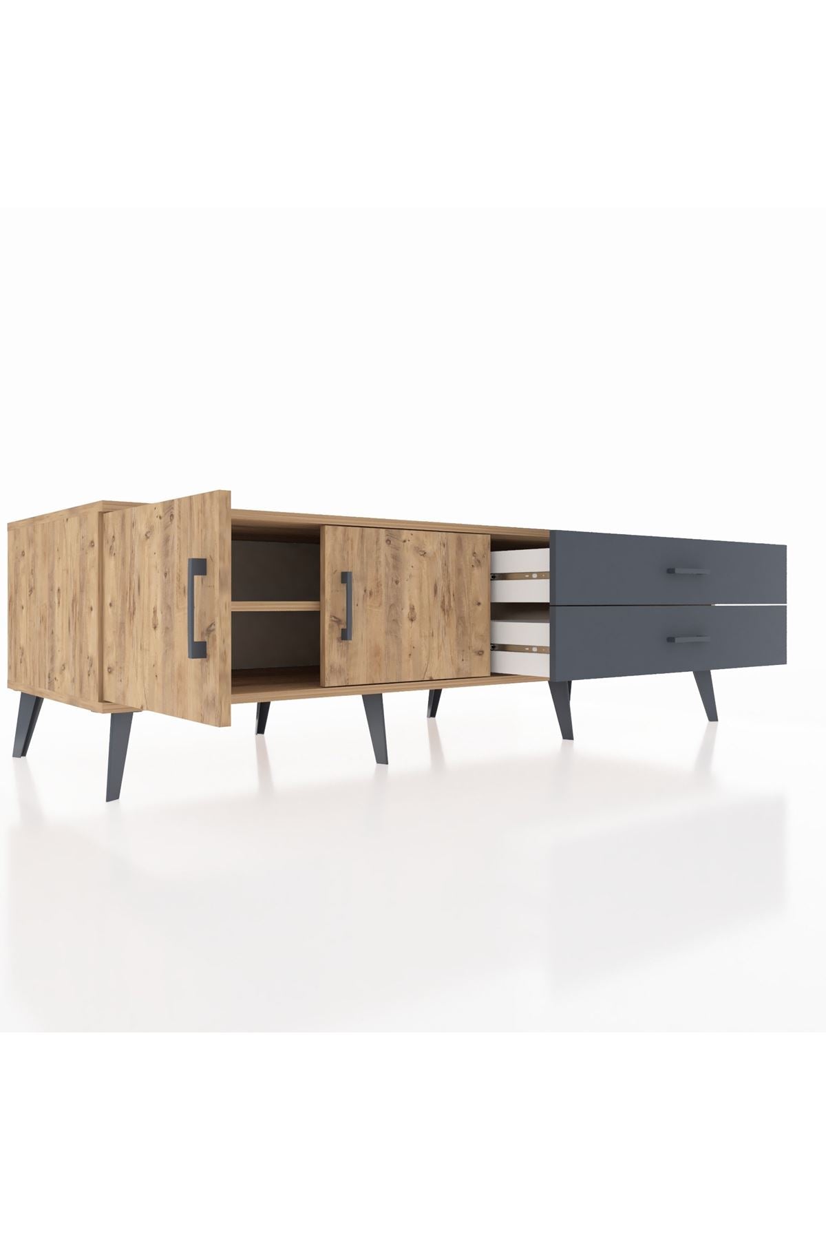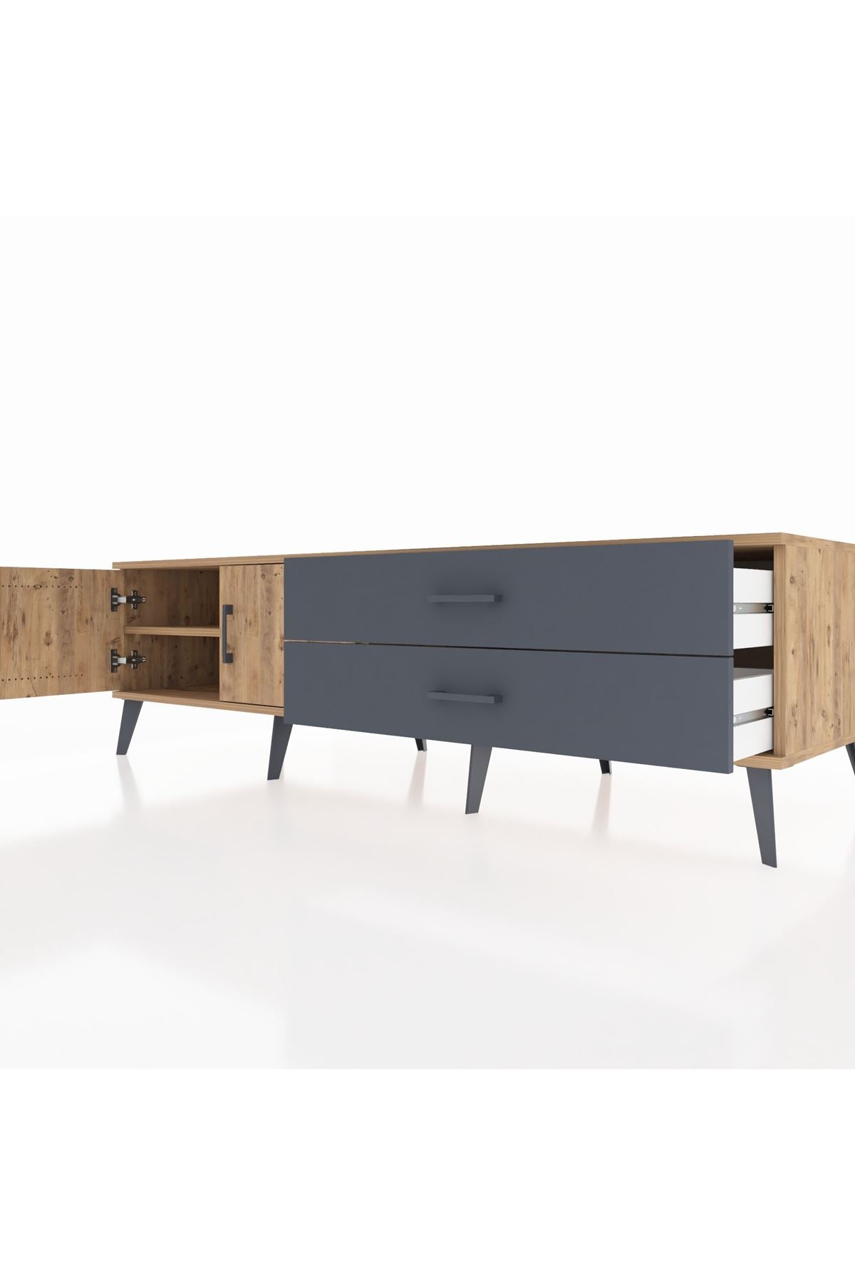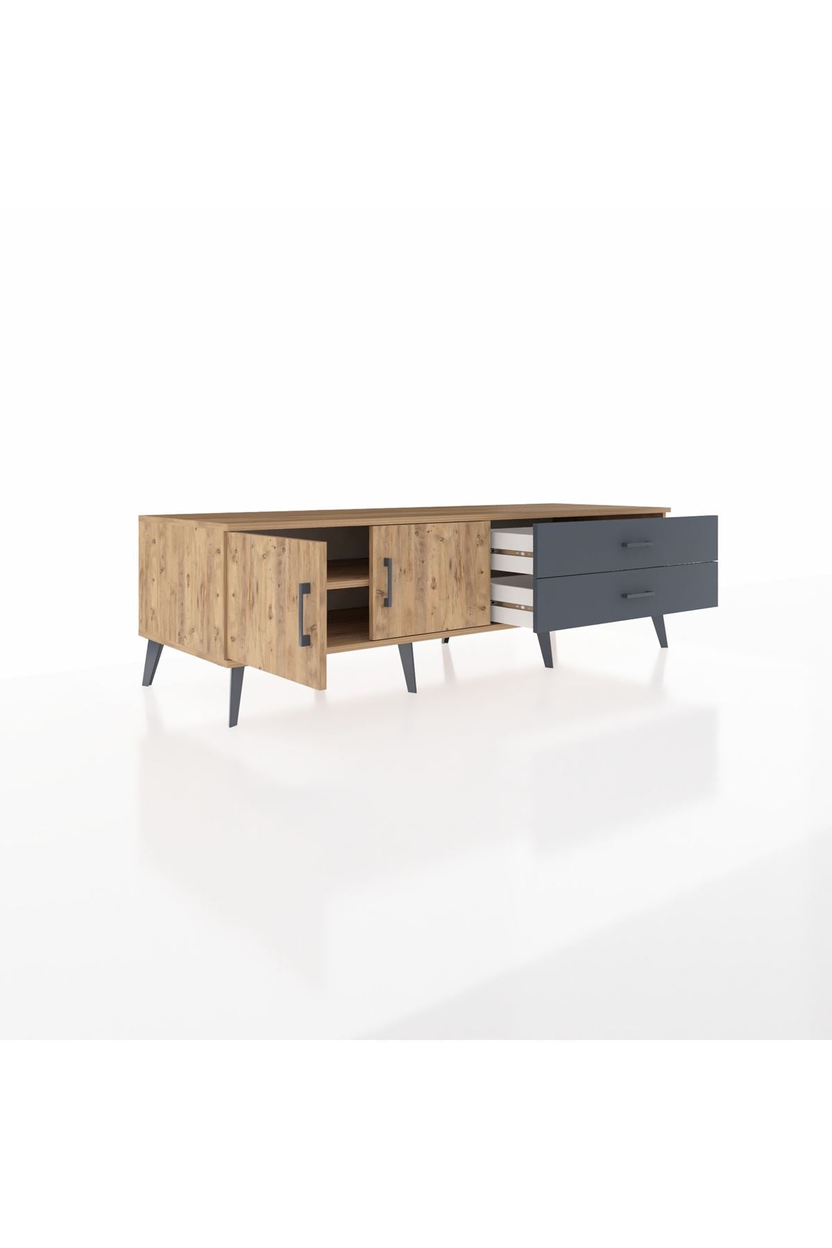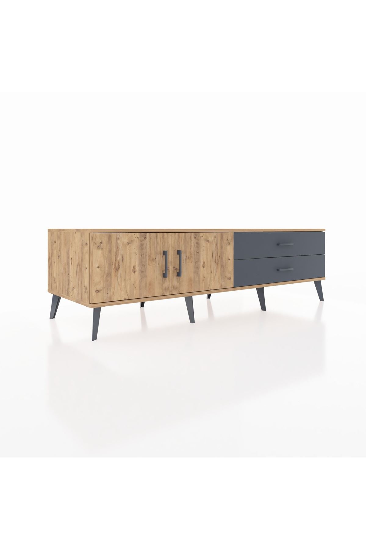 Kronos TV Ünitesi Tek Raflı 2 Çekmeceli 2 Kapaklı 176x59x51 Çam-Çam/Antrasit