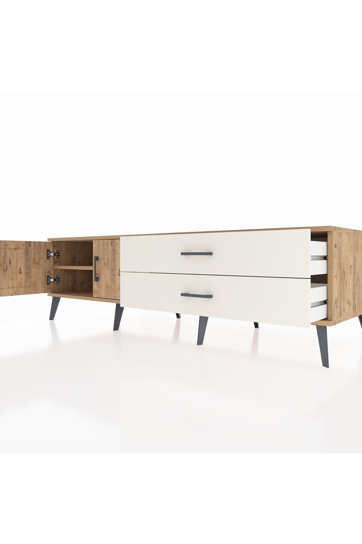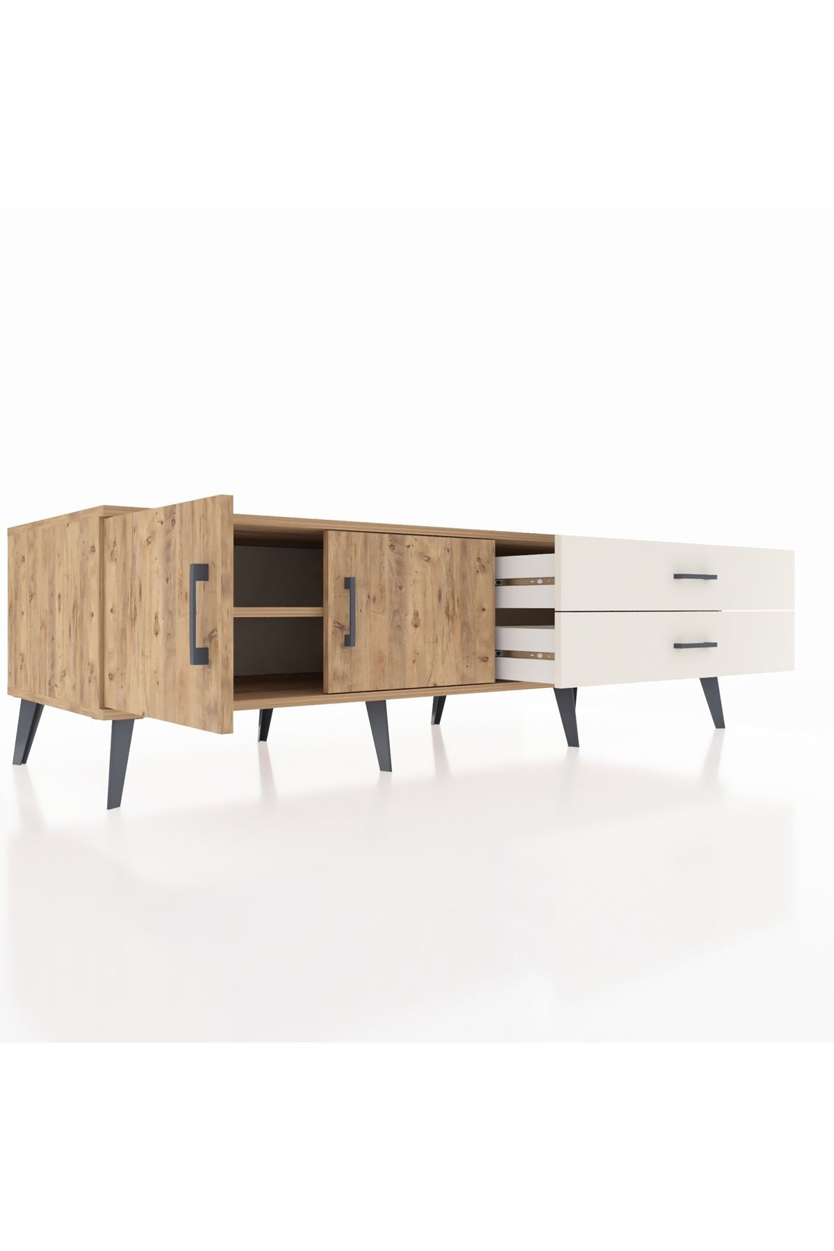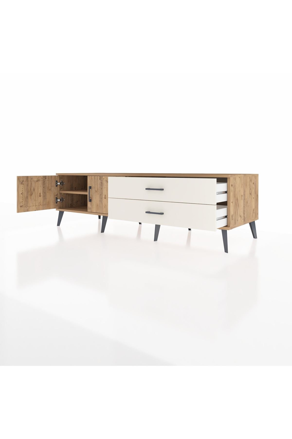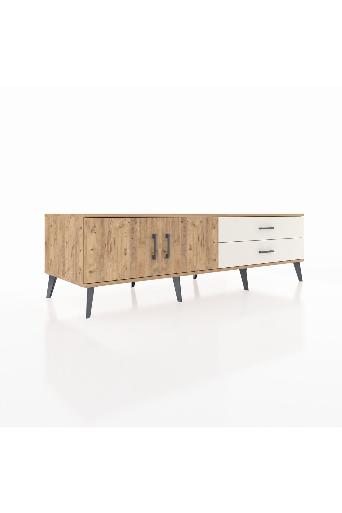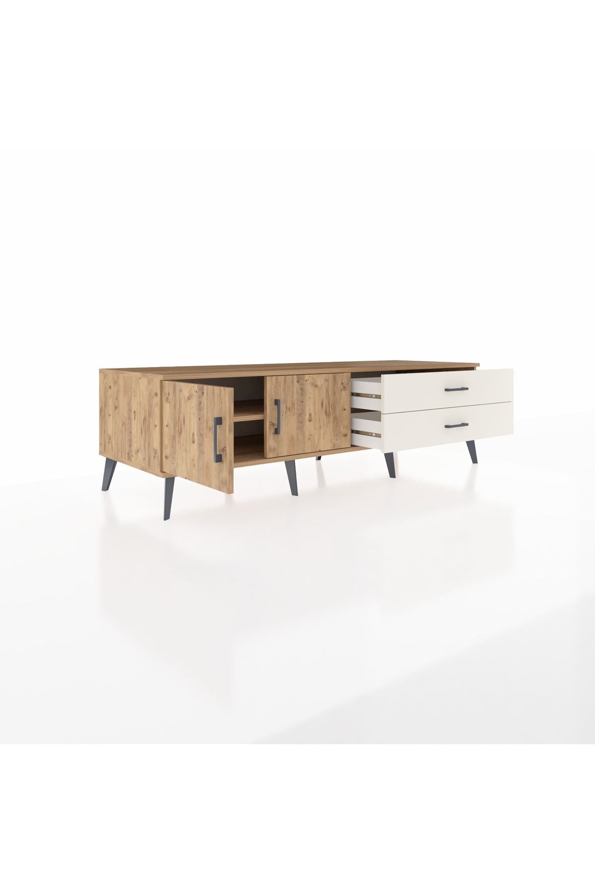 Kronos TV Ünitesi Tek Raflı 2 Çekmeceli 2 Kapaklı 176x59x51 Çam-Çam/Aytaşı