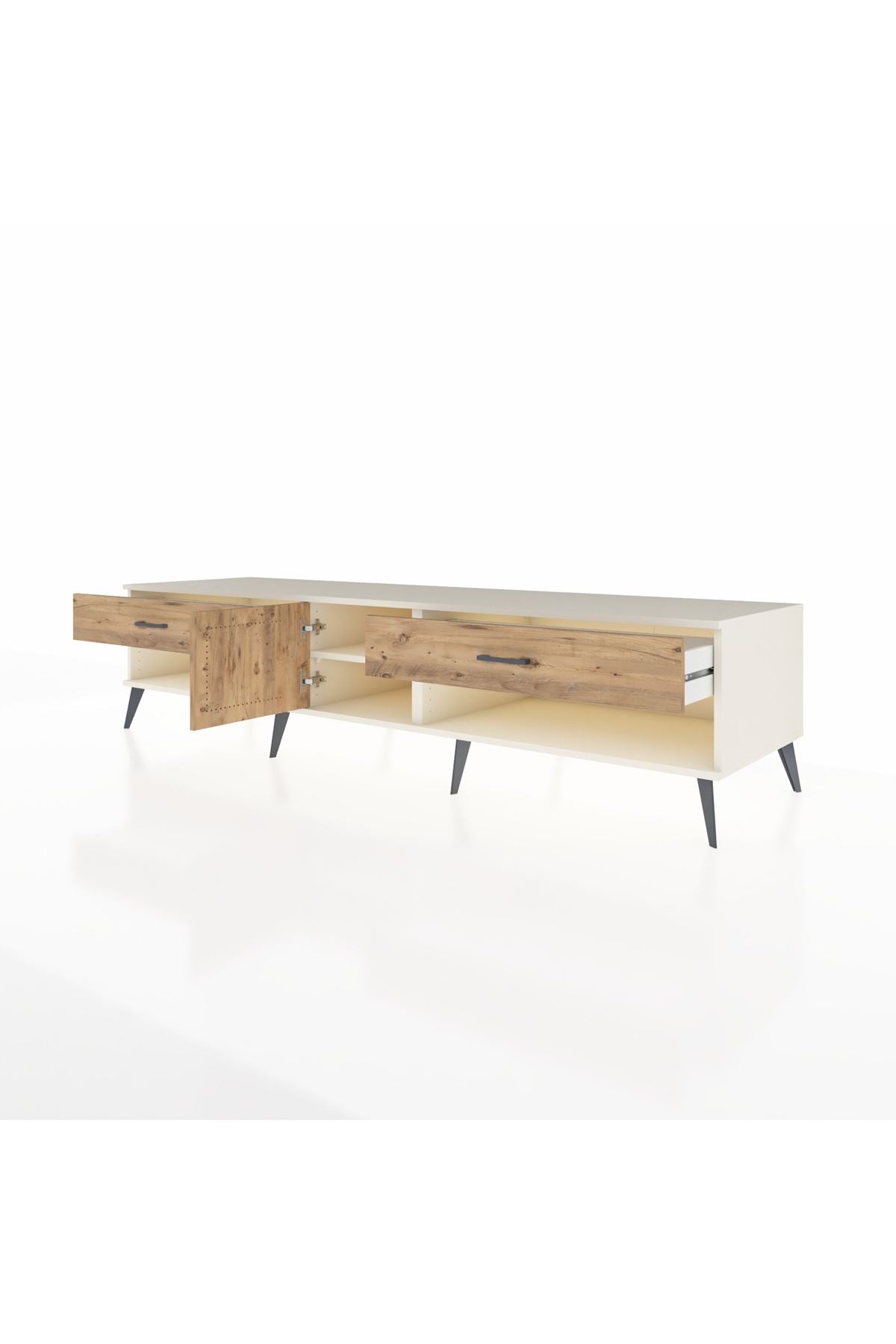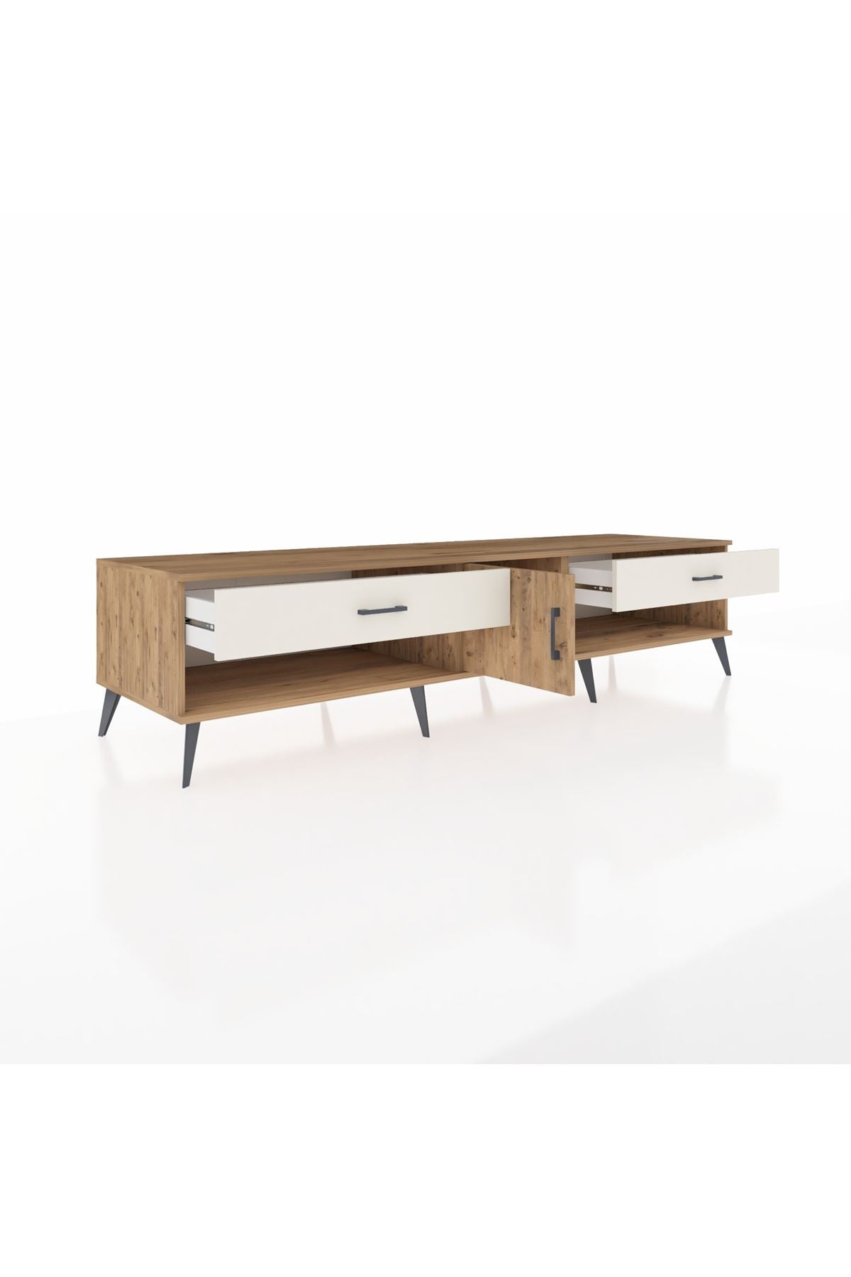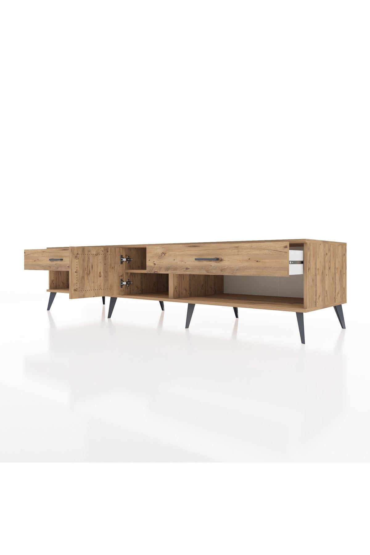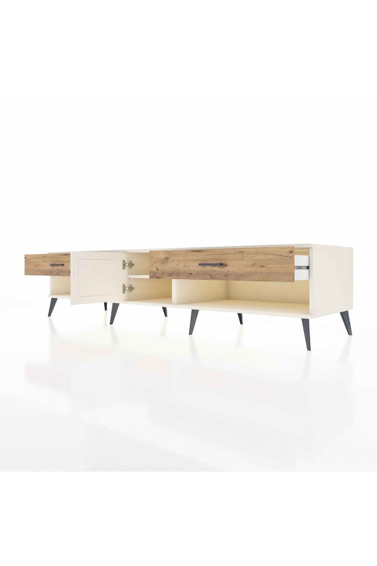 🦾 Metal ayaklar ve metal kulplar, ünitenin modern tasarımını tamamlayarak hem şıklık katıyor hem de sağlamlık sunuyor. Metal detaylar, Kronos TV Ünitesi'nin zamana meydan okuyan bir parça olmasını sağlıyor.