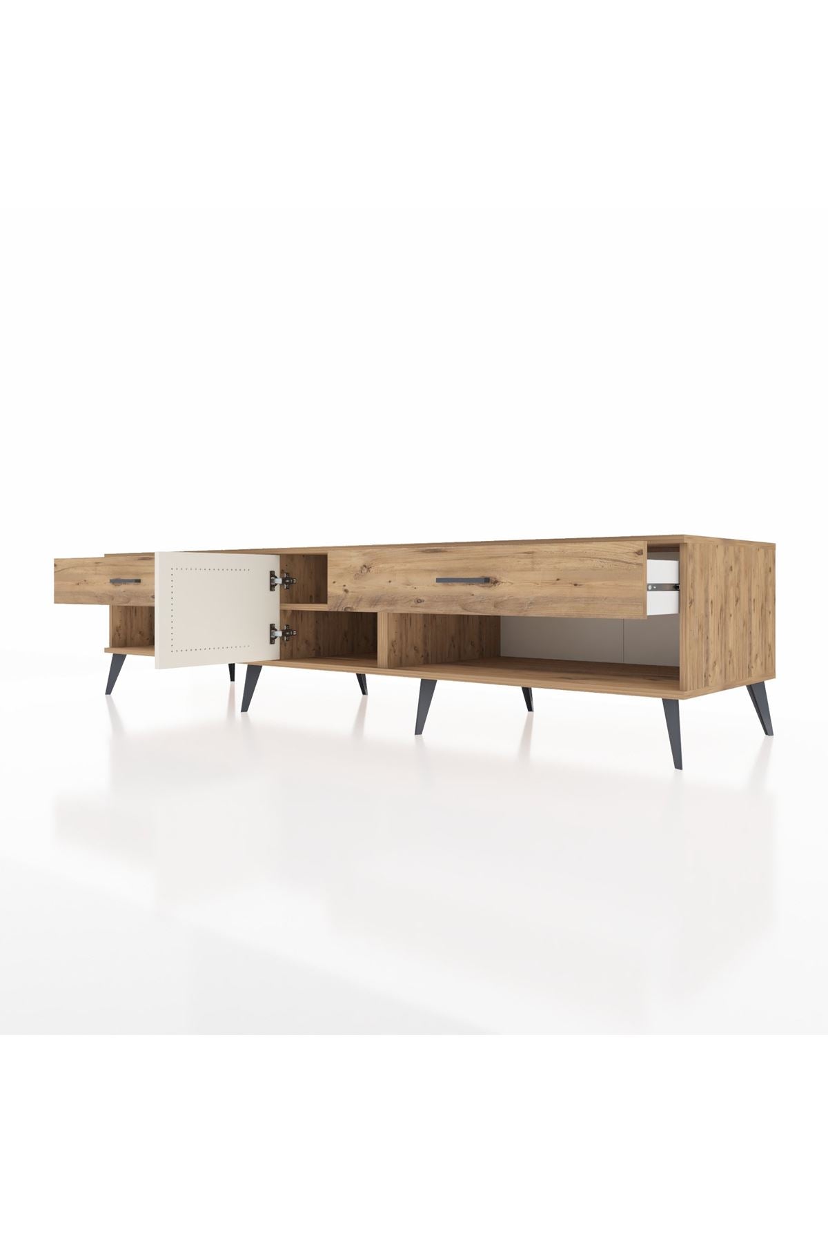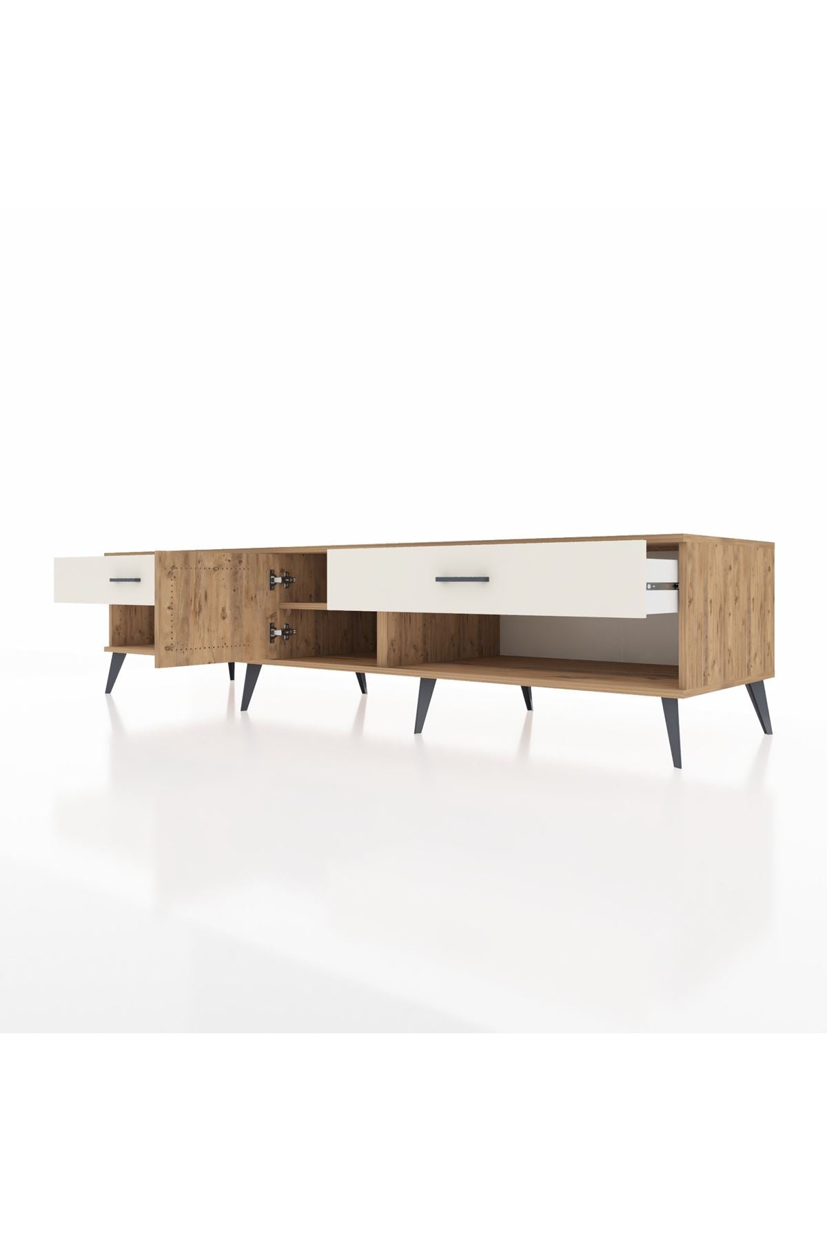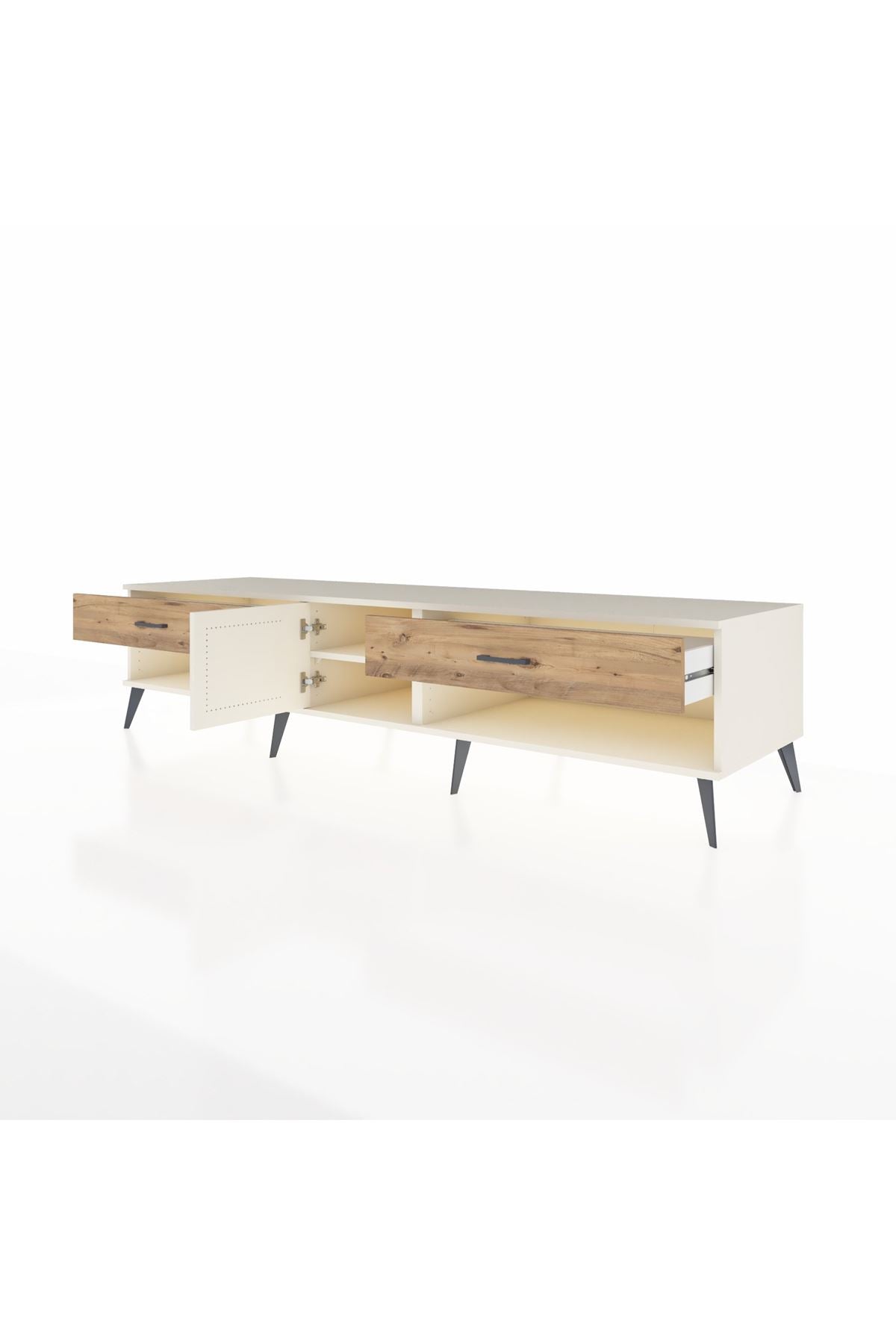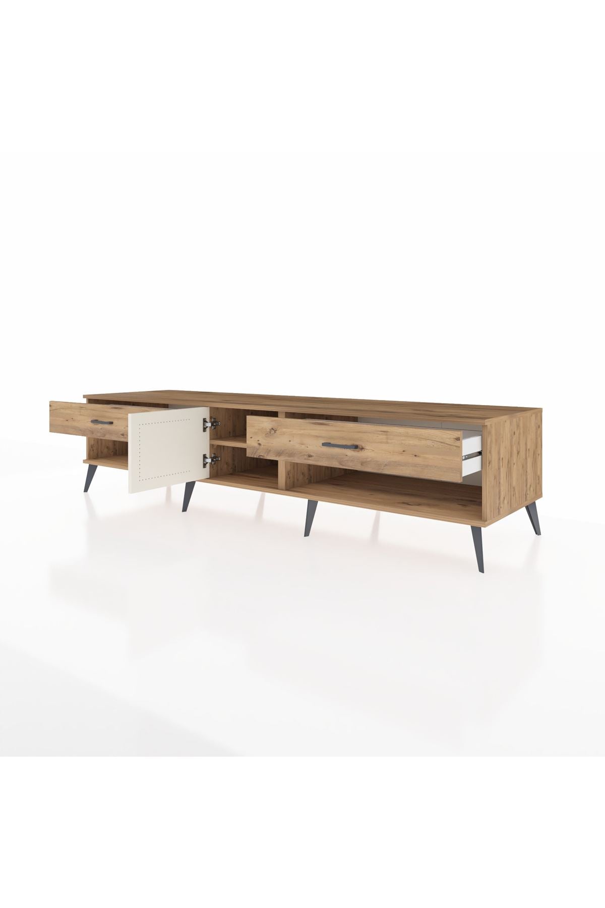 🦾 Metal ayaklar ve metal kulplar, ünitenin modern tasarımını tamamlayarak hem şıklık katıyor hem de sağlamlık sunuyor. Metal detaylar, Kronos TV Ünitesi'nin zamana meydan okuyan bir parça olmasını sağlıyor.