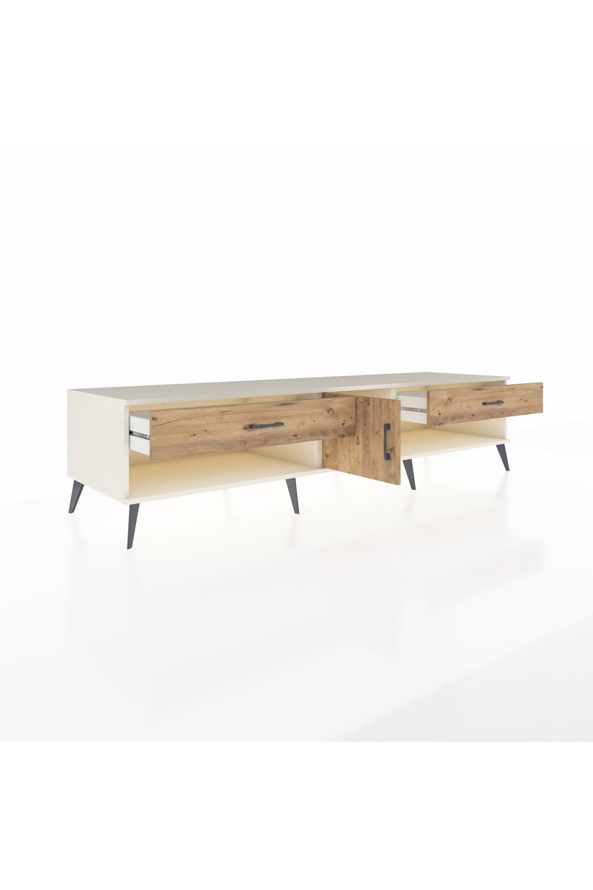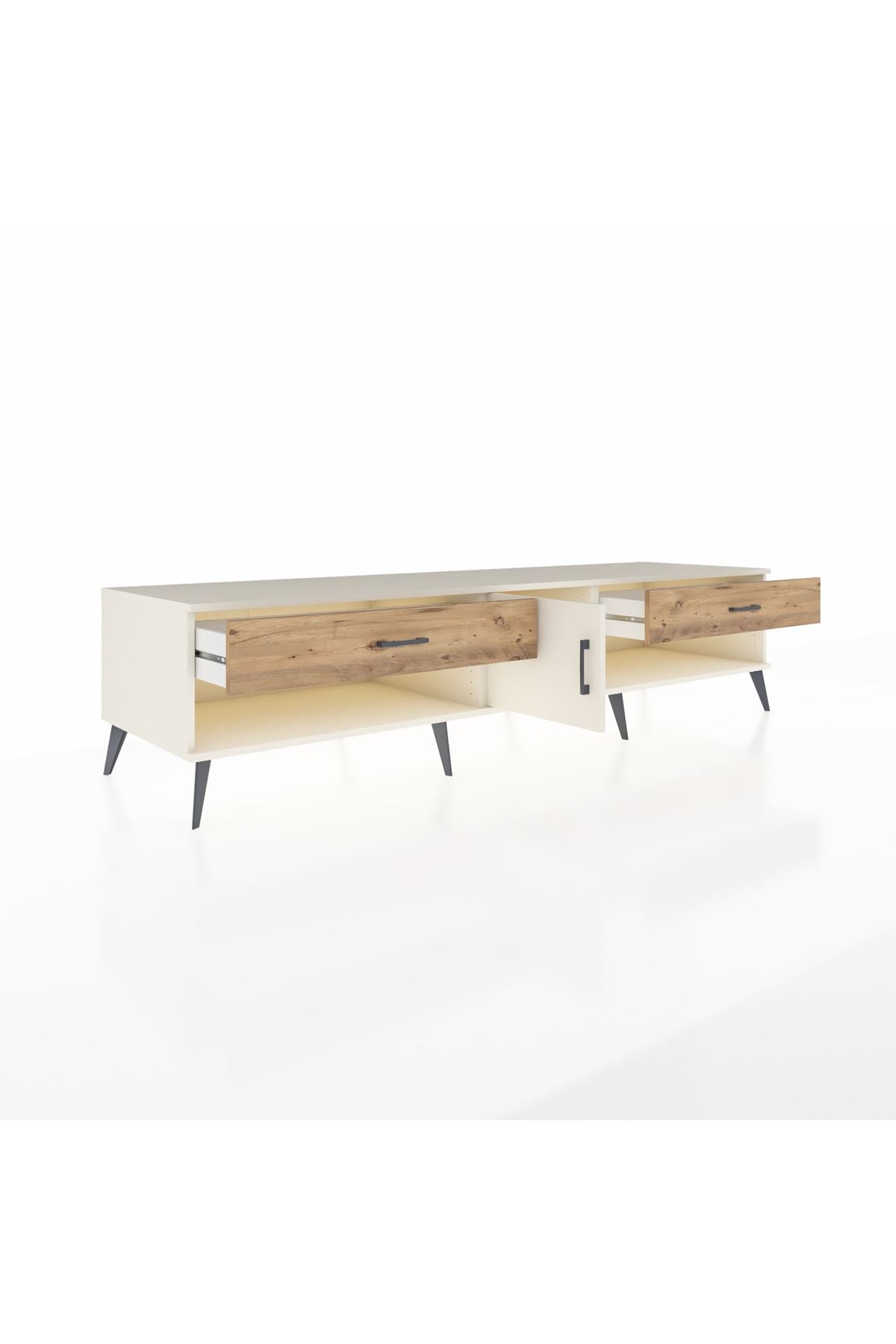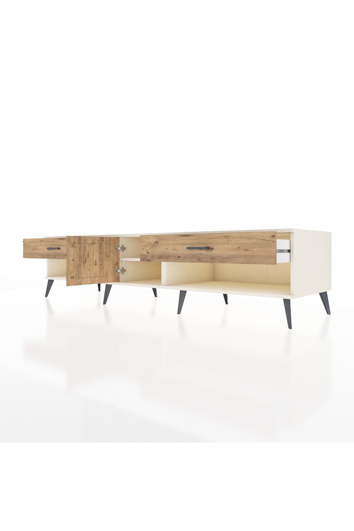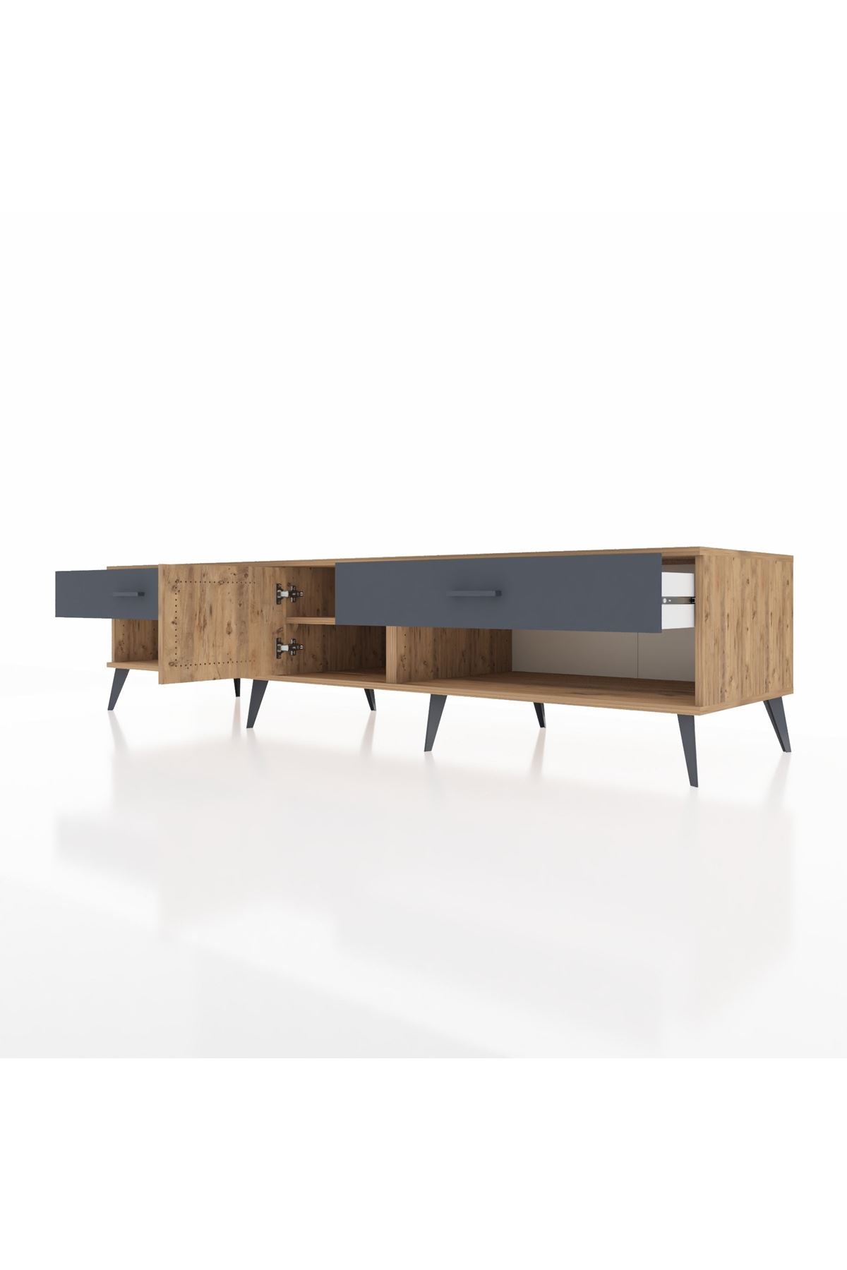 🦾 Metal ayaklar ve metal kulplar, ünitenin modern tasarımını tamamlayarak hem şıklık katıyor hem de sağlamlık sunuyor. Metal detaylar, Kronos TV Ünitesi'nin zamana meydan okuyan bir parça olmasını sağlıyor.