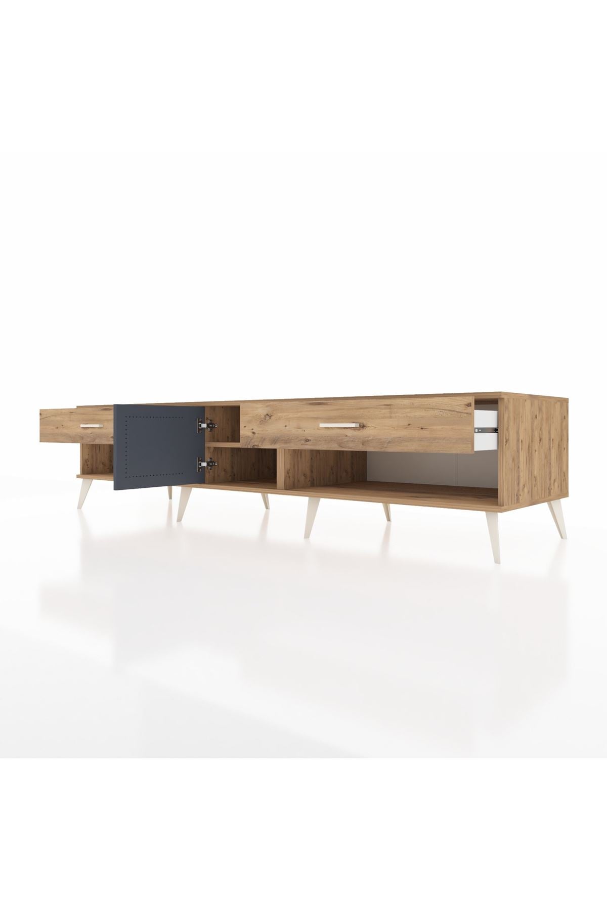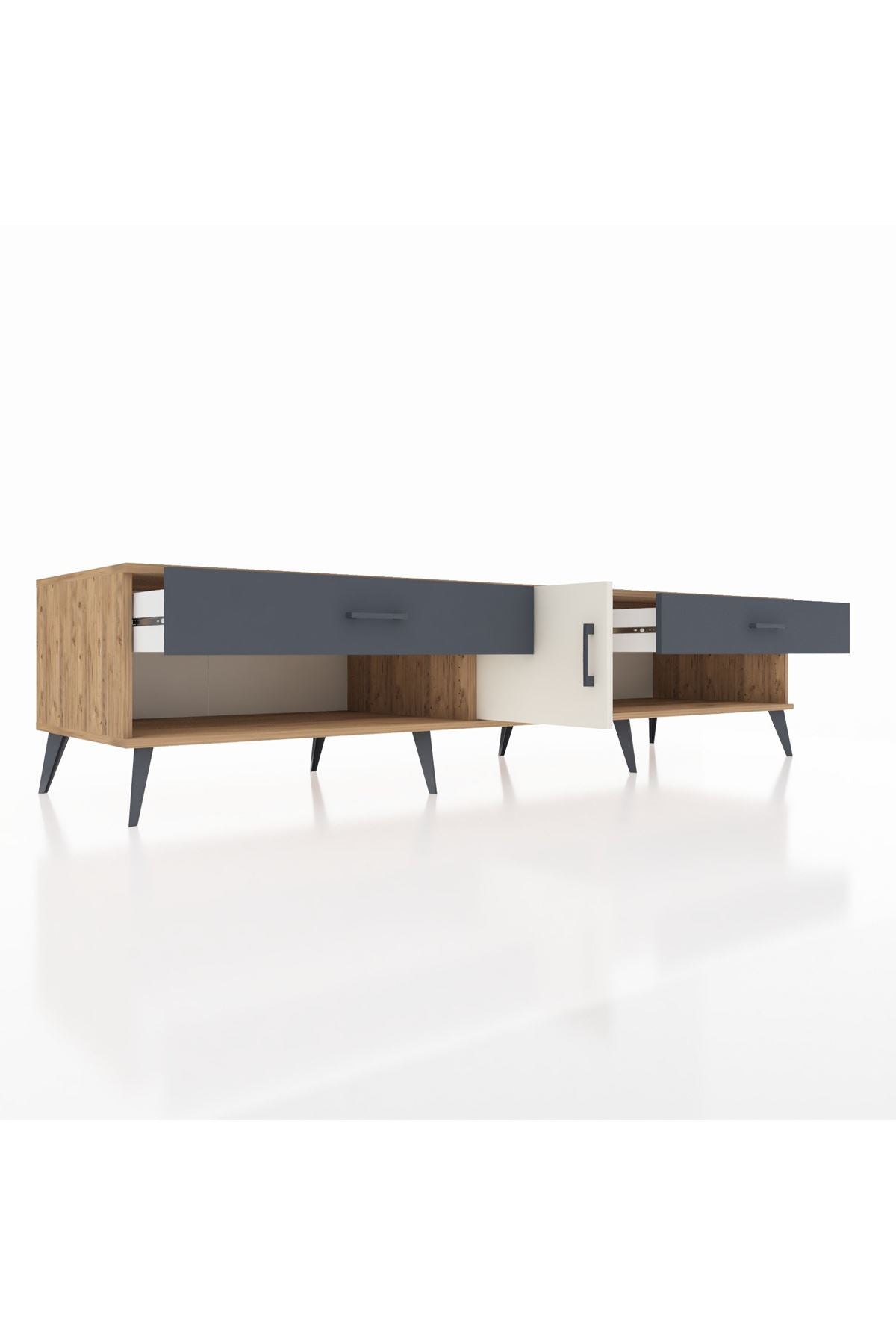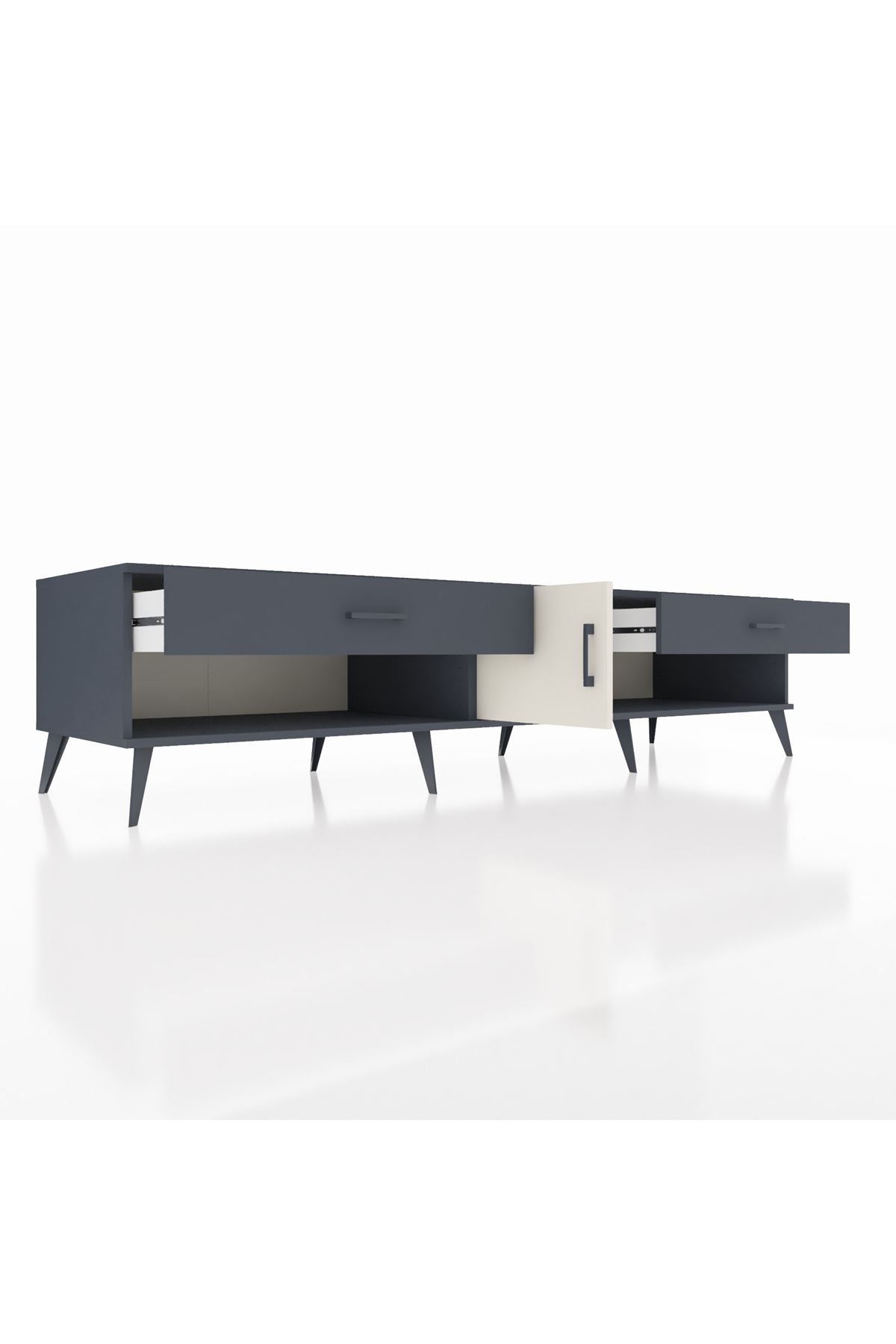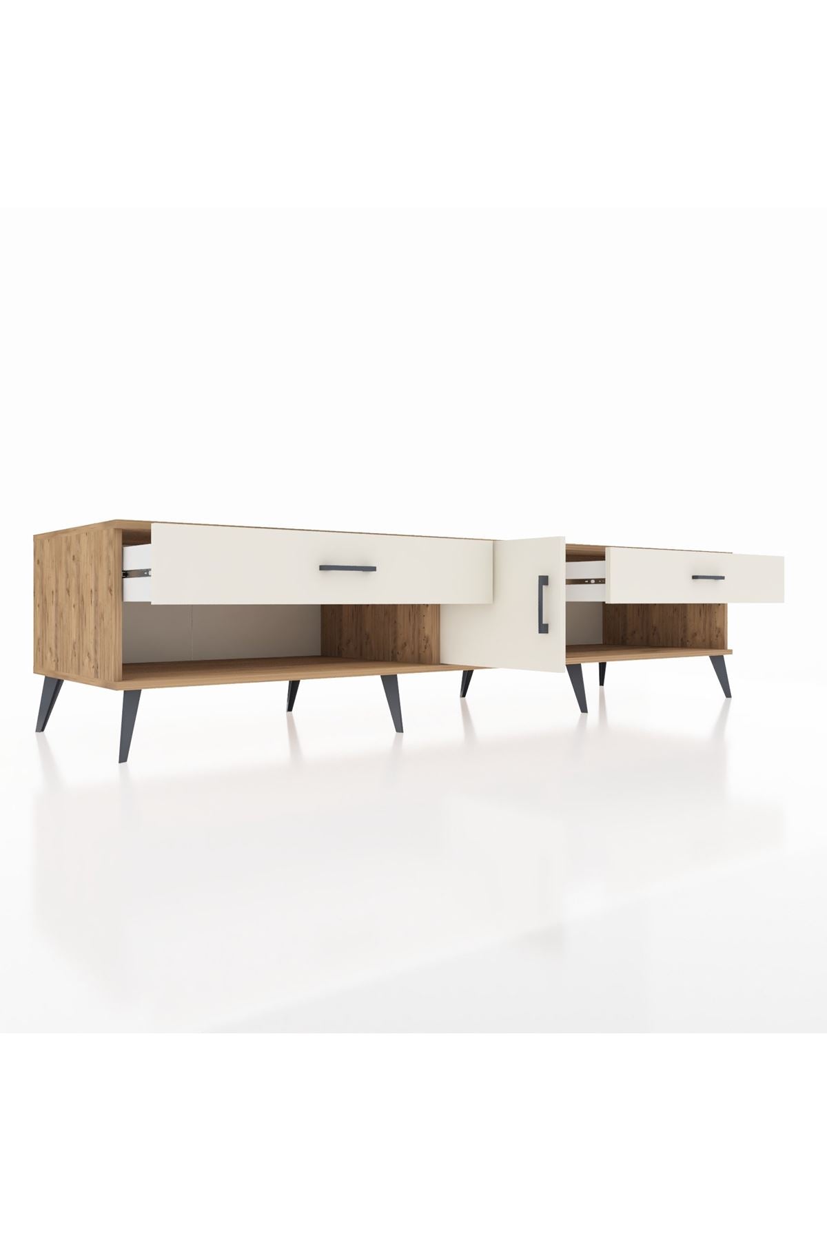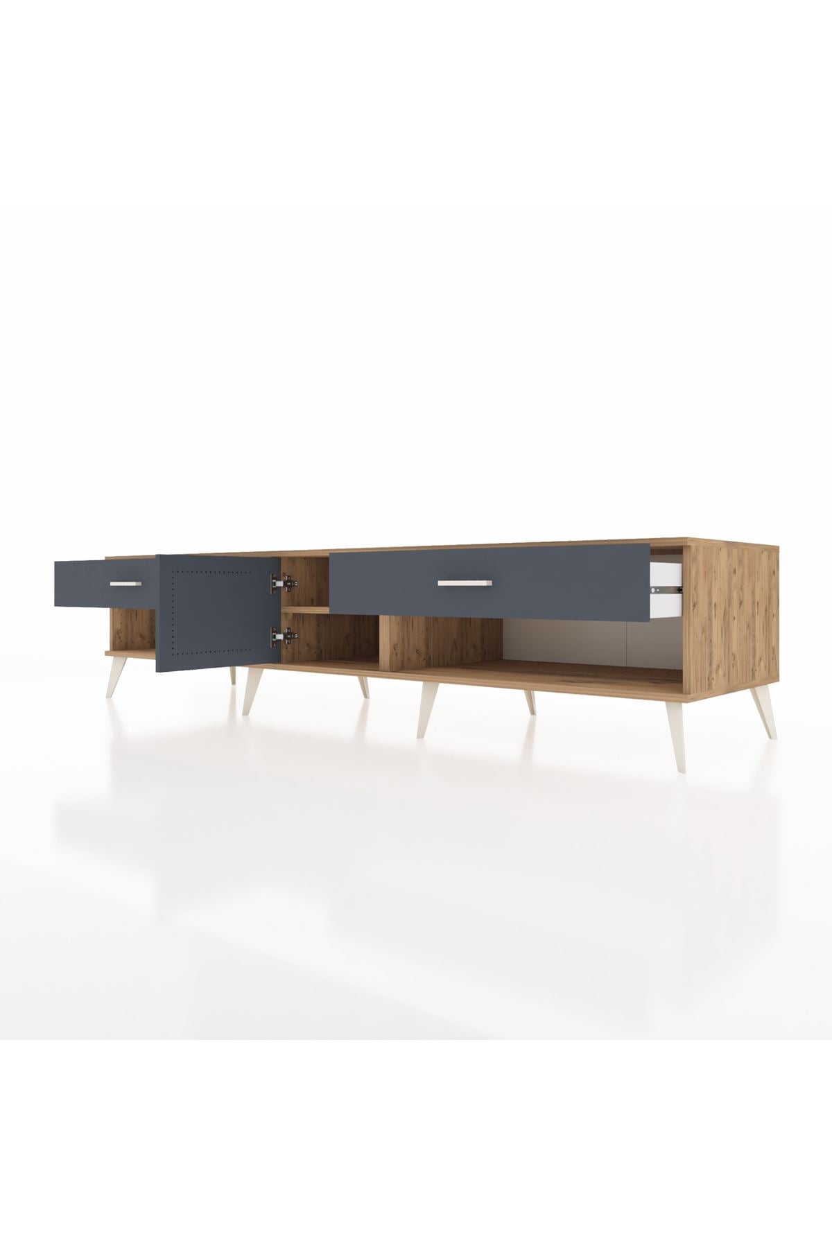 📌 Kronos TV Ünitesi Tek Raflı 2 Çekmeceli Tek Kapaklı 220x59x51