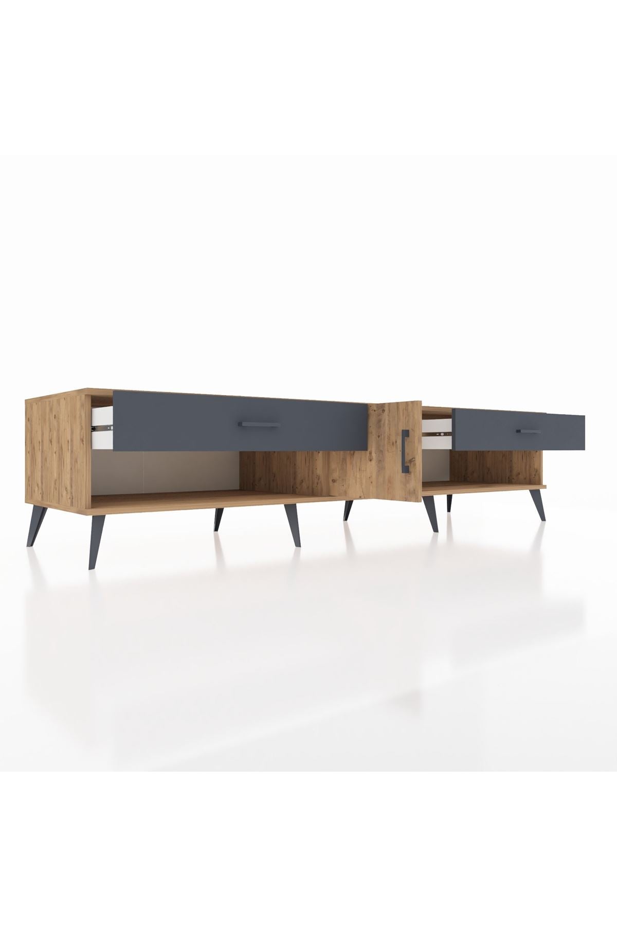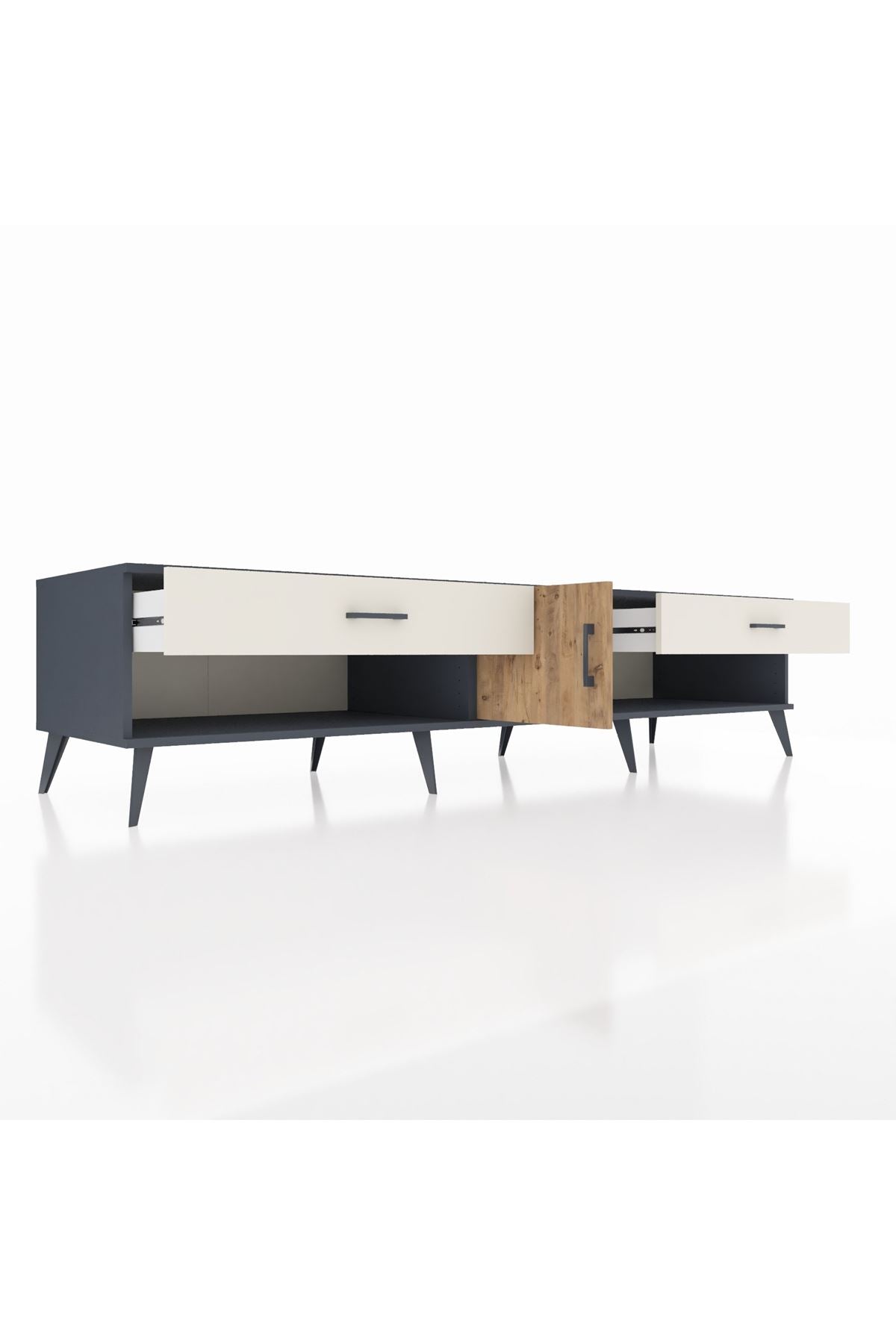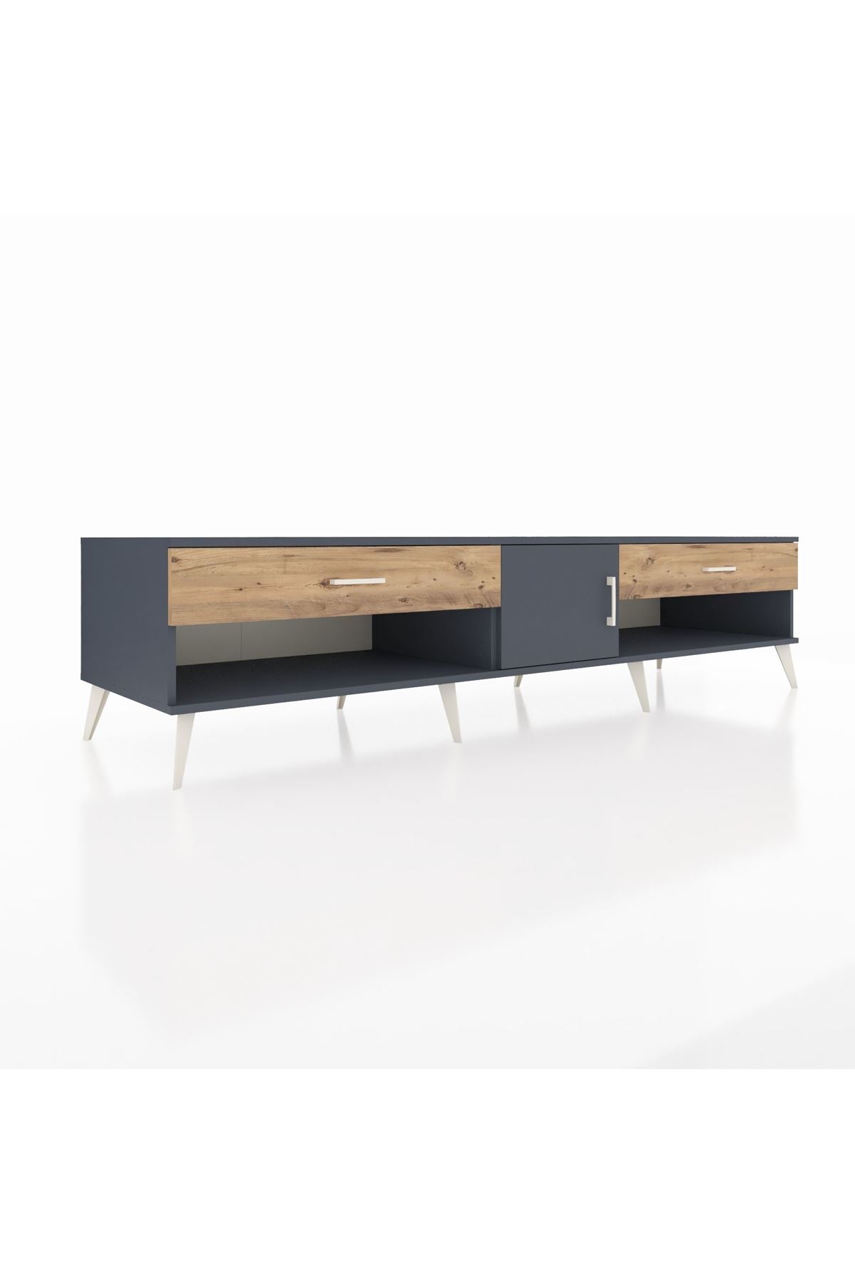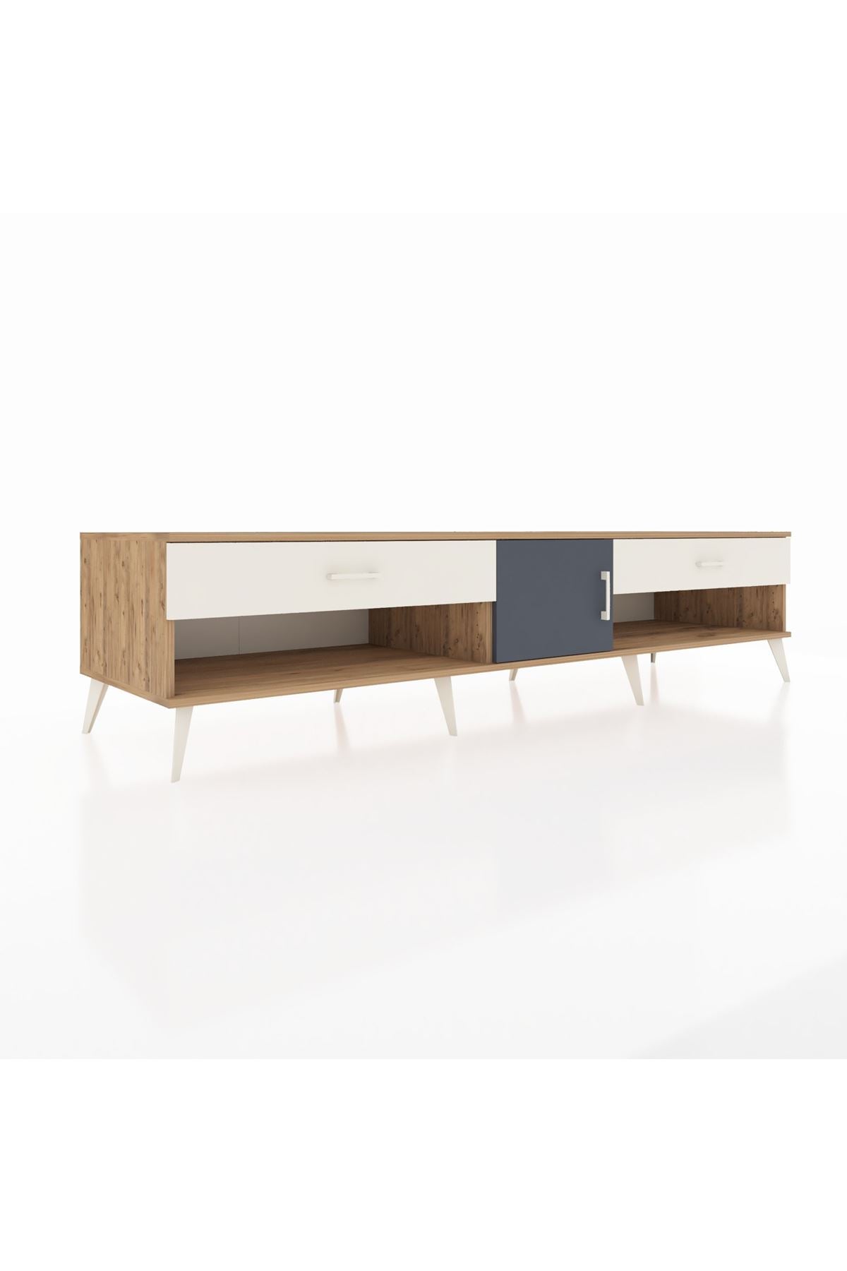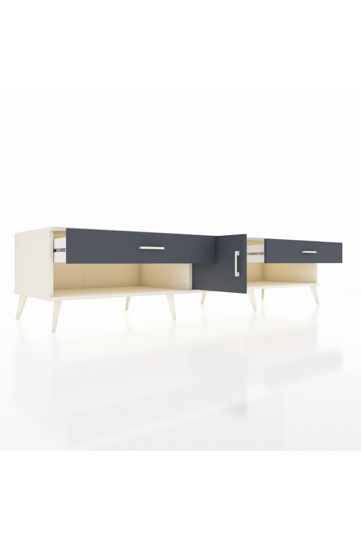 📌 Kronos TV Ünitesi Tek Raflı 2 Çekmeceli Tek Kapaklı 220x59x51