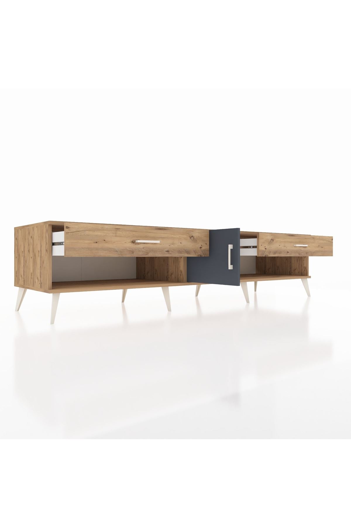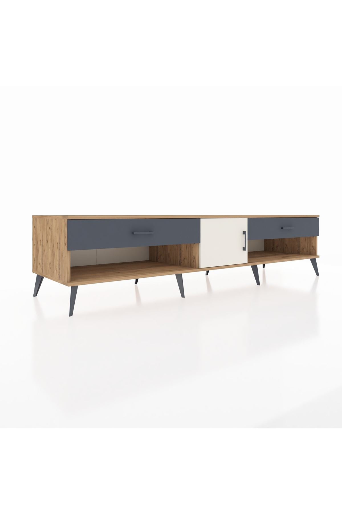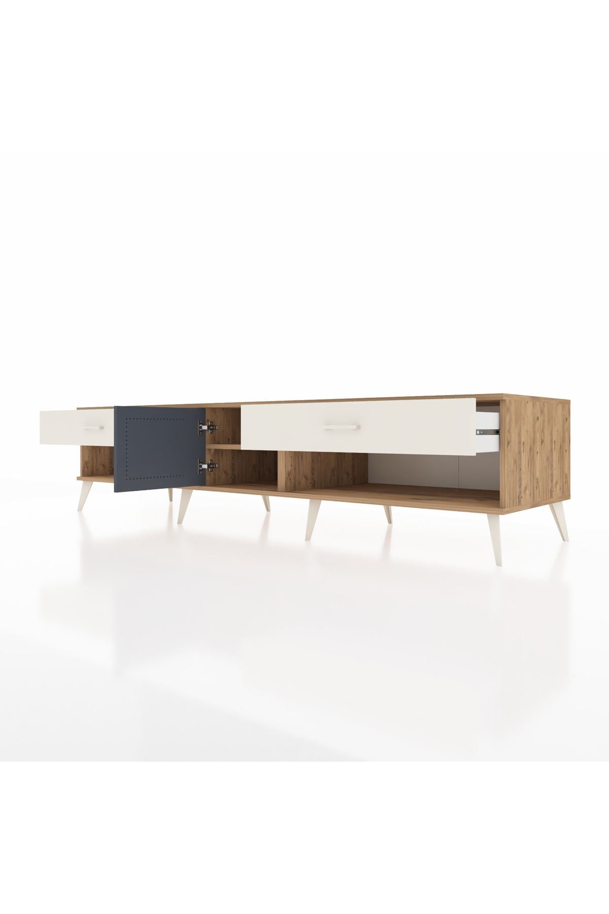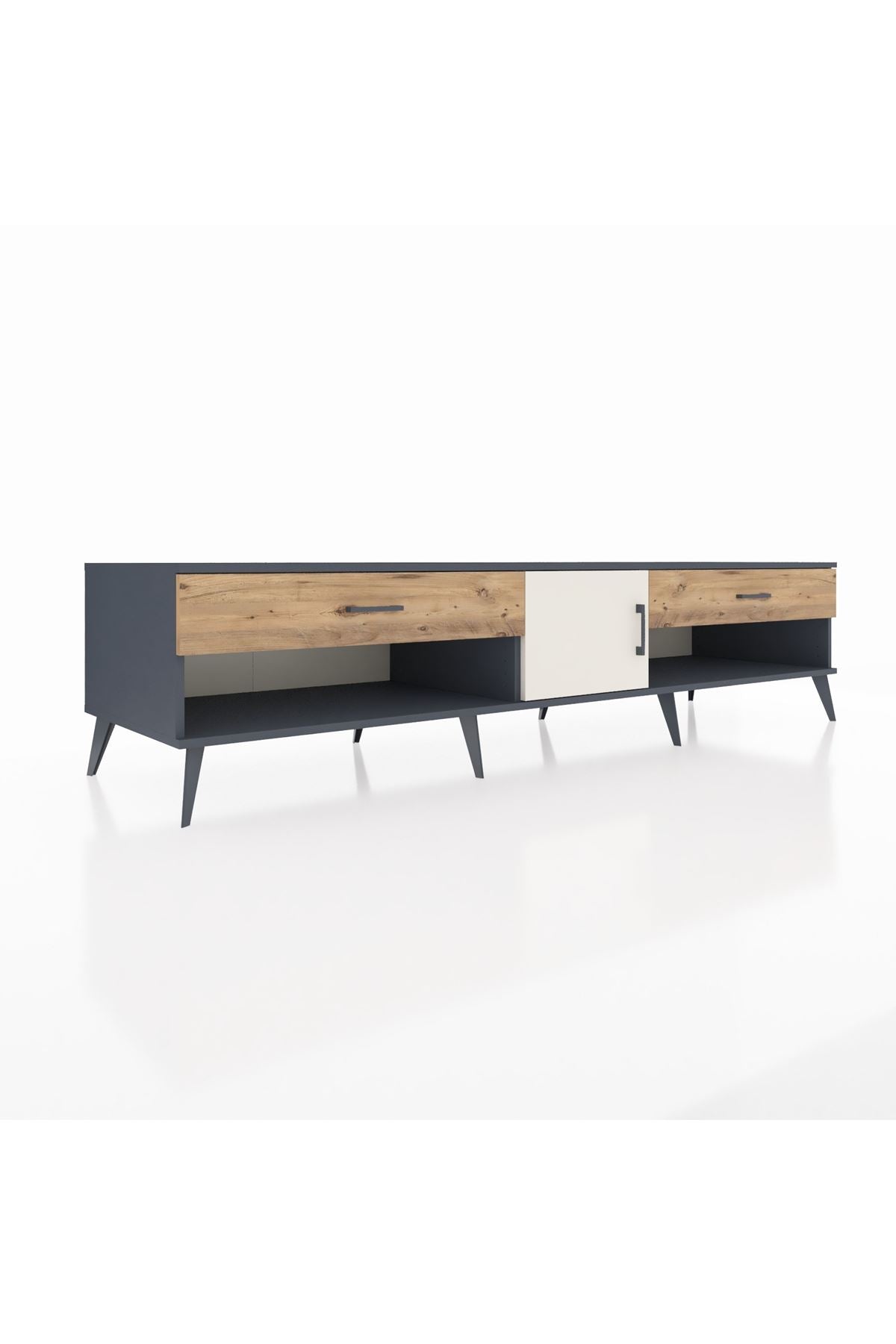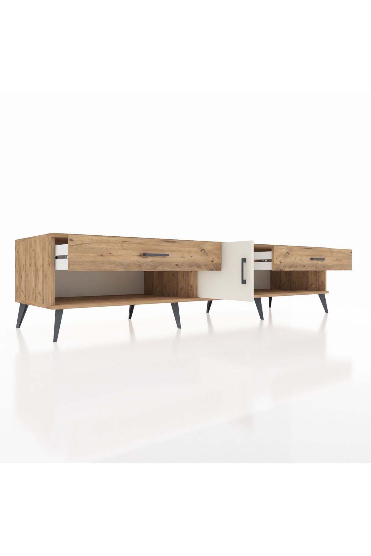 📌 Kronos TV Ünitesi Tek Raflı 2 Çekmeceli Tek Kapaklı 220x59x51