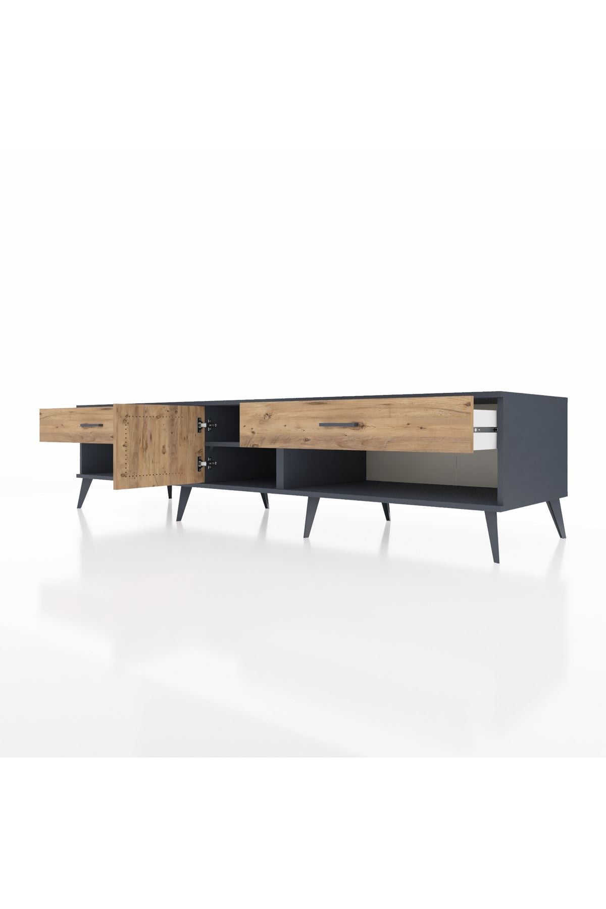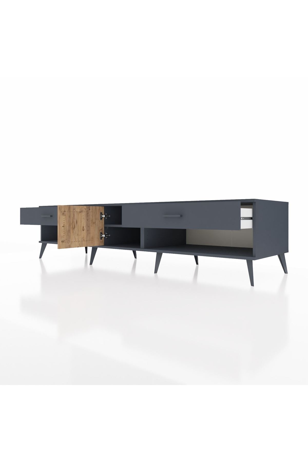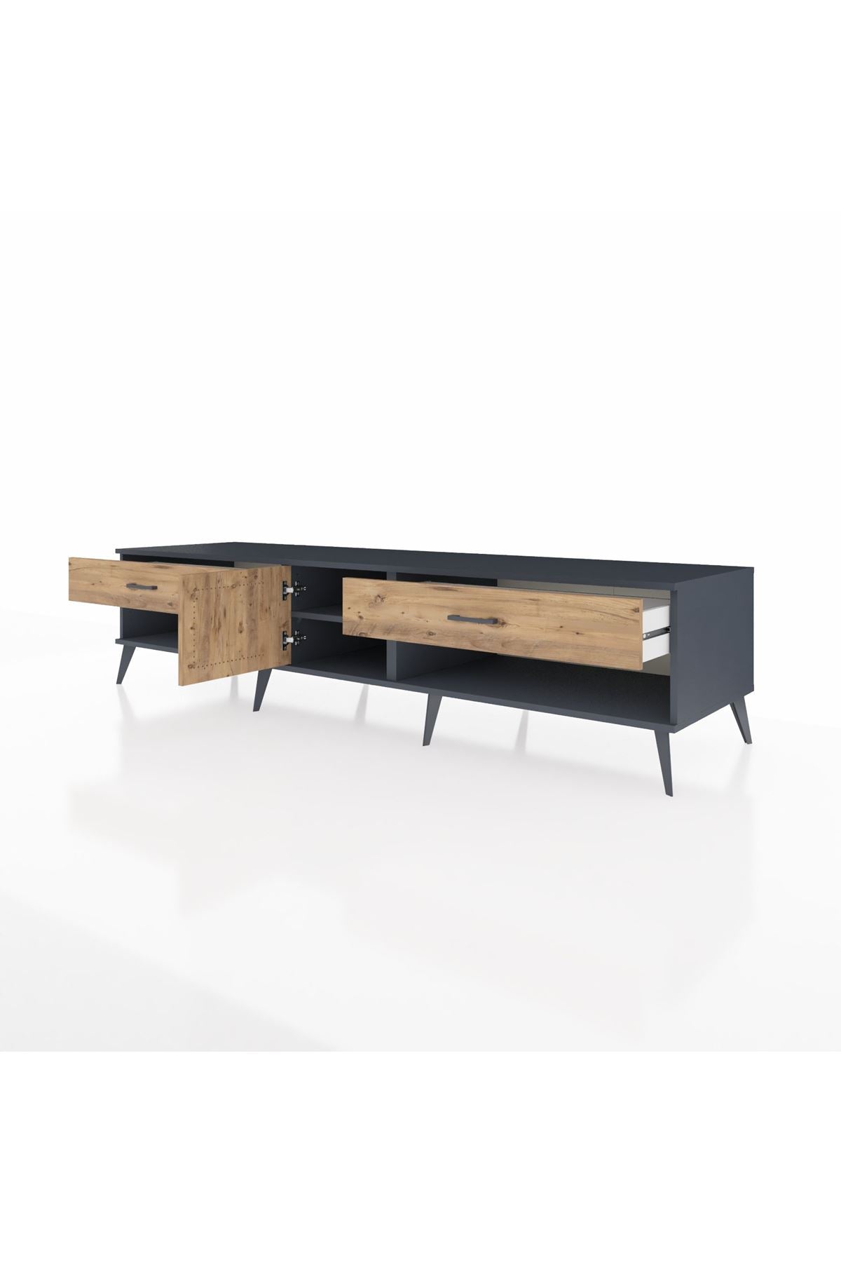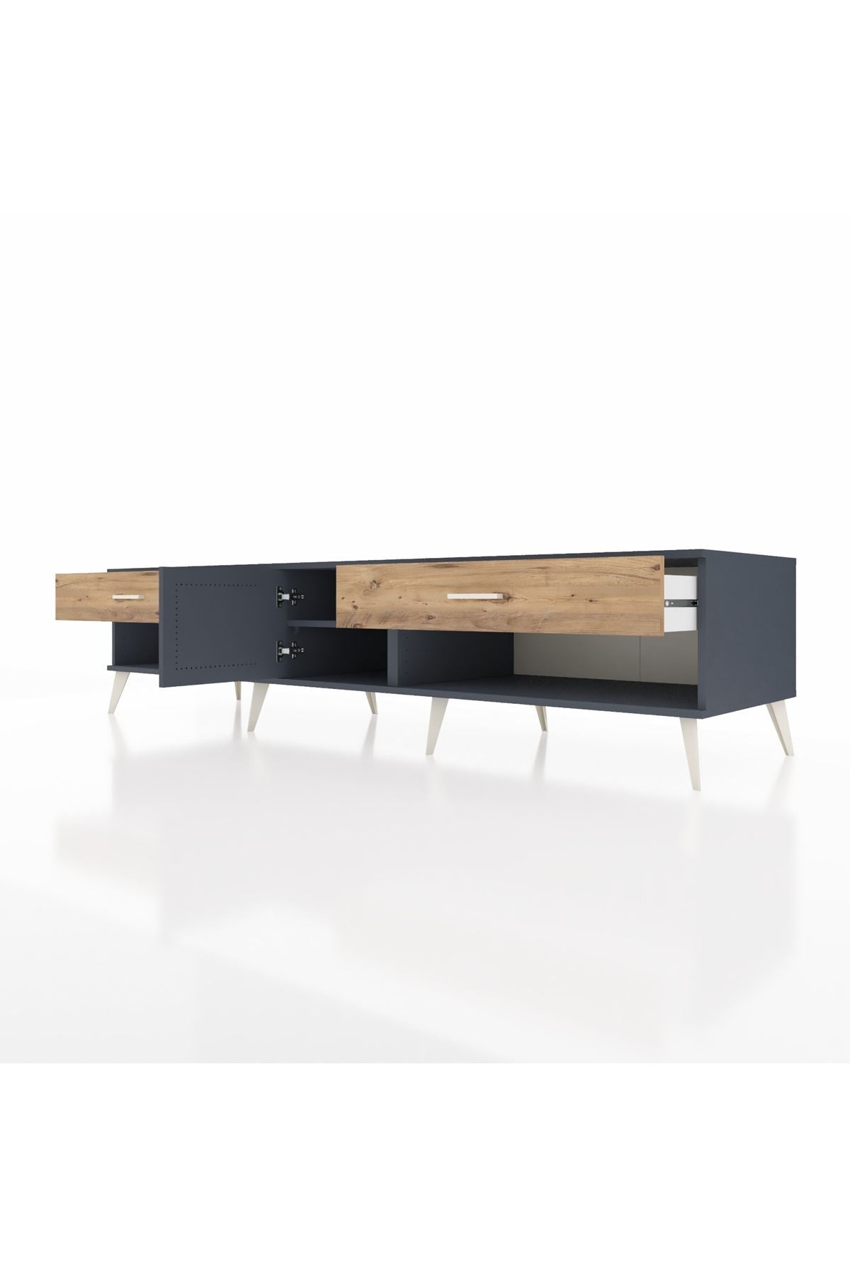 🪵 Kronos TV Ünitesi, dayanıklılığı ve estetiği bir arada sunan Kastamonu Entegre 1. sınıf suntalam malzemeden üretilmiştir. Uzun ömürlü kullanım için 1.2 mm kalınlığında kenar bandı ile güçlendirilmiştir.