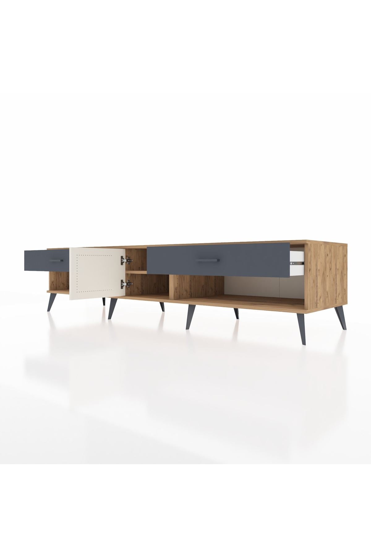 🛏️ Yatak Odası: Kronos TV Ünitesi, yatak odanızda şık bir köşe oluşturarak hem televizyon keyfinizi artırır hem de depolama alanı sunar. Çekmeceleri ve kapaklı bölmesi sayesinde kişisel eşyalarınızı düzenli bir şekilde saklayabilirsiniz.