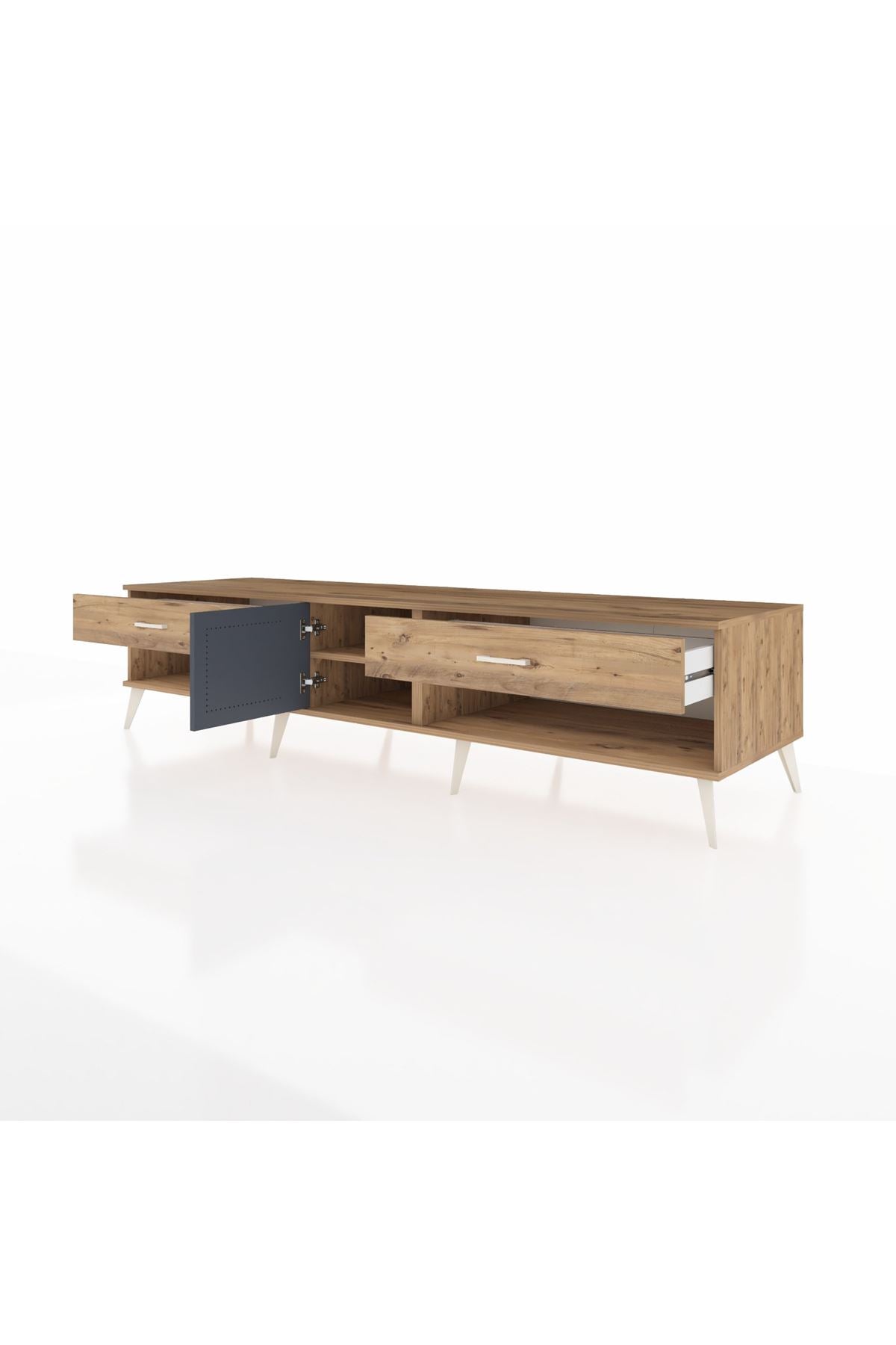 Kronos TV Ünitesi Tek Raflı 2 Çekmeceli Tek Kapaklı 220x59x51