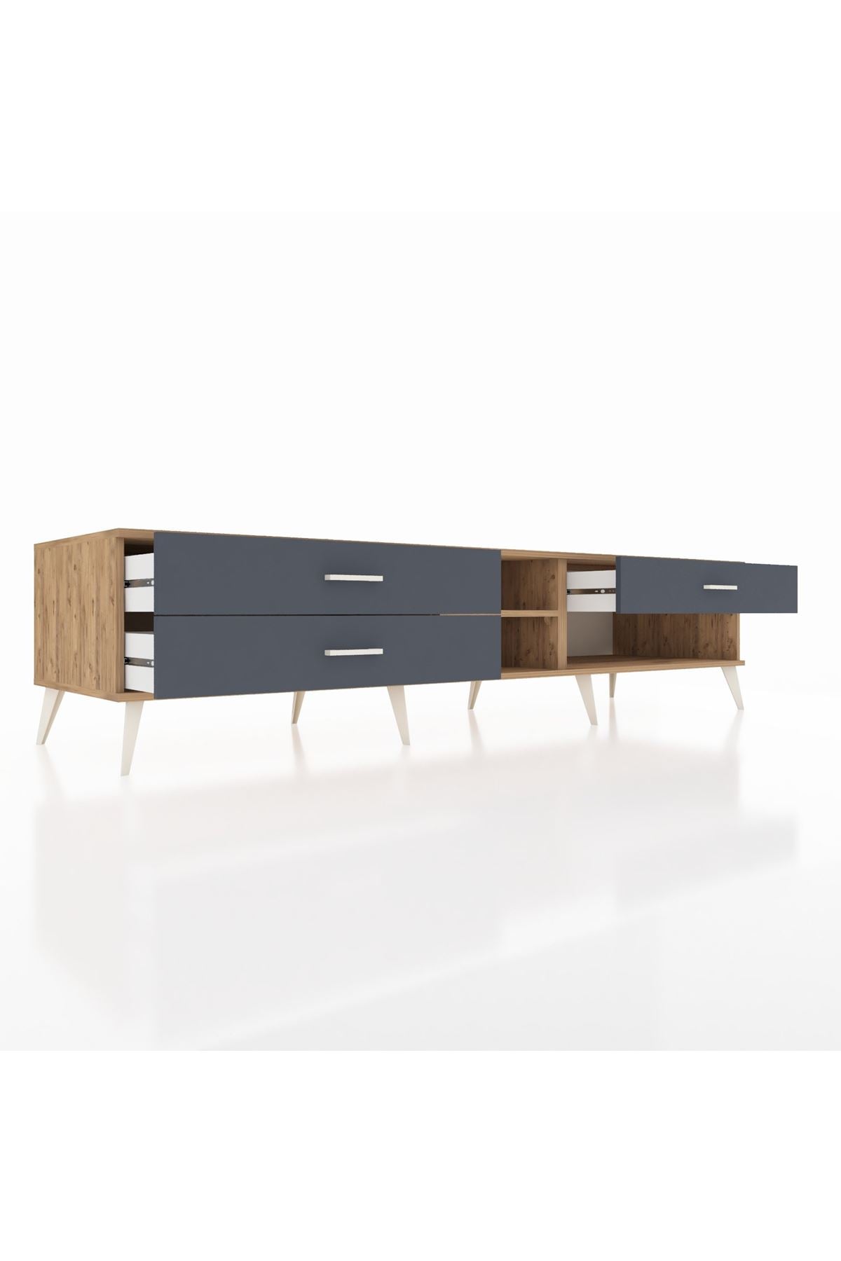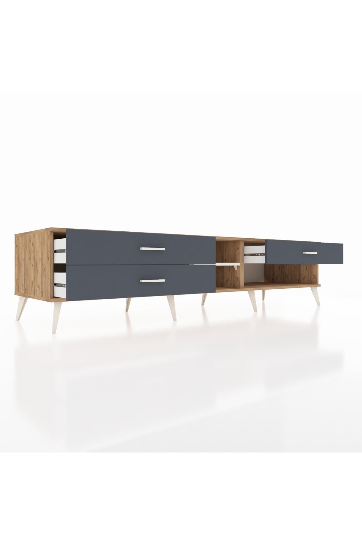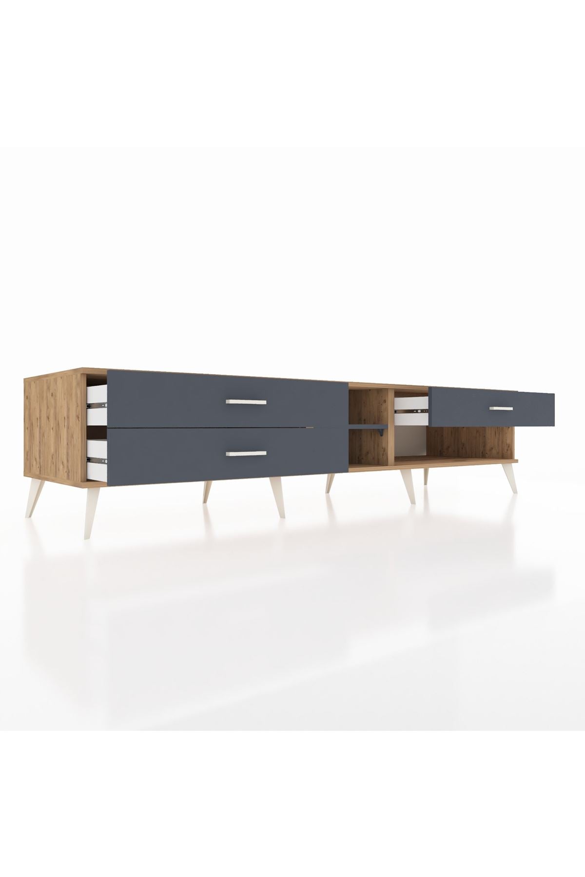 📌 Kronos TV Ünitesi Tek Raflı 3 Çekmeceli 220x59x51