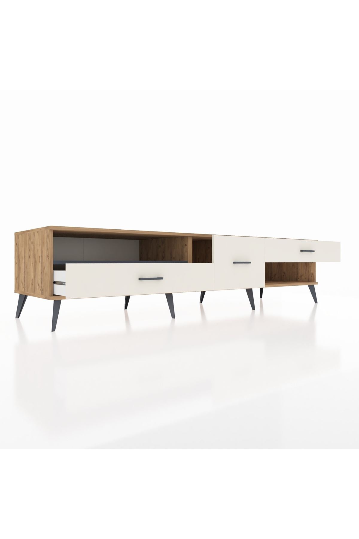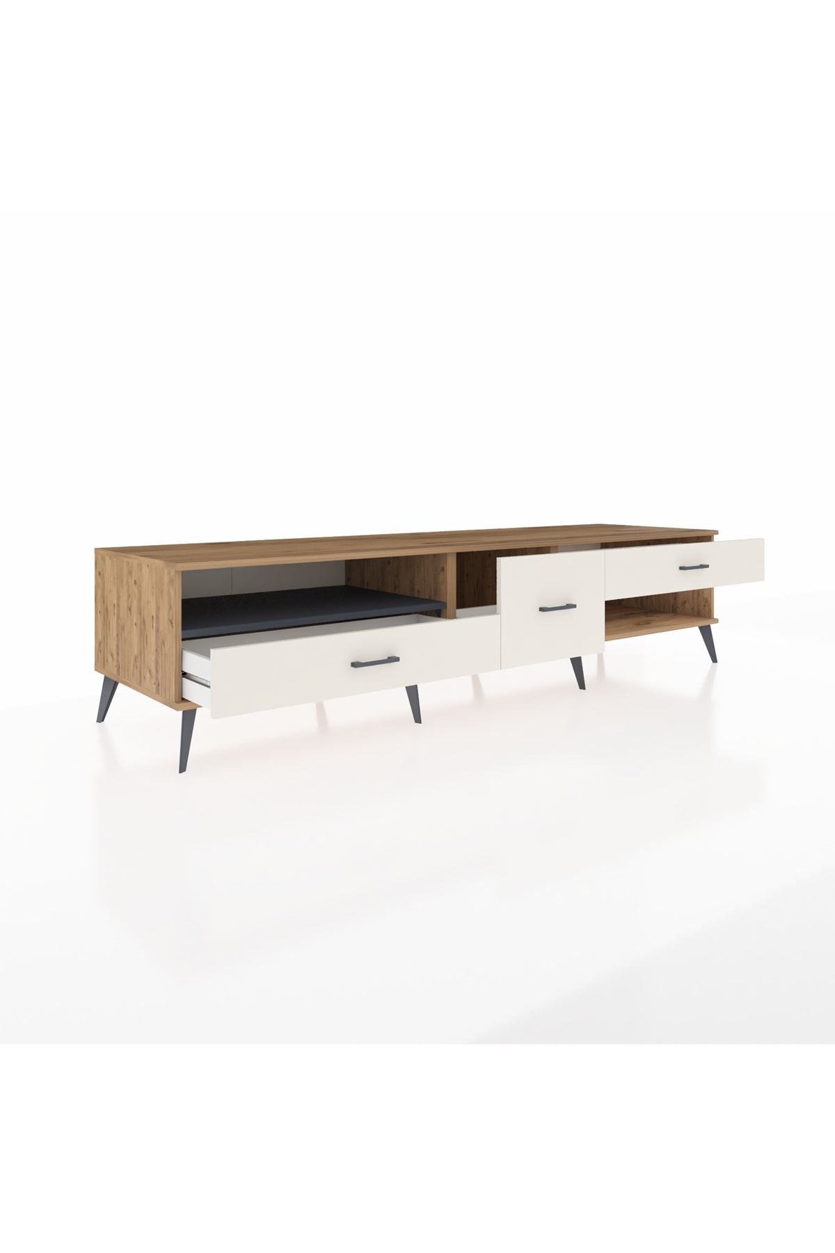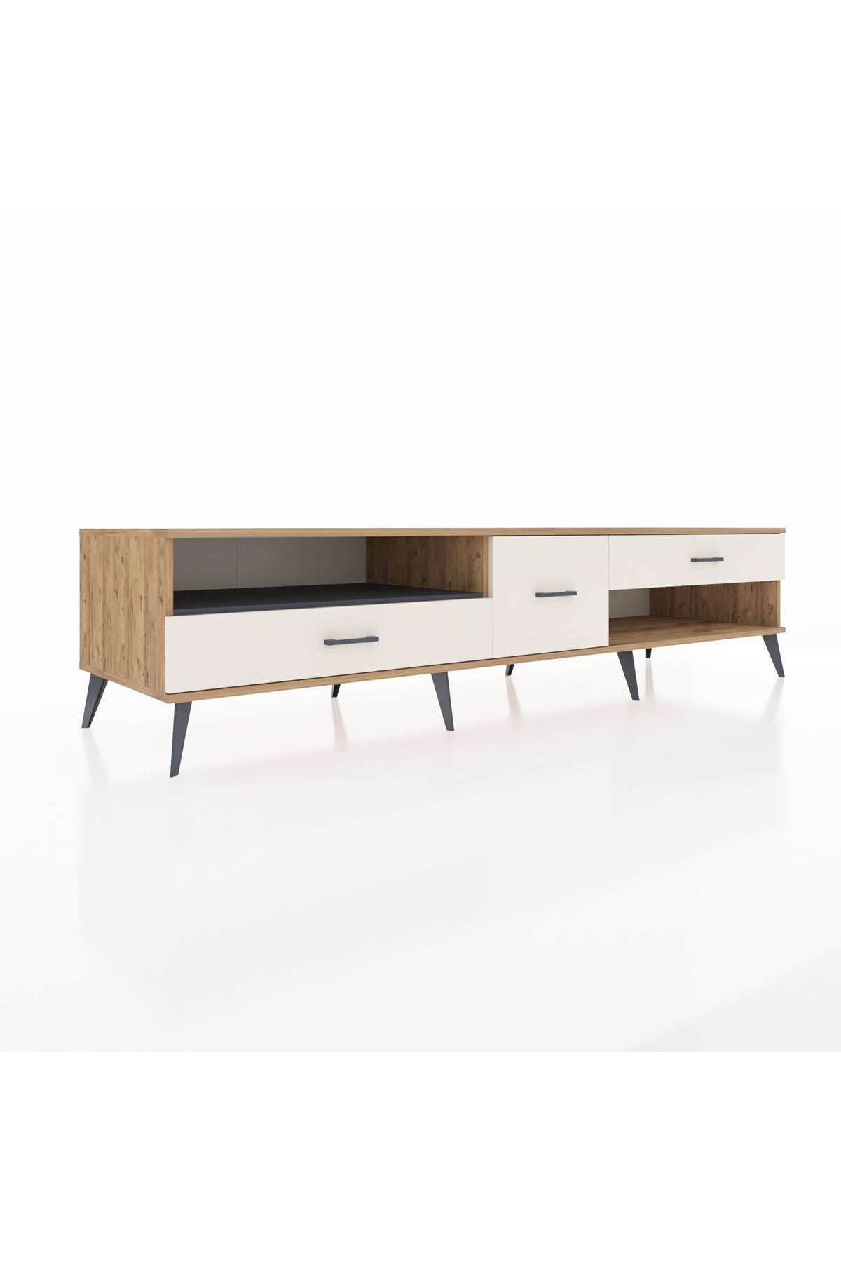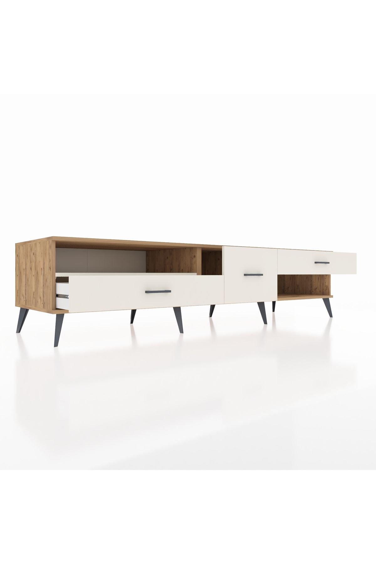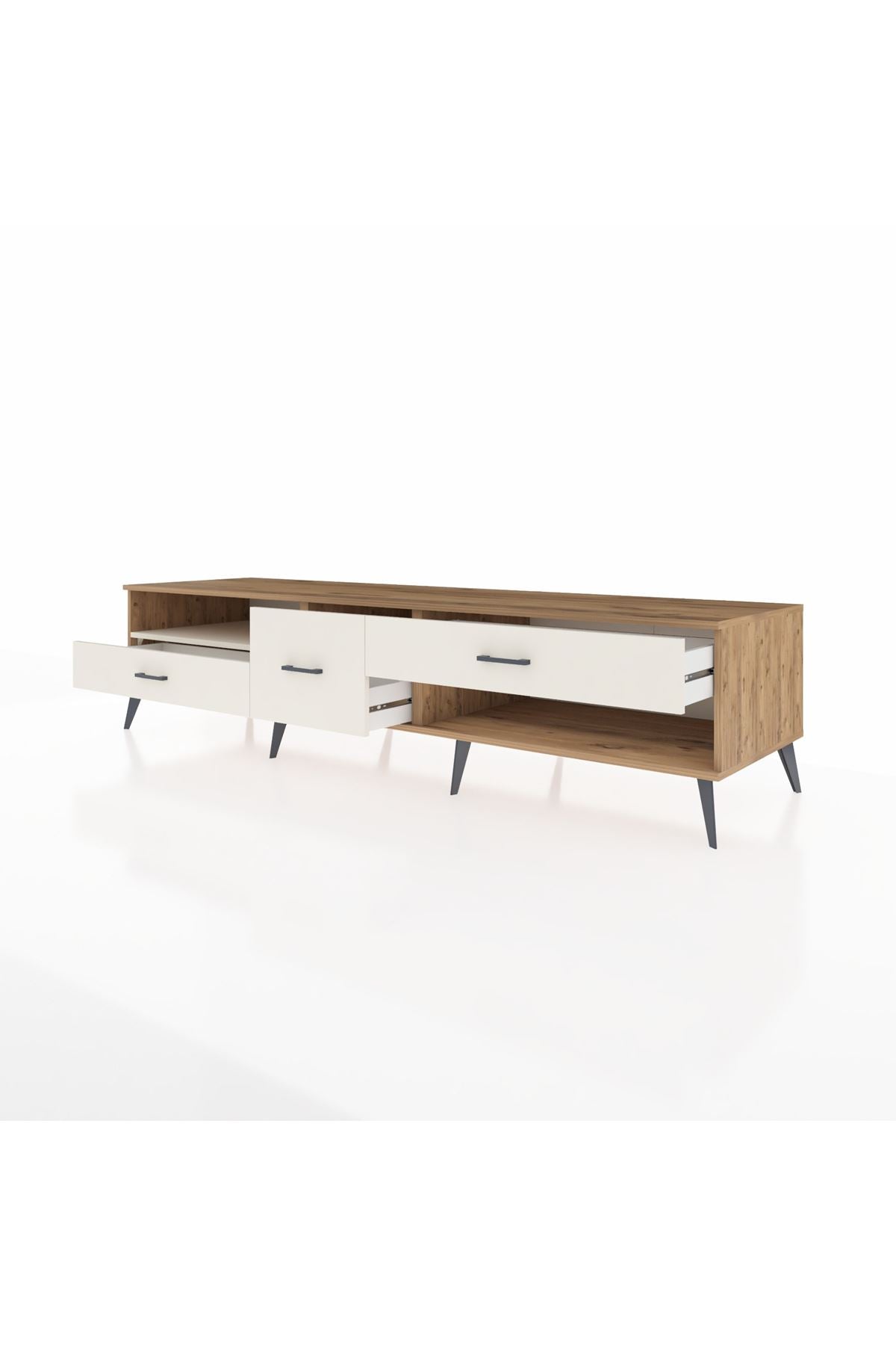 🦾 Metal ayaklar ve metal kulplar, TV ünitesine modern bir görünüm kazandırırken, dayanıklılığı da artırır. Metal detaylar, ünitenin genel estetiğini tamamlayarak şık bir görünüm sunar.