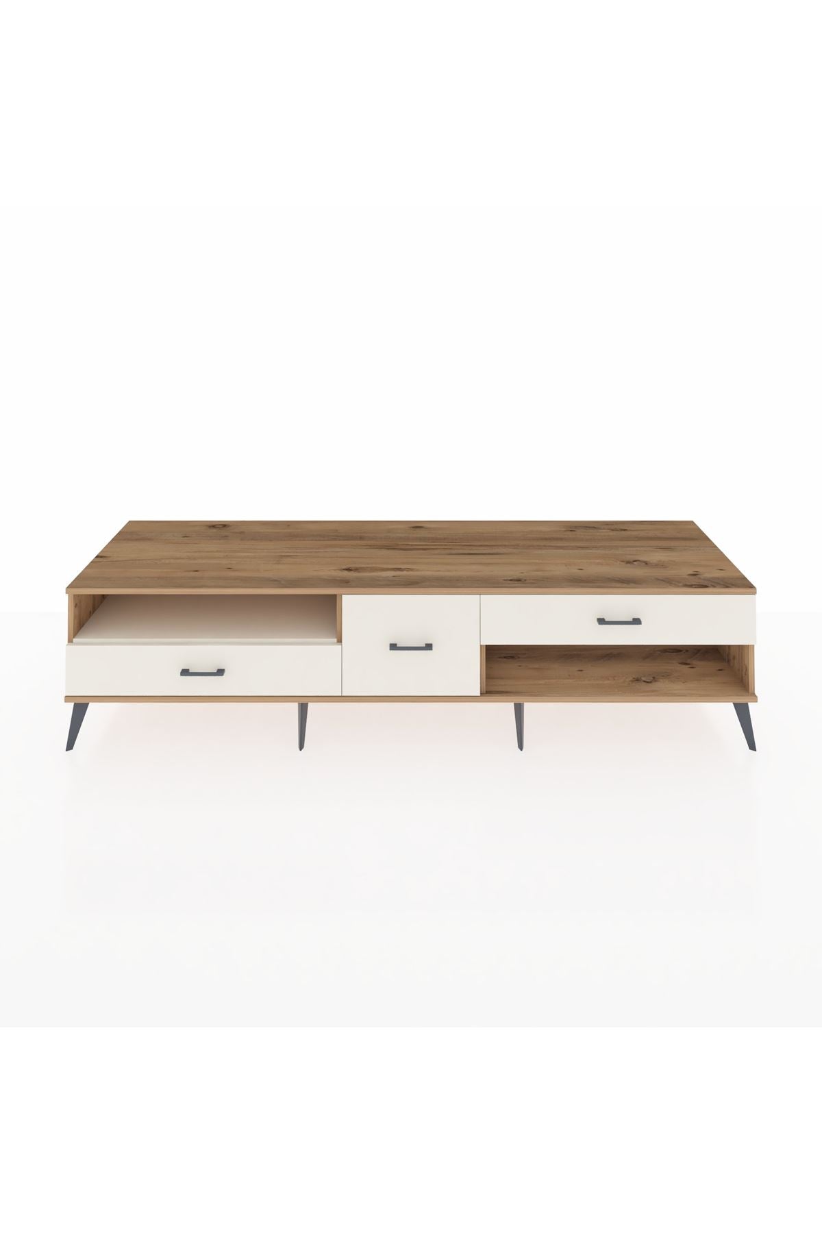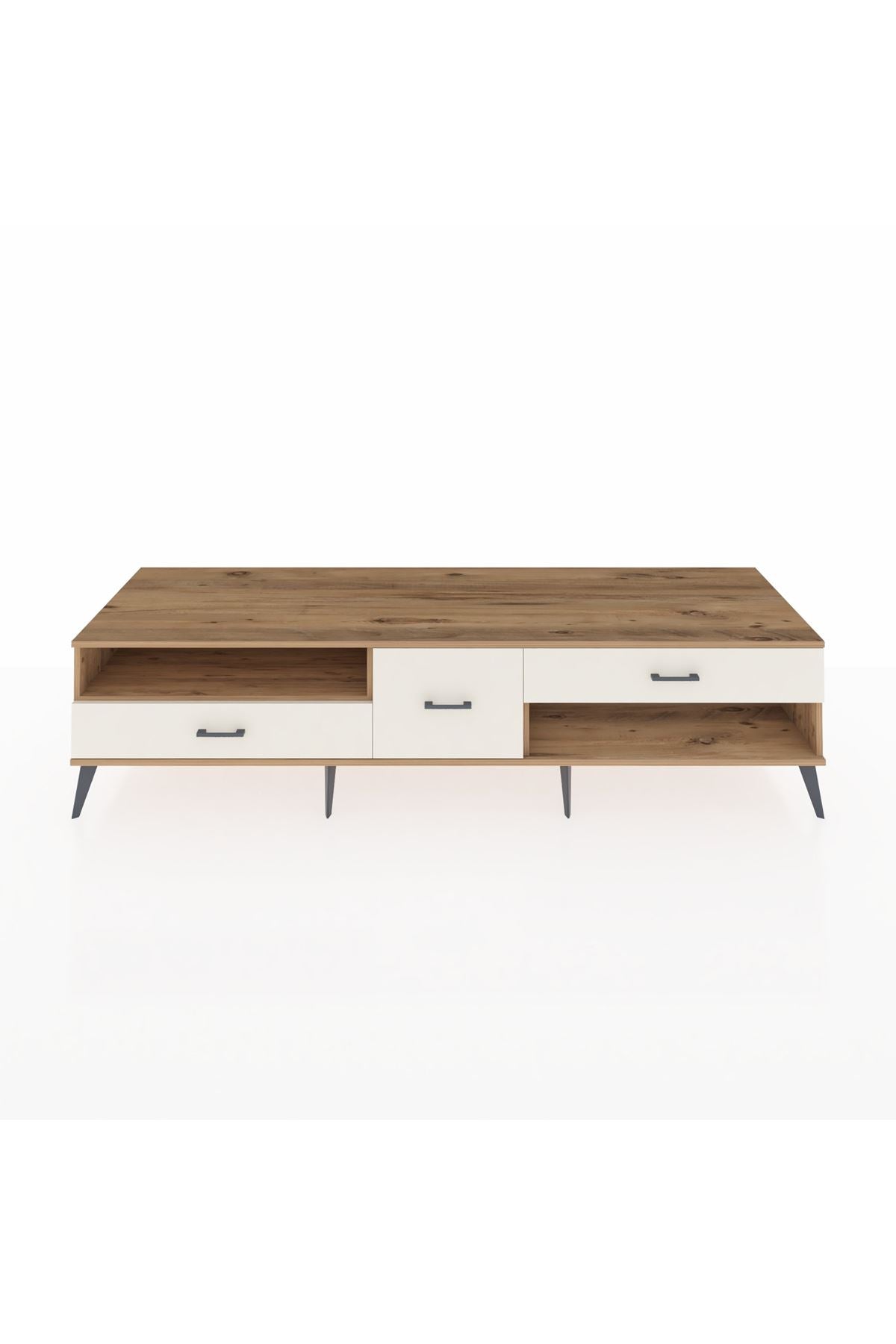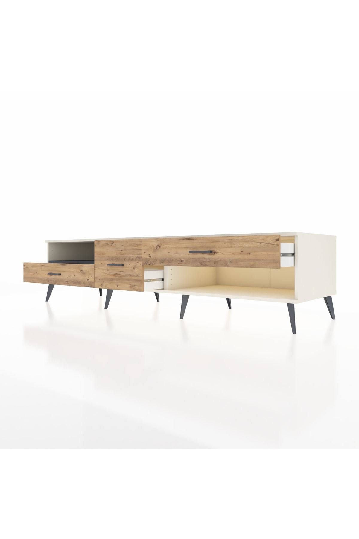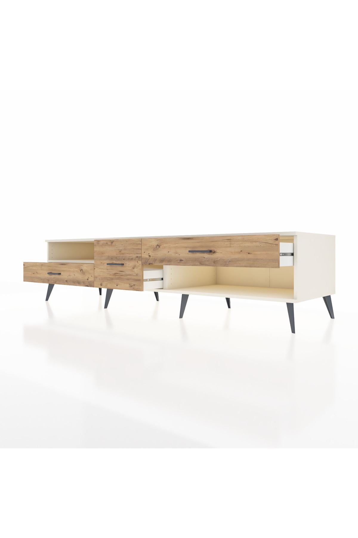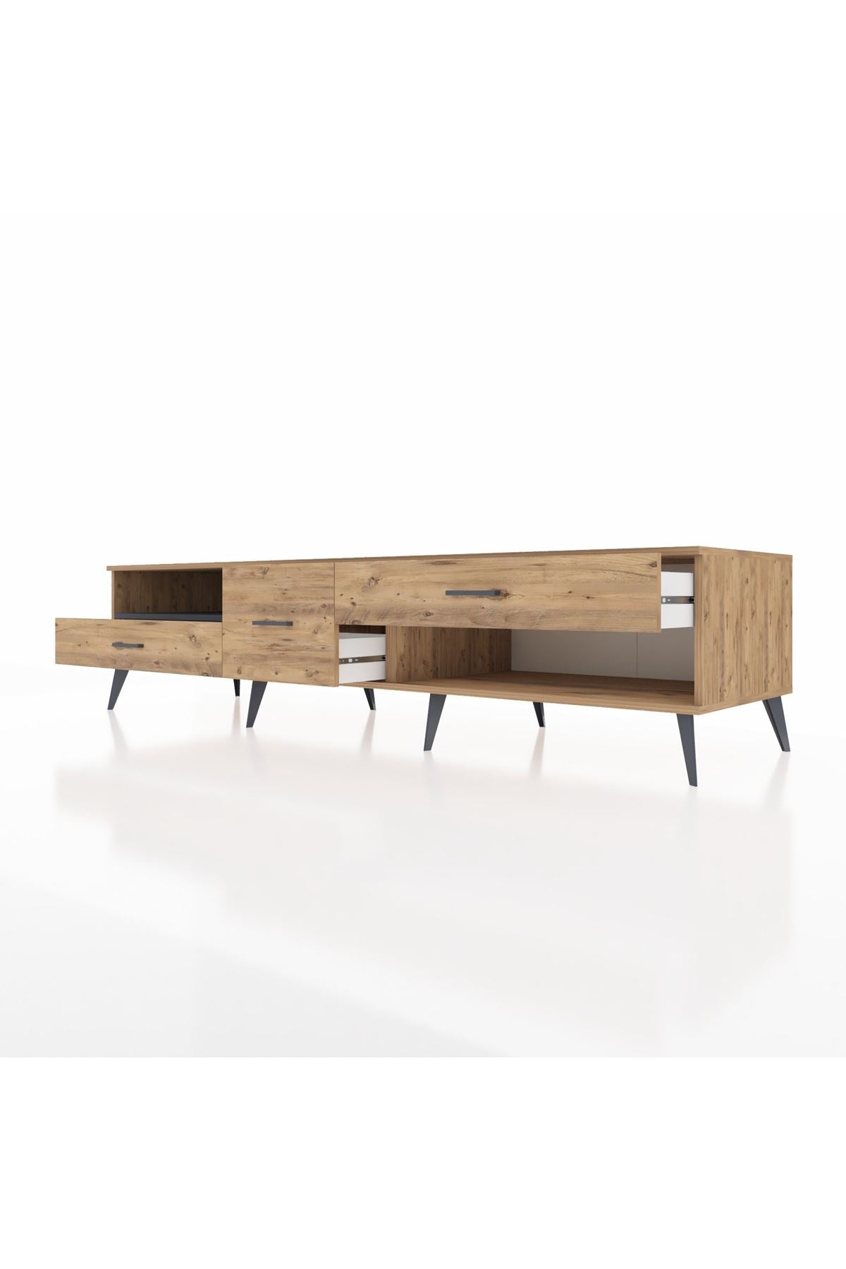🦾 Metal ayaklar ve metal kulplar, TV ünitesine modern bir görünüm kazandırırken, dayanıklılığı da artırır. Metal detaylar, ünitenin genel estetiğini tamamlayarak şık bir görünüm sunar.