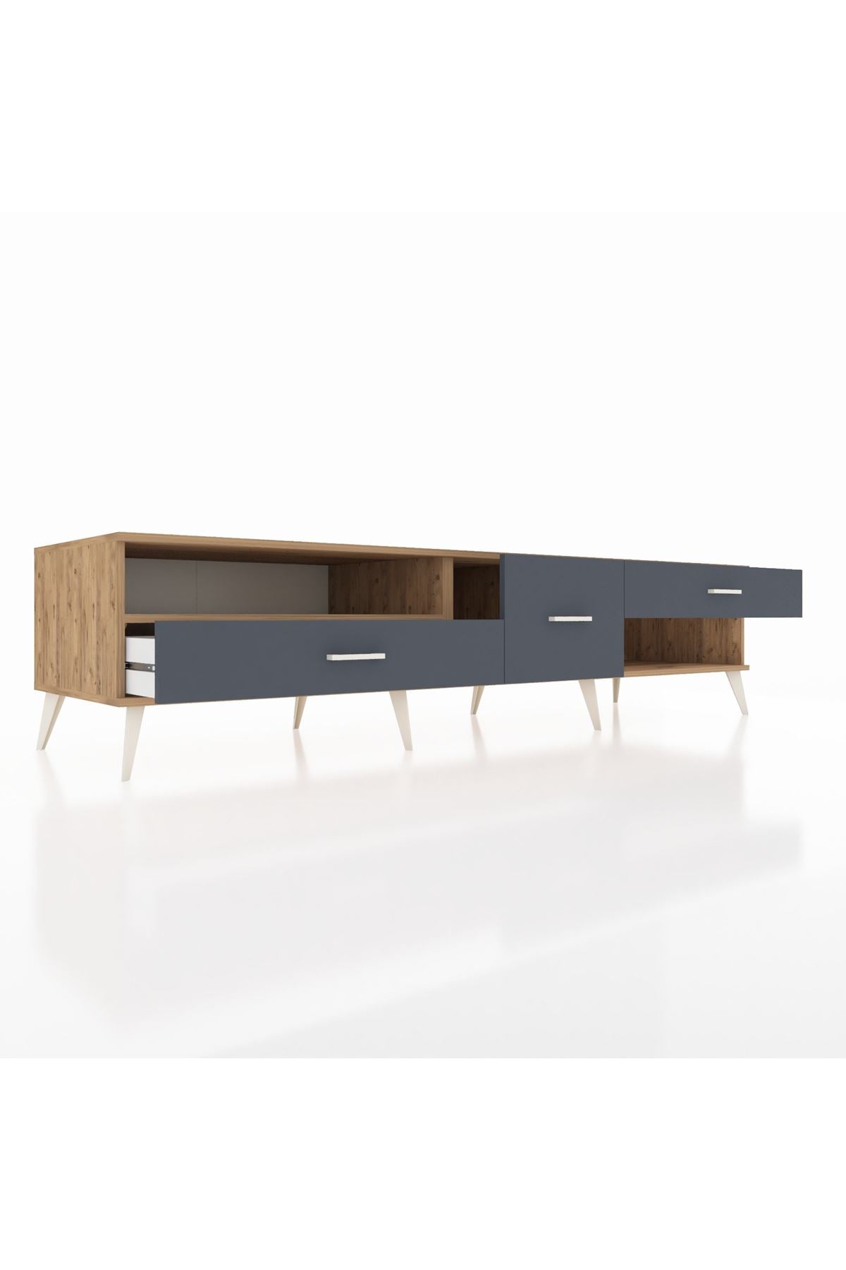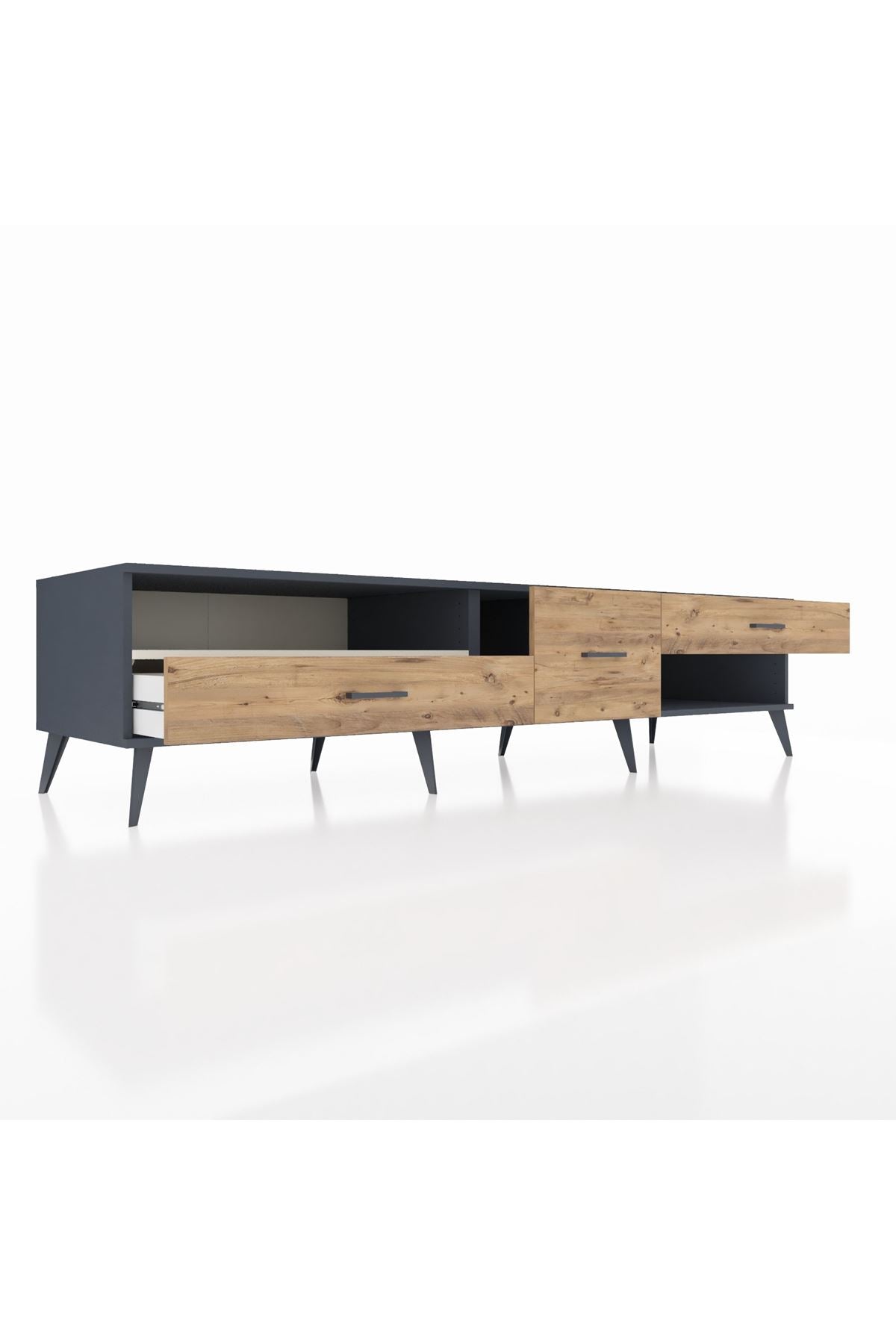 📌 Kronos TV Ünitesi Tek Raflı 3 Çekmeceli 220x59x51