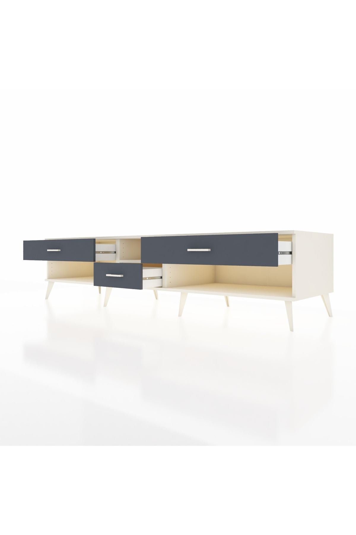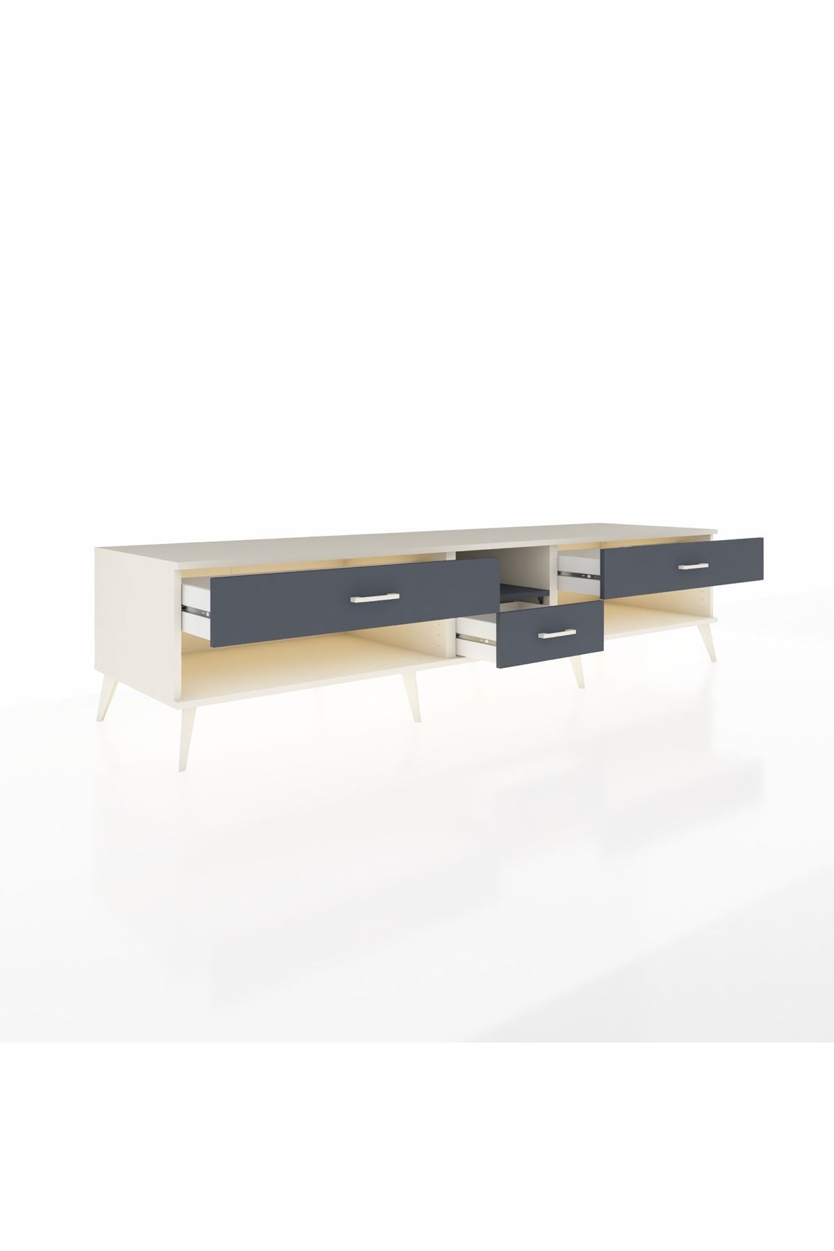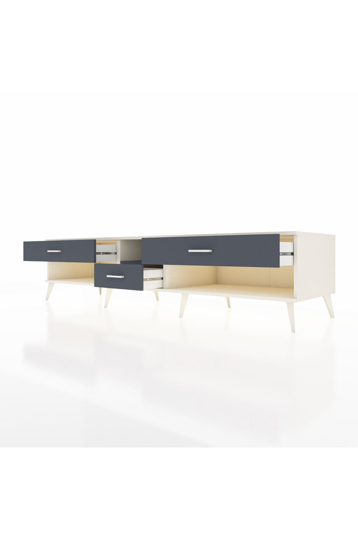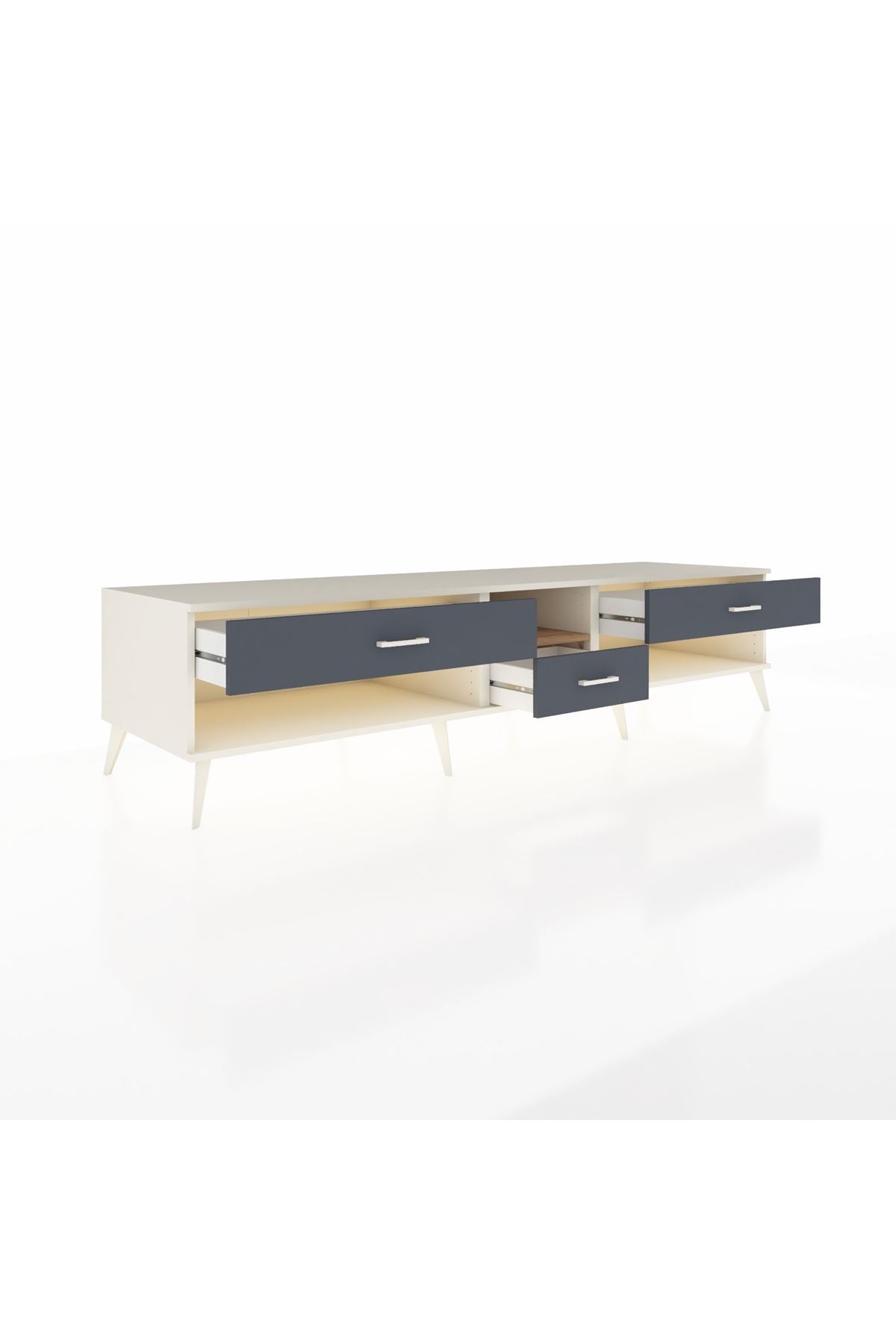 💼 Ofis / Çalışma Odası: Çalışma odanızda hem TV ünitesi hem de depolama alanı olarak kullanabilirsiniz. Dosyalarınızı ve diğer ofis malzemelerinizi çekmecelerde saklayarak düzenli bir çalışma ortamı yaratabilirsiniz.