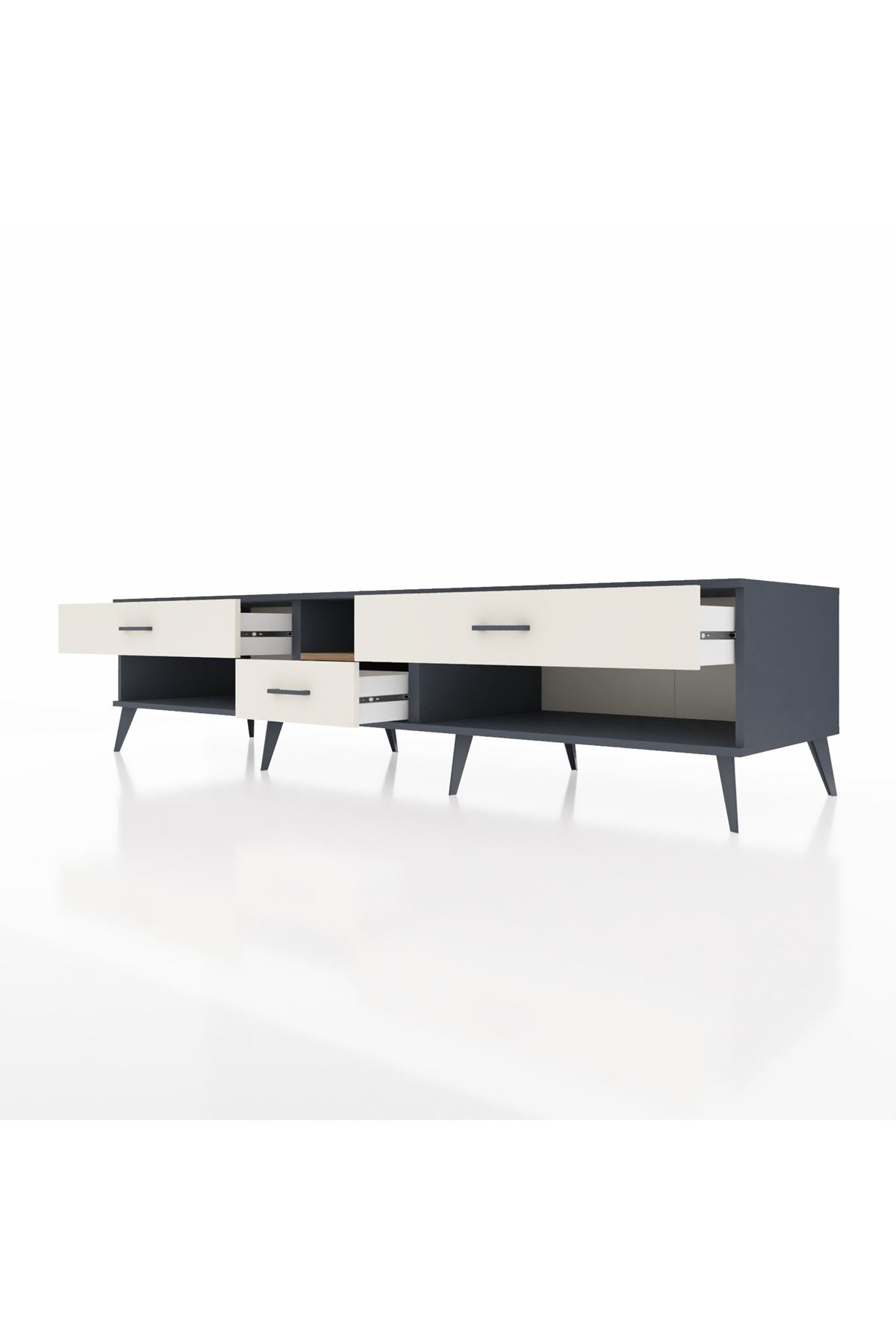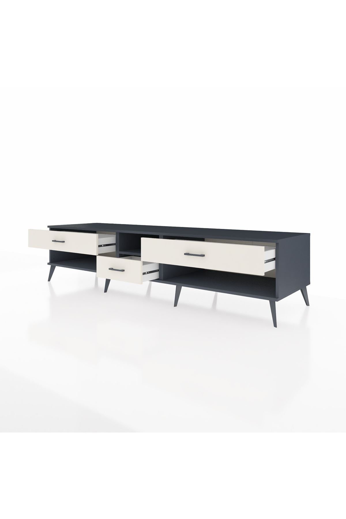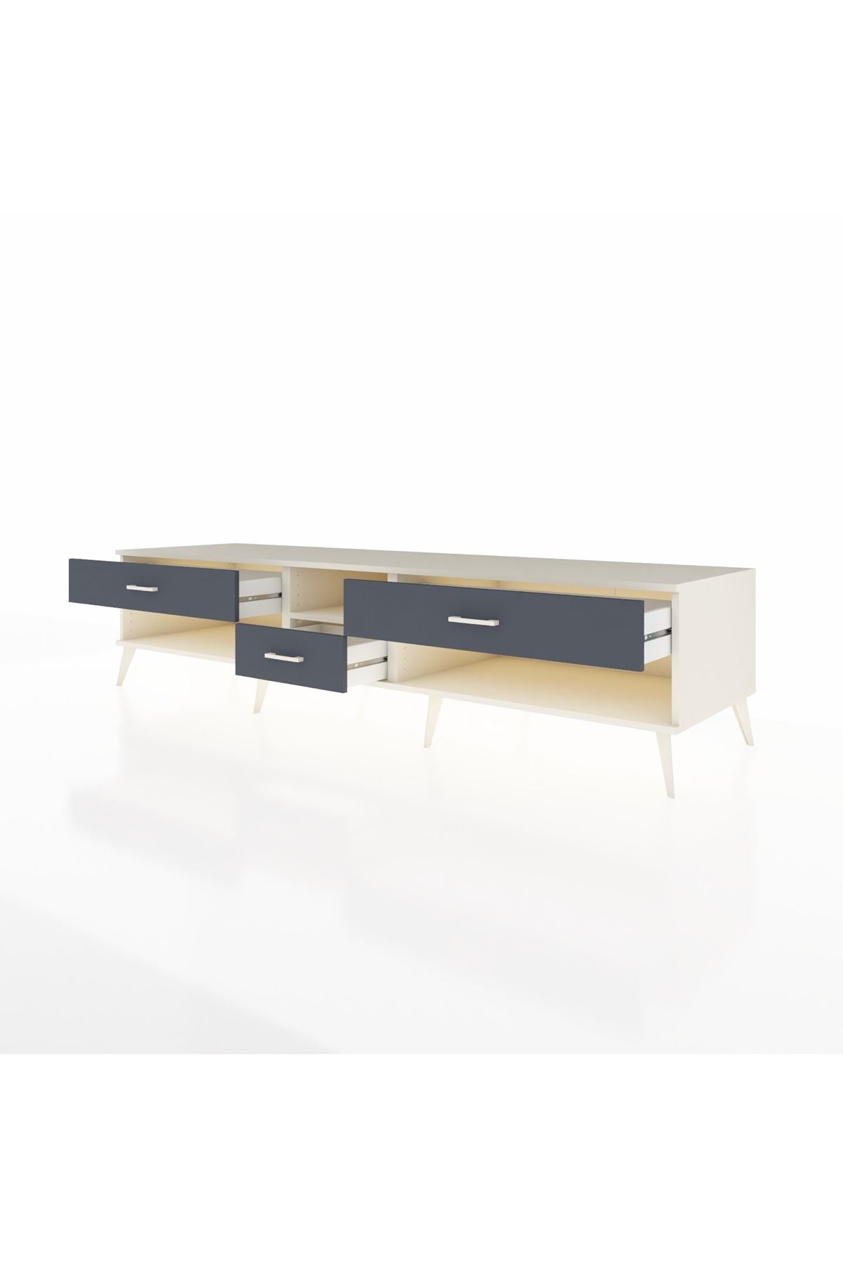 💼 Ofis / Çalışma Odası: Çalışma odanızda hem TV ünitesi hem de depolama alanı olarak kullanabilirsiniz. Dosyalarınızı ve diğer ofis malzemelerinizi çekmecelerde saklayarak düzenli bir çalışma ortamı yaratabilirsiniz.