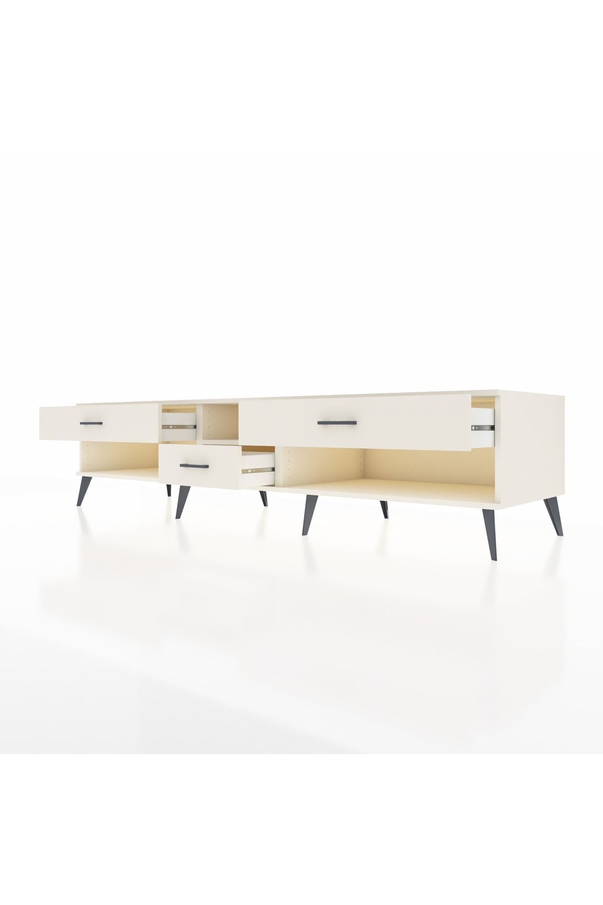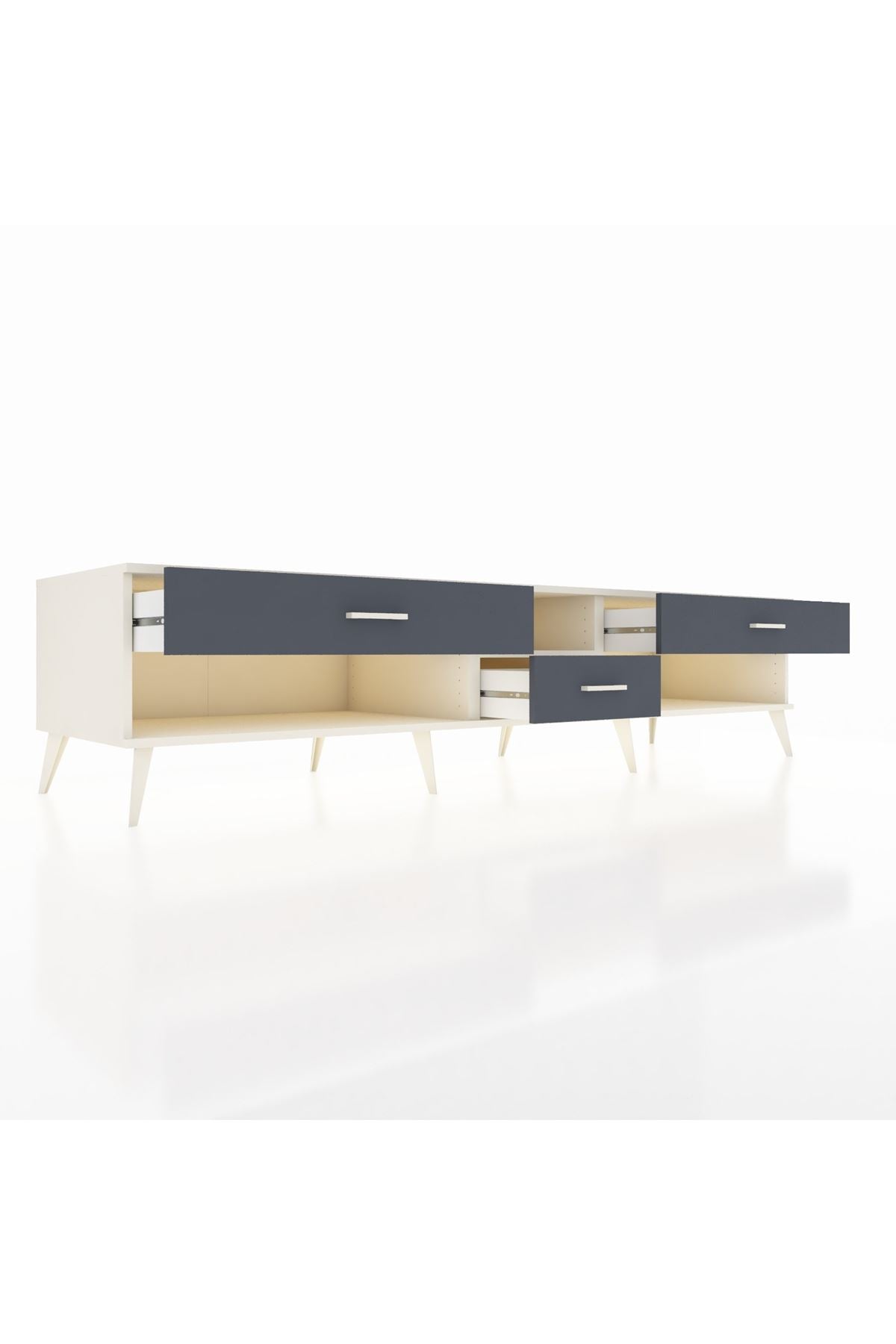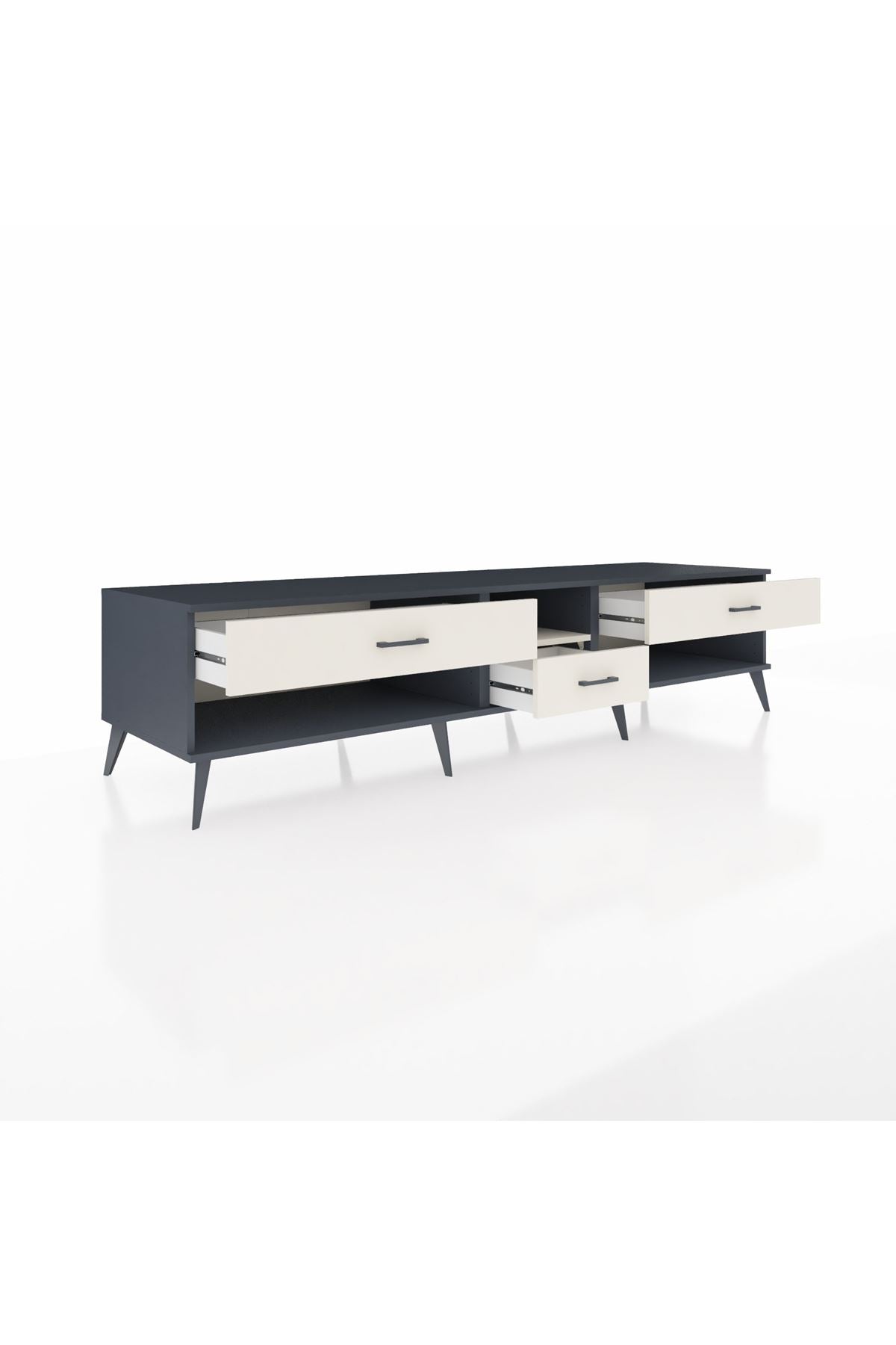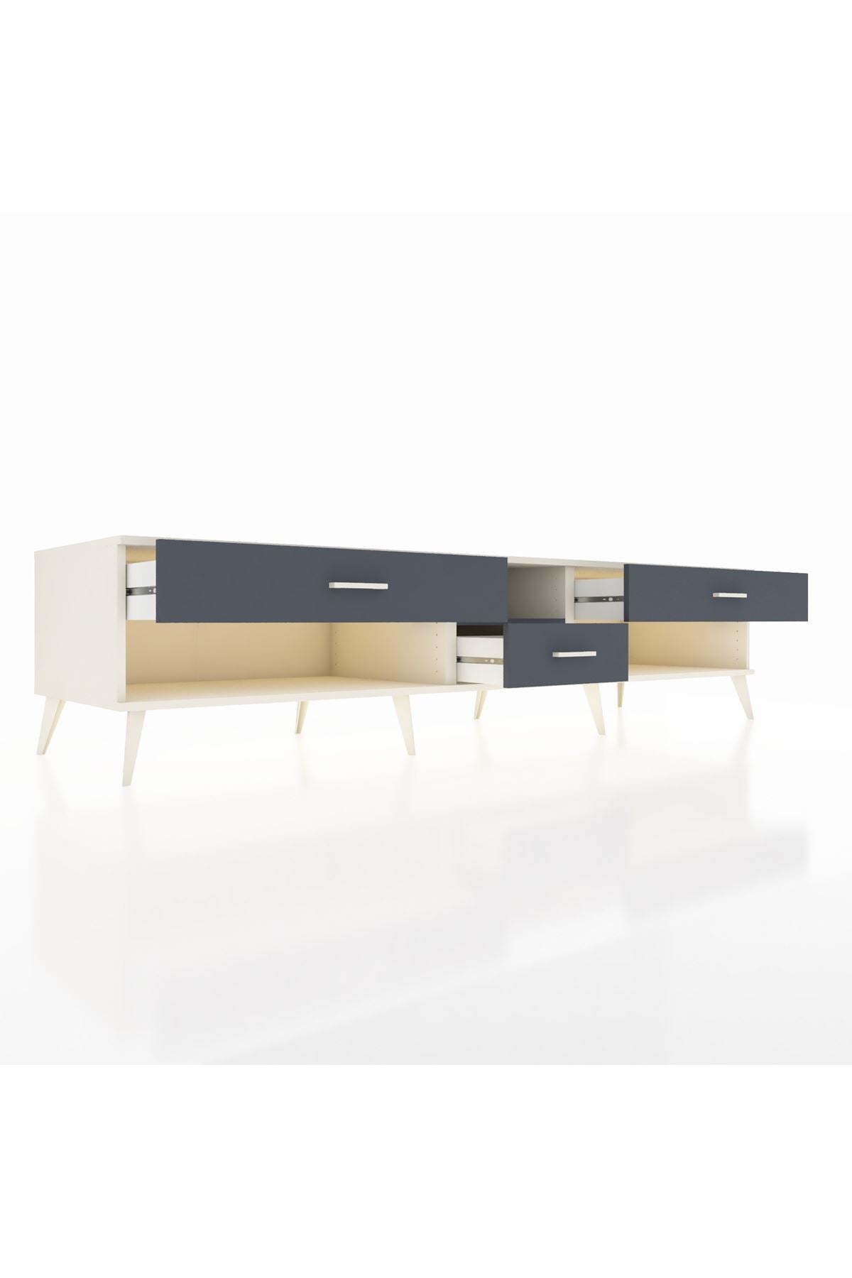 💼 Ofis / Çalışma Odası: Çalışma odanızda hem TV ünitesi hem de depolama alanı olarak kullanabilirsiniz. Dosyalarınızı ve diğer ofis malzemelerinizi çekmecelerde saklayarak düzenli bir çalışma ortamı yaratabilirsiniz.