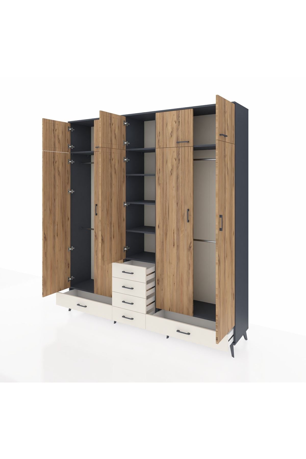 Hyperion Dolap 6 Raflı 6 Çekmeceli 4 Askılı 220x44x243 Antrasit-Çam/Aytaşı
