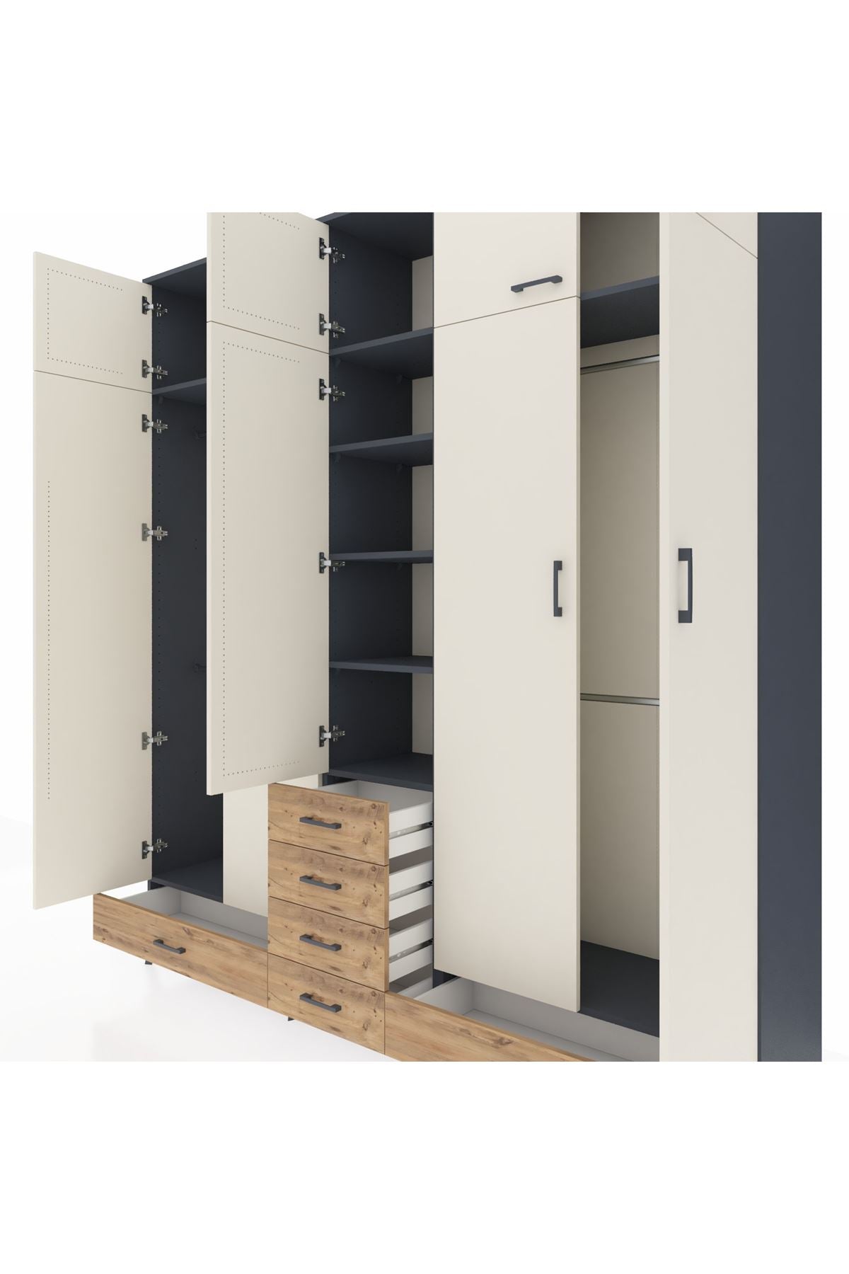 Hyperion Dolap 6 Raflı 6 Çekmeceli 4 Askılı 220x44x243 Antrasit-Aytaşı/Çam
