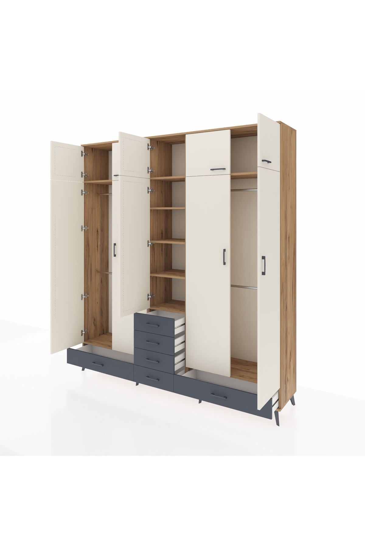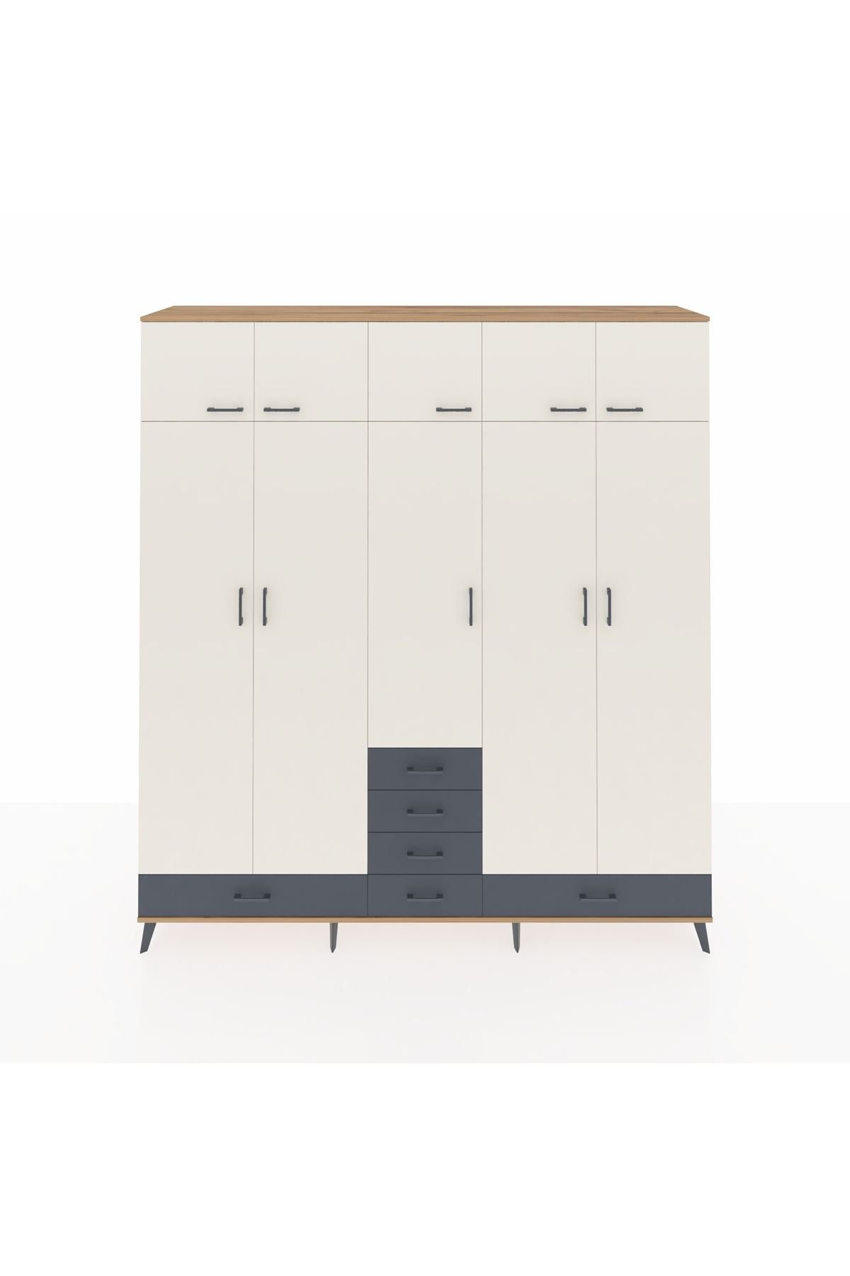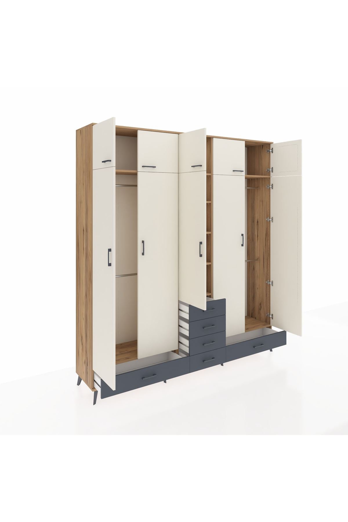Hyperion Dolap 6 Raflı 6 Çekmeceli 4 Askılı 220x44x243 Çam-Aytaşı/Antrasit
