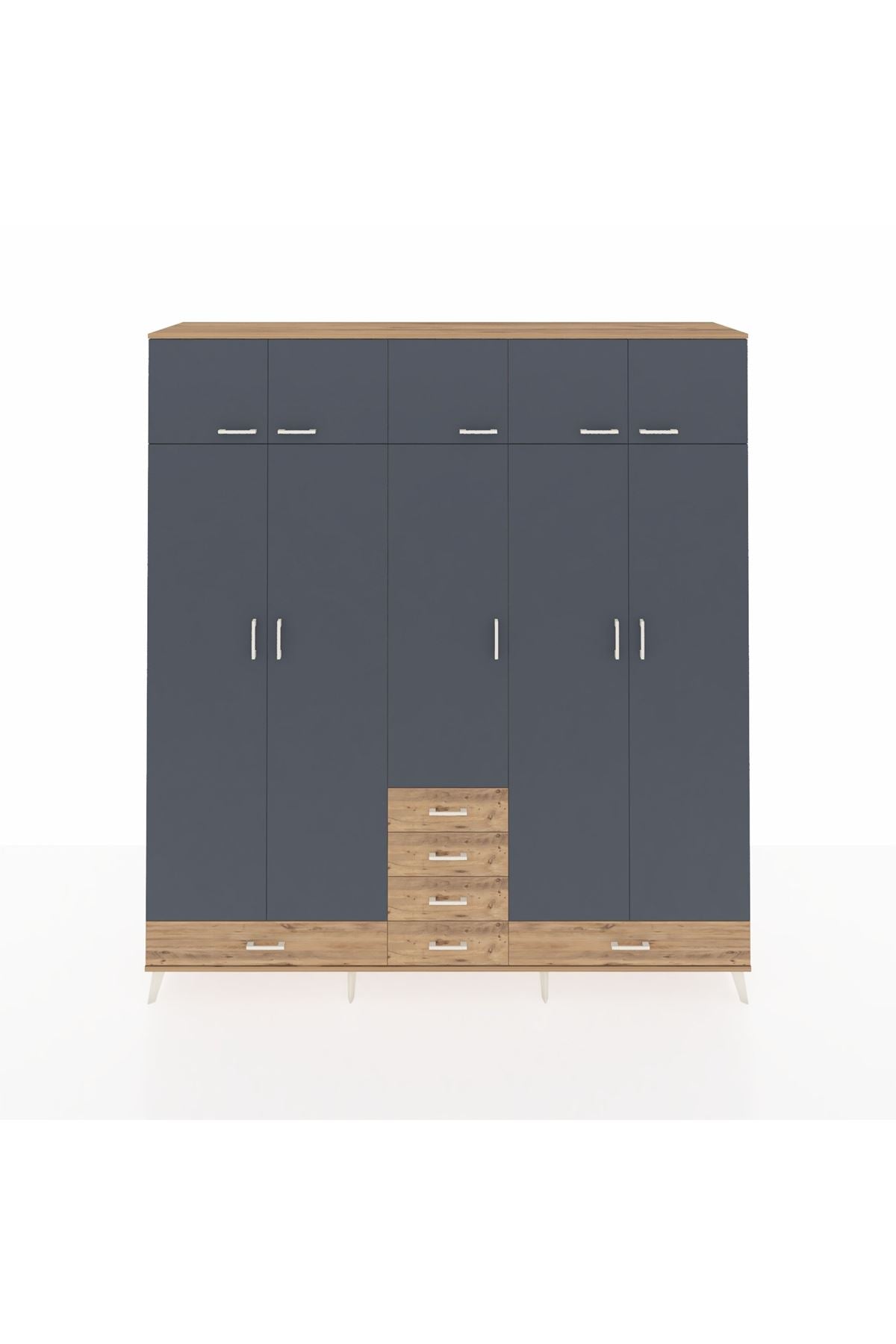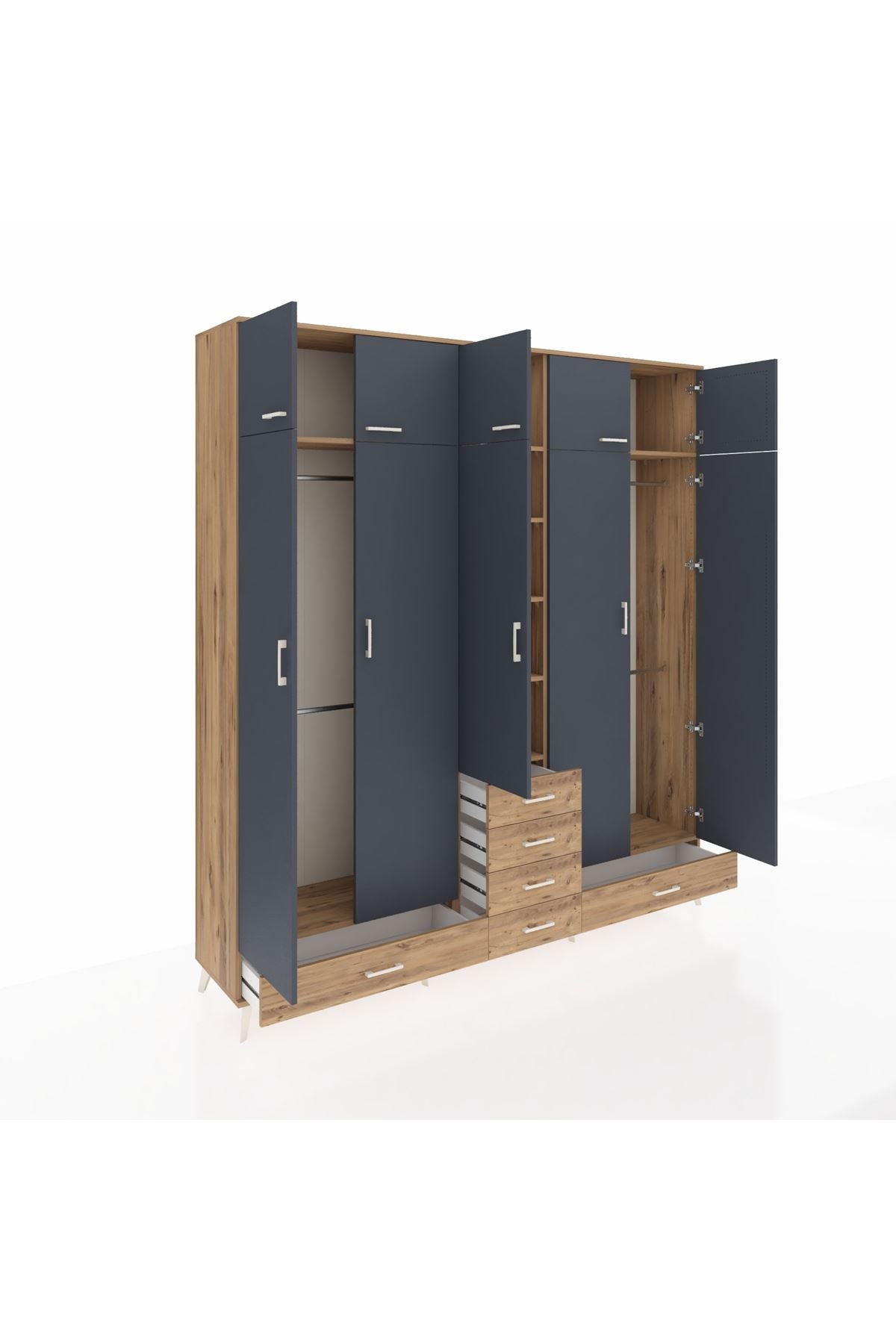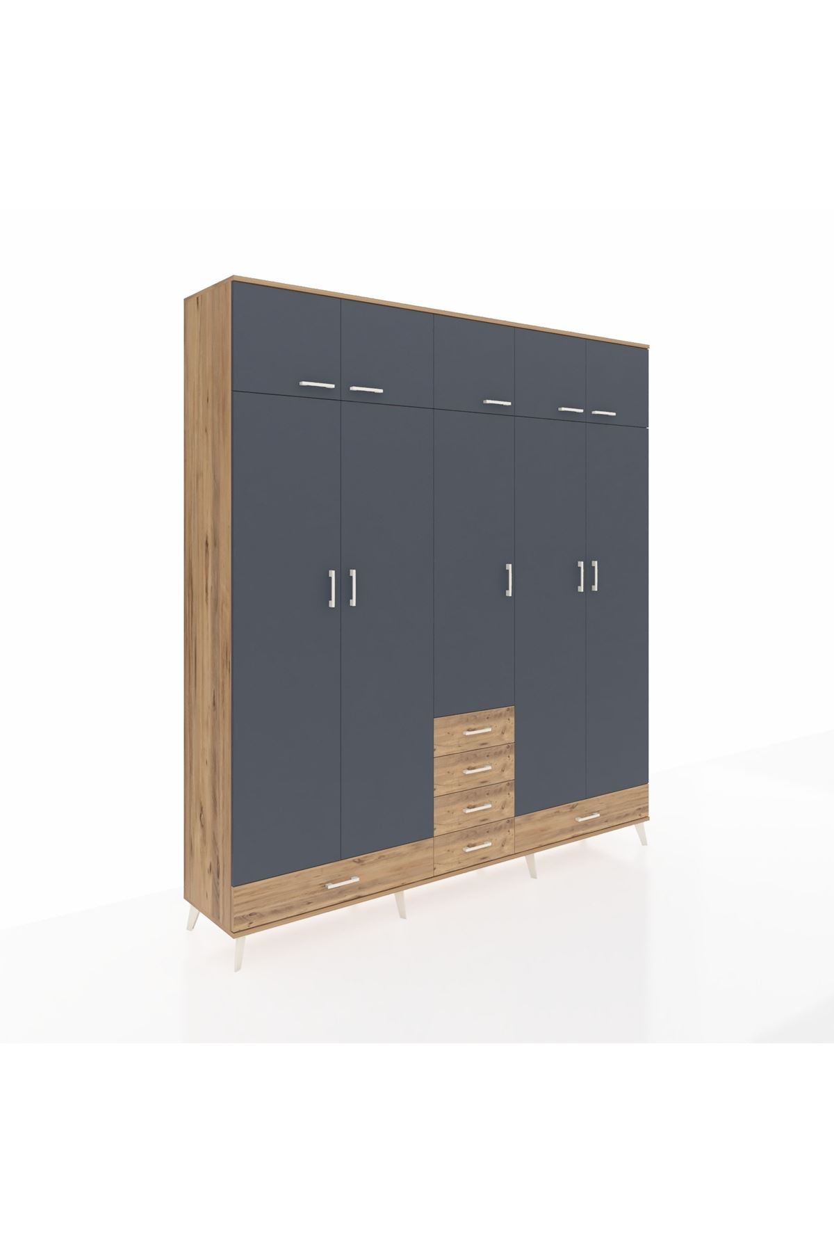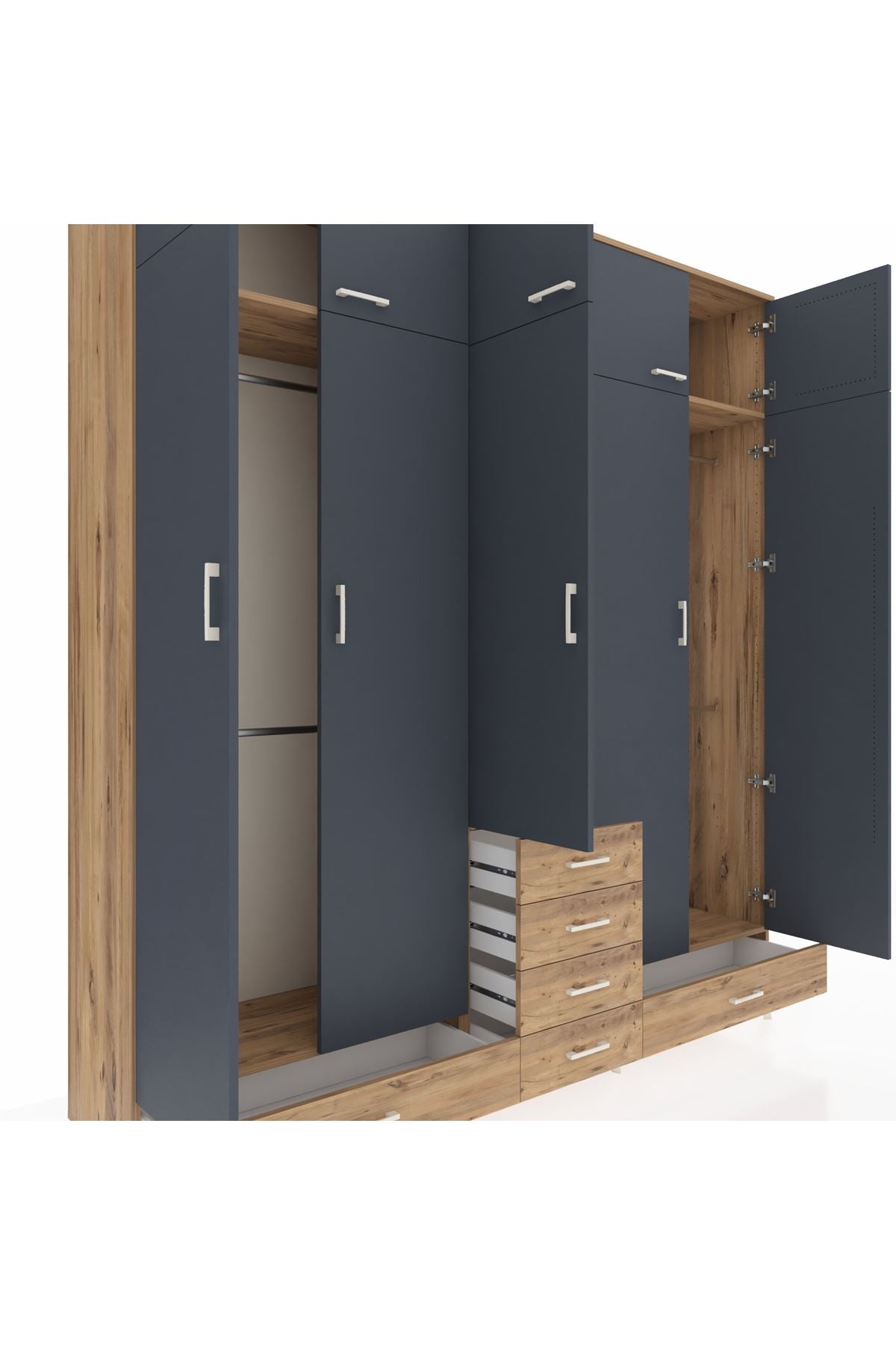 Hyperion Dolap 6 Raflı 6 Çekmeceli 4 Askılı 220x44x243 Çam-Antrasit/Çam
